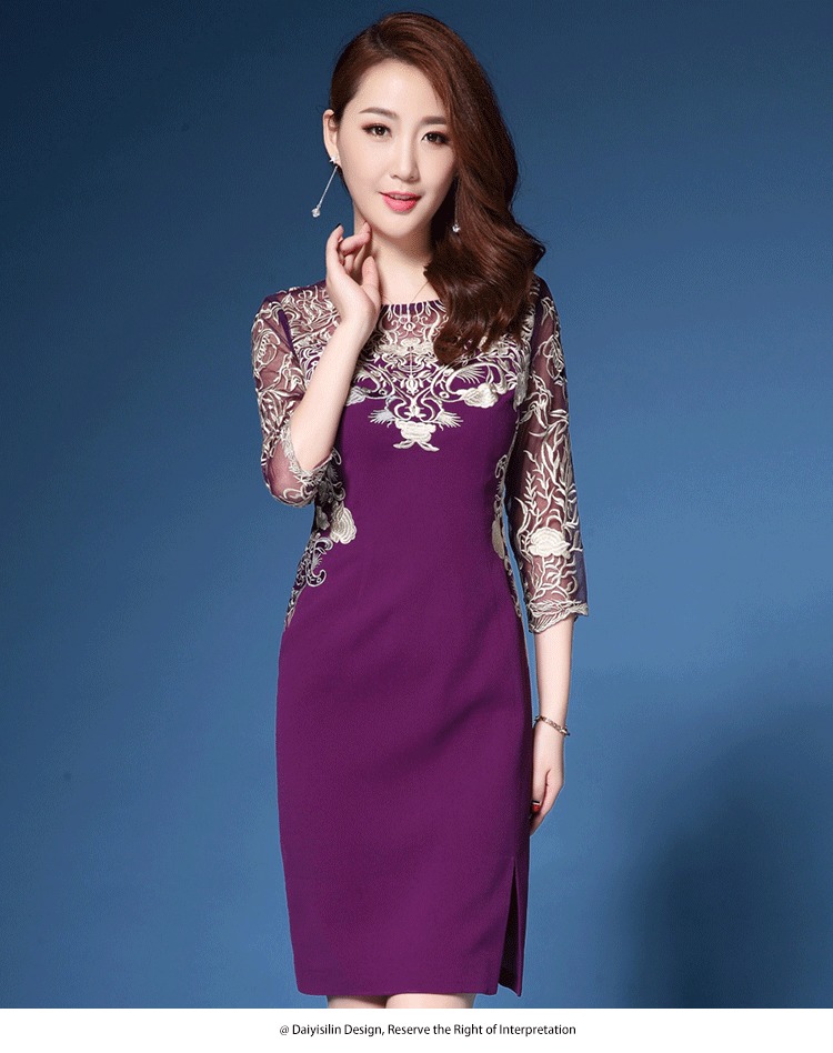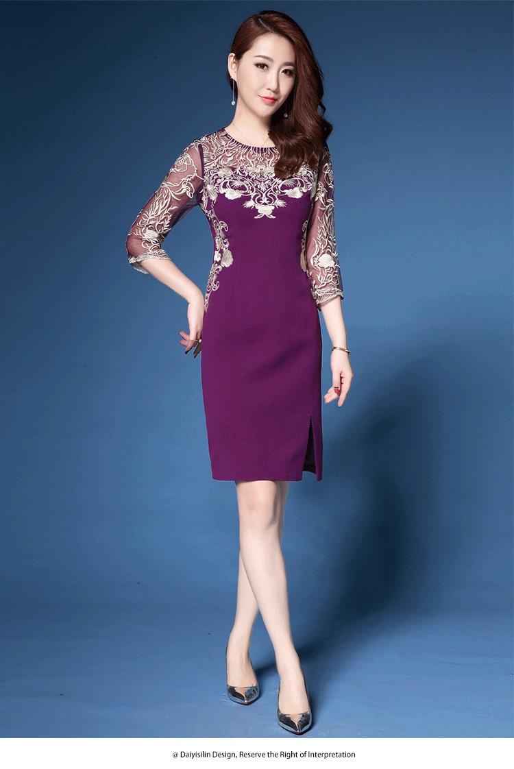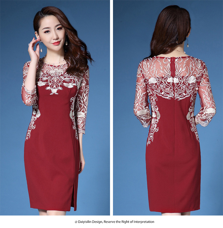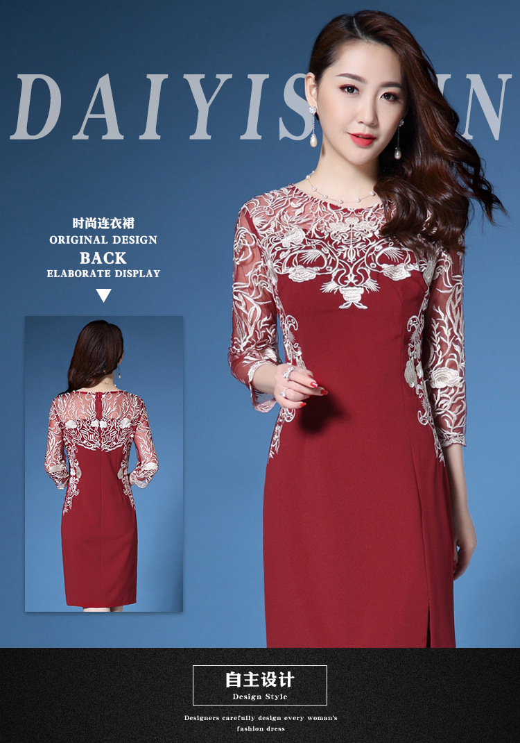 上海旗袍厂ZY-Q4026春秋新款女镂空七分袖刺绣修身女装时尚潮淑女连衣裙