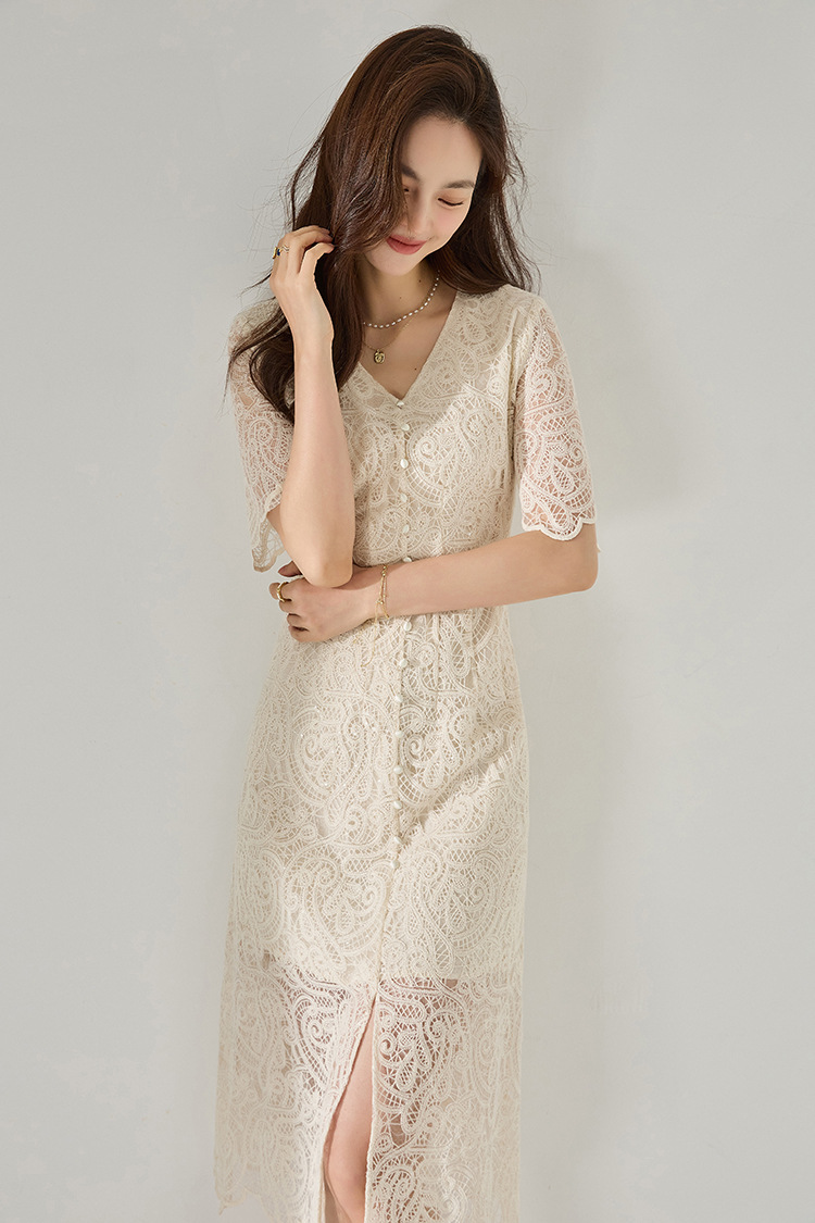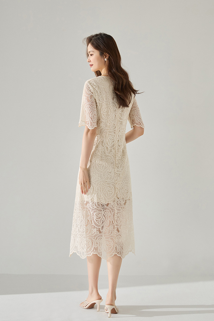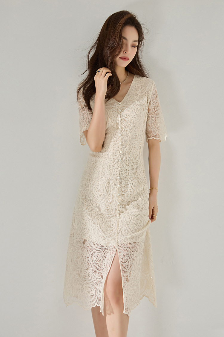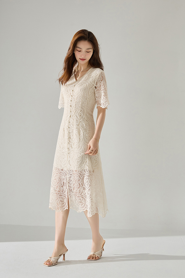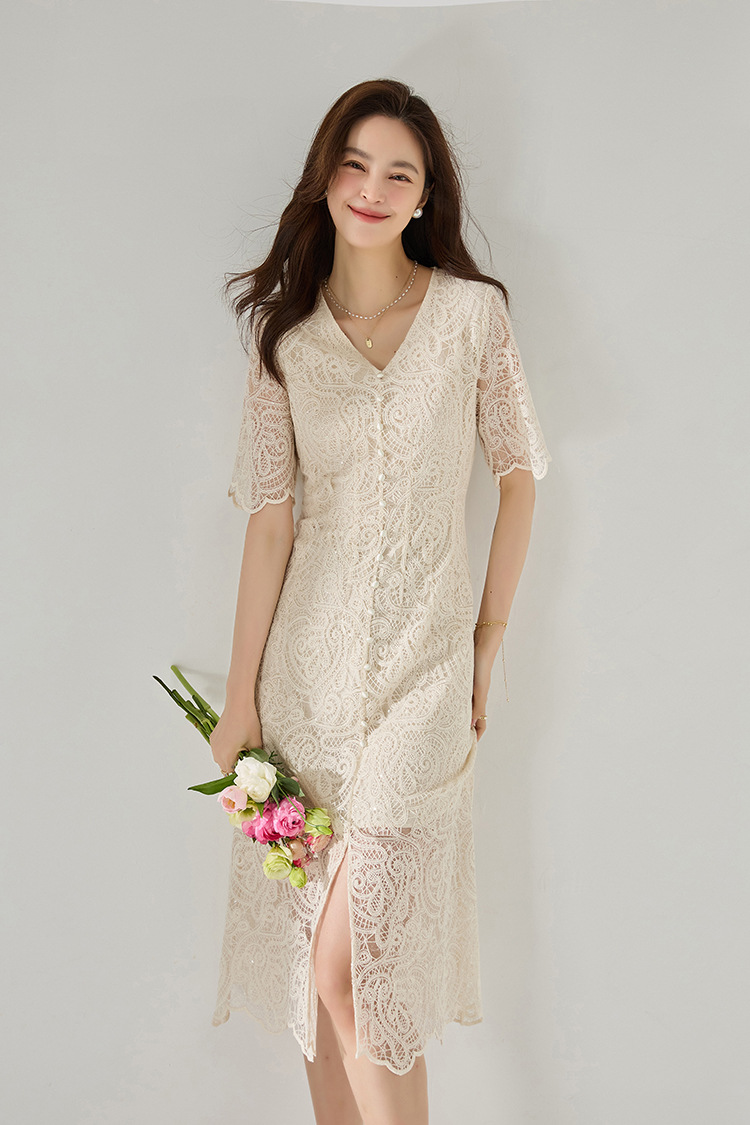 「高货sh」全新升级【铂金会员293/天猫389/差价96】(41927)洛诗琳夏法式赫本风镂空蕾丝裙2025夏季收腰显瘦V领连衣裙