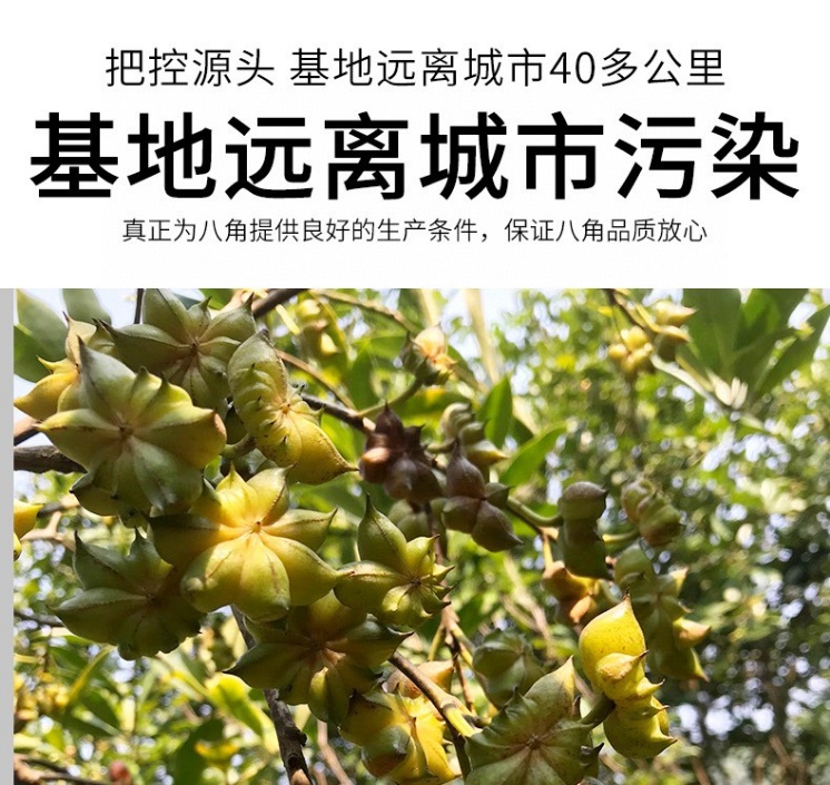 生长于海拔1000米的深山中 村里的农户每年都会上山采摘自然晾晒,原色味浓,无硫我们的八角就是来自小农户中。