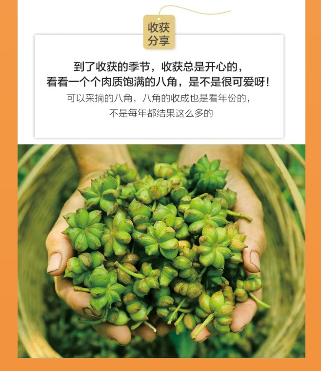 【售后】八角为高山⛰️野生自然生长,发货过程有可能会碎角,属正常现象,不影响食用,不在售后范围内。