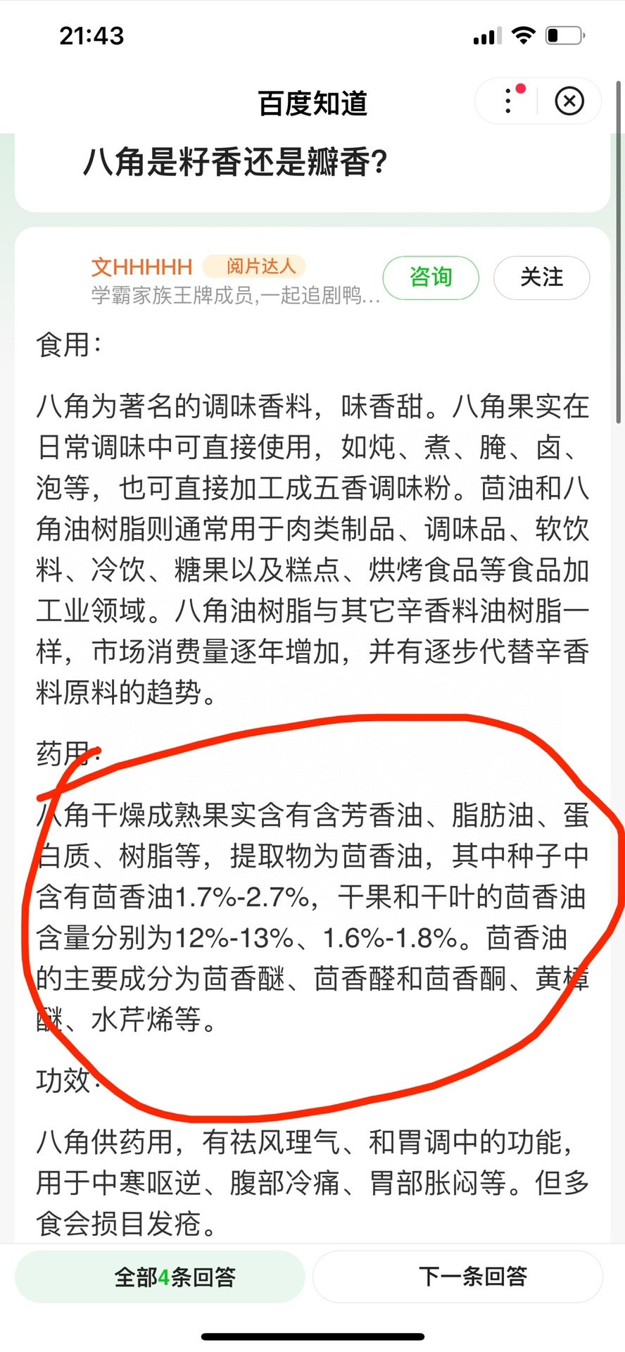 八角除了作为佐料,还有营养价值八角油茴香油,都是很重要的调味品,90%的宝子都不知道,八角有提炼一说。