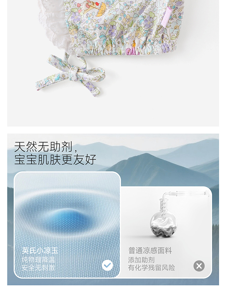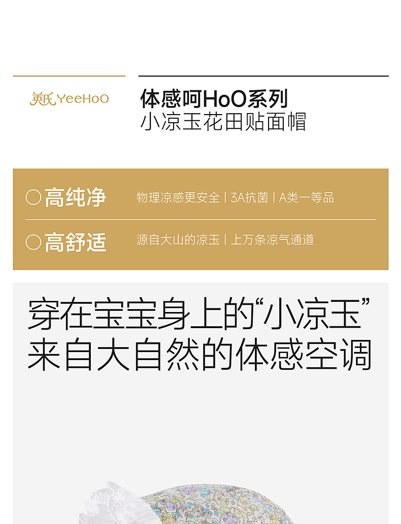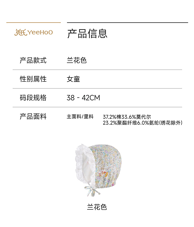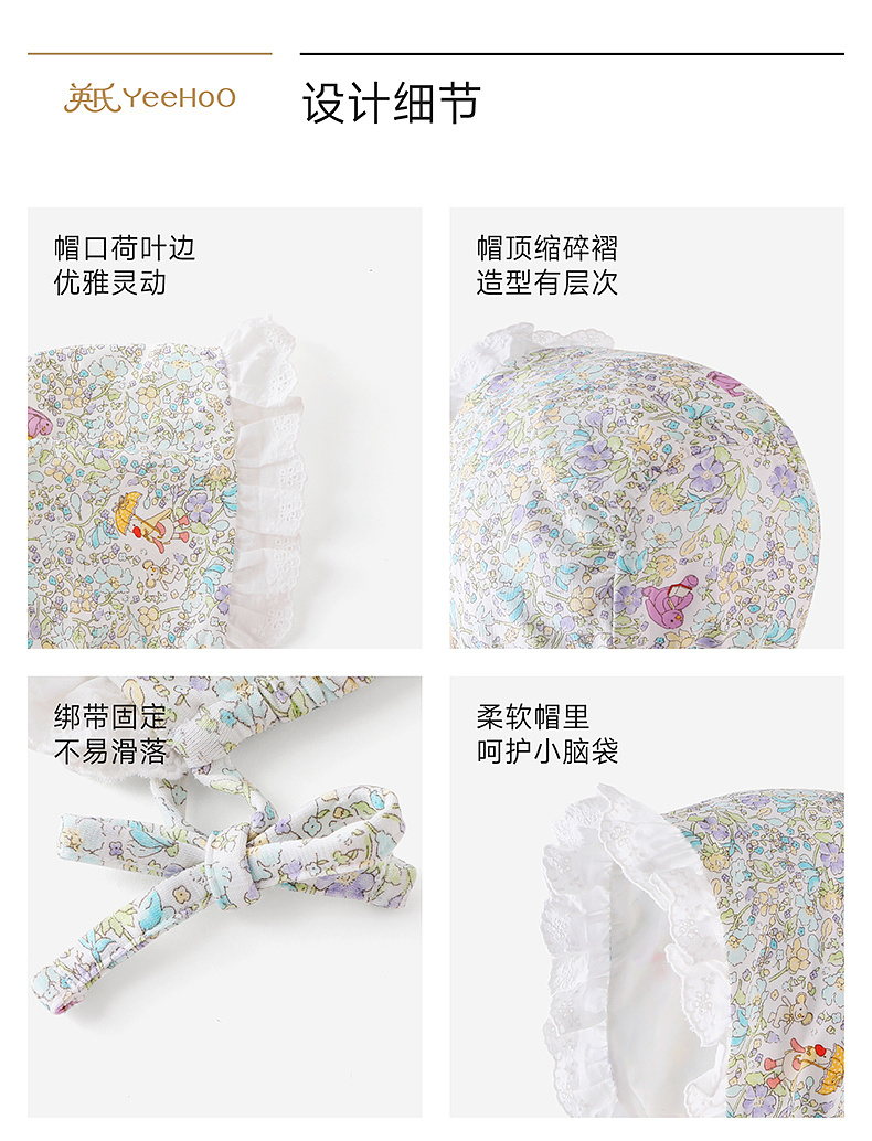 【商场同款】英氏儿童帽子新生儿凉感贴面帽女宝夏季新款碎花胎帽