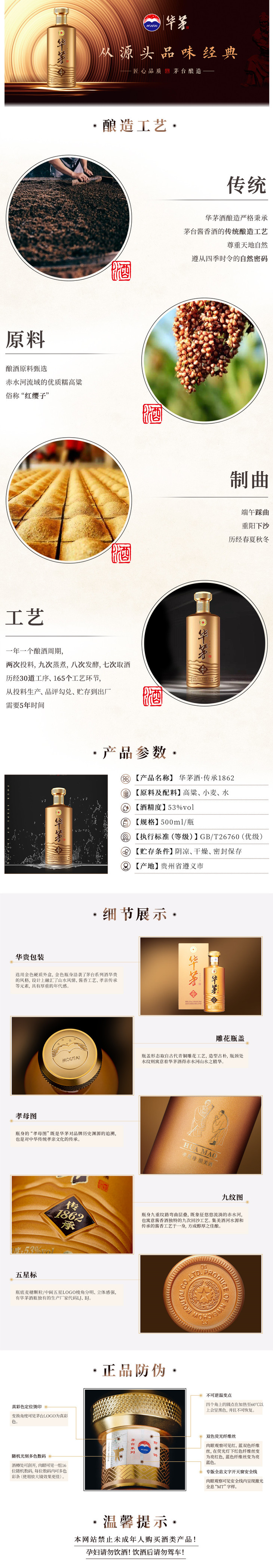 【推荐】茅台(MOUTAI) 华茅传承1862 酱香型白酒53度 整箱装 500ml*6瓶