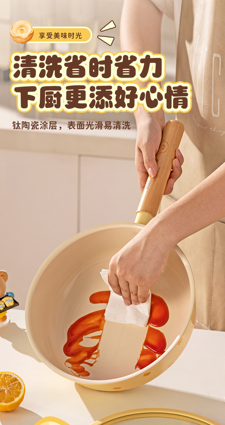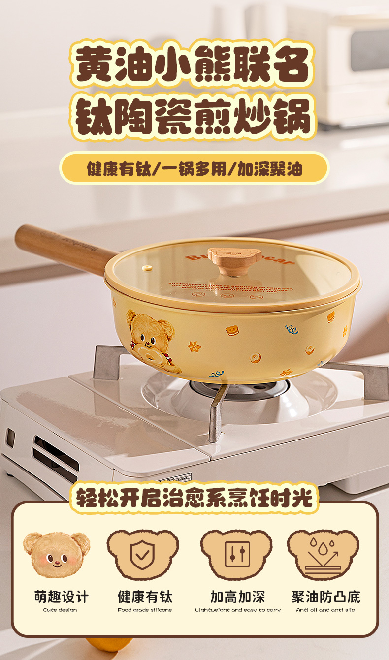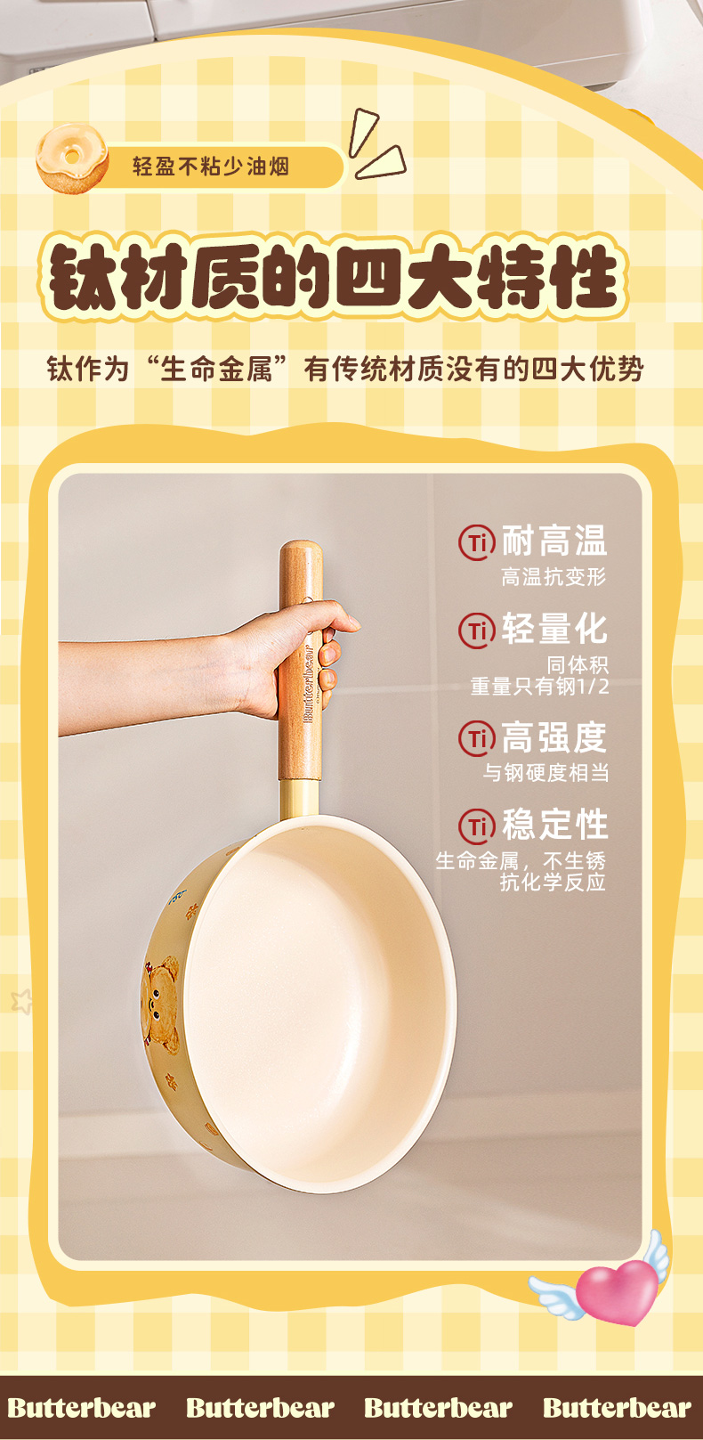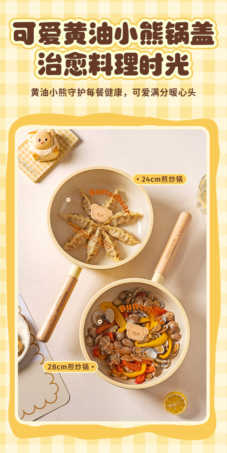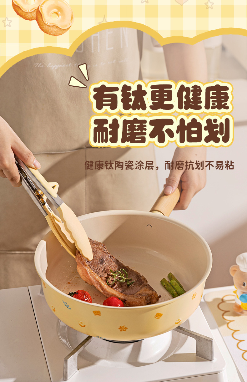 摩登主妇&黄油小熊 钛陶瓷加深煎锅家用牛排不粘平底锅炒菜锅