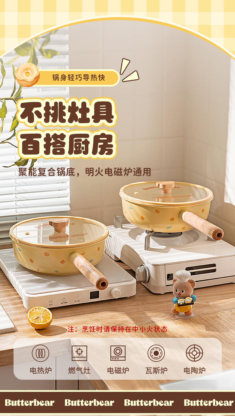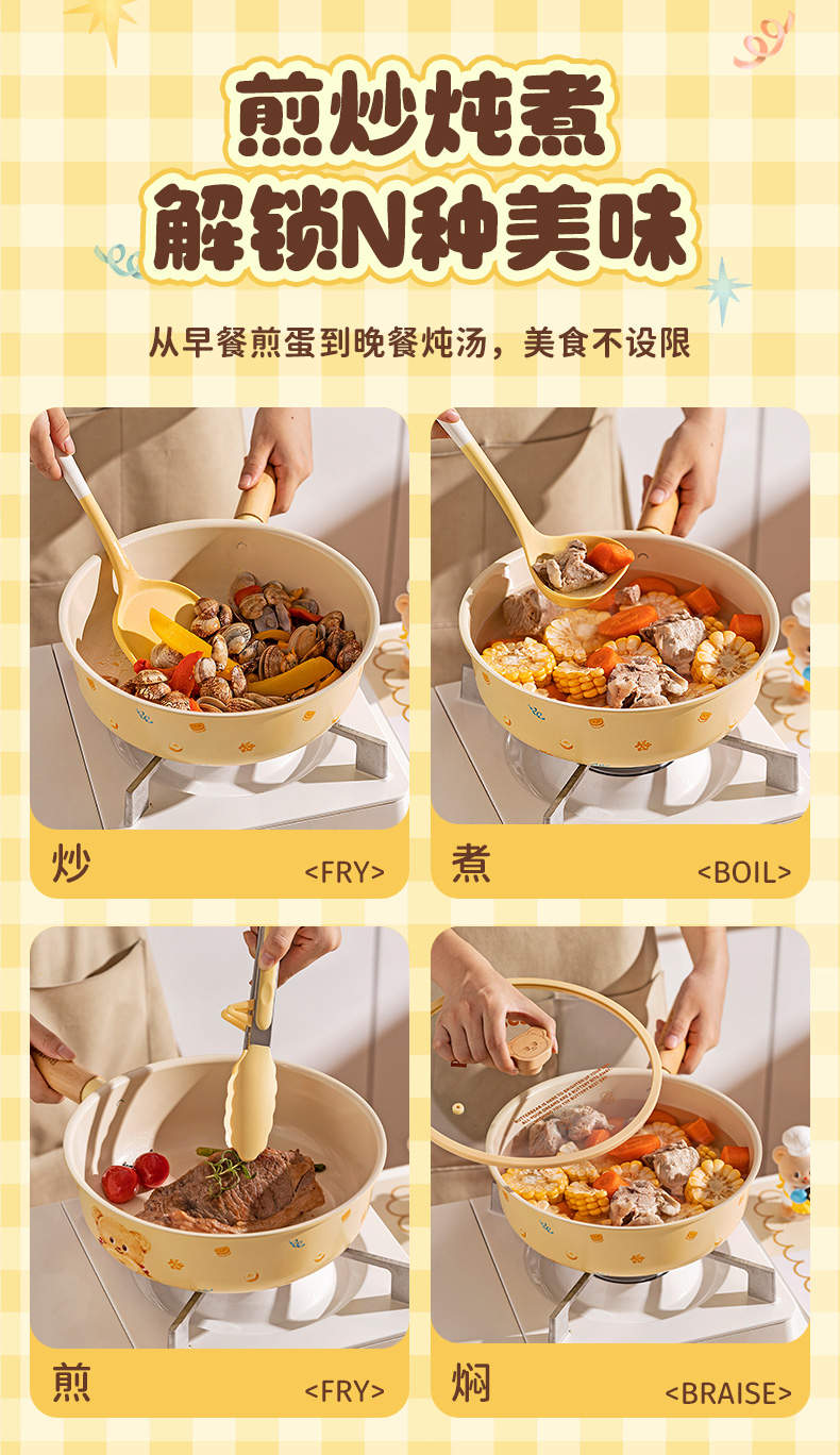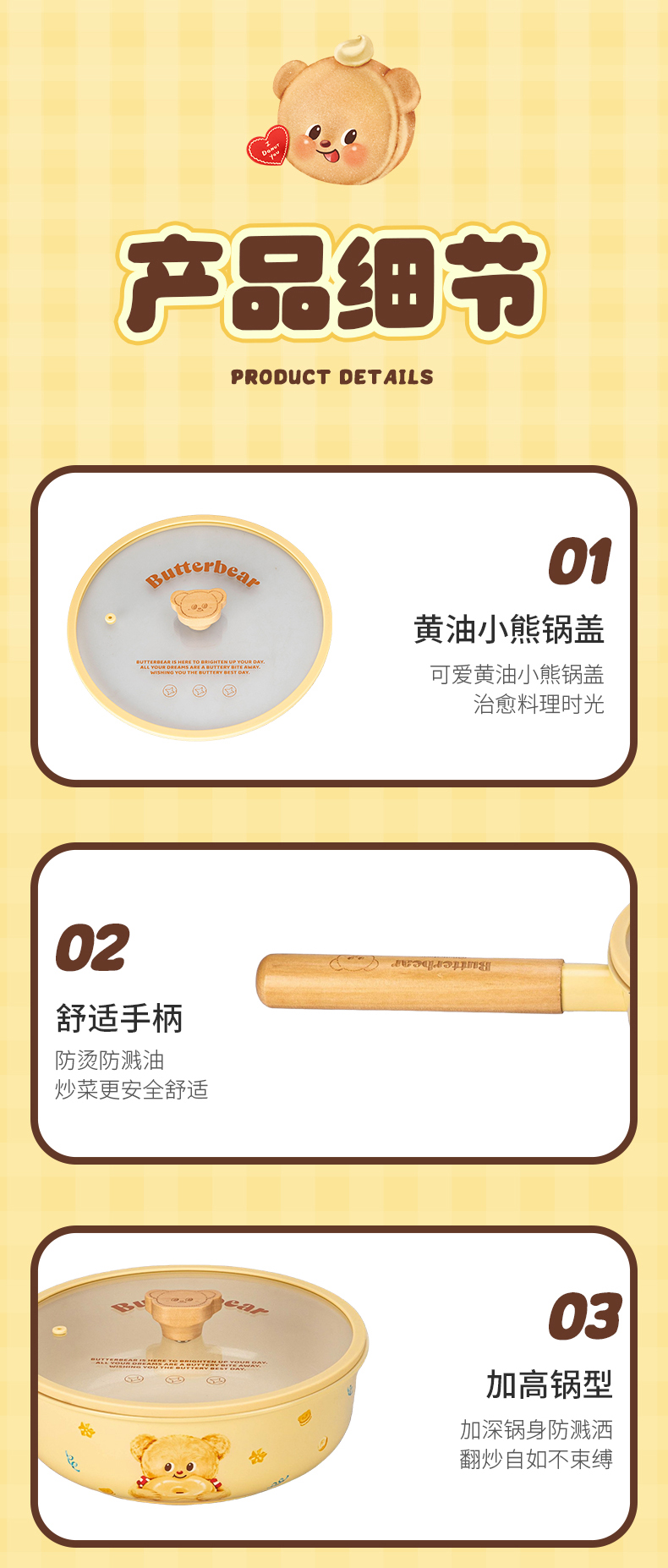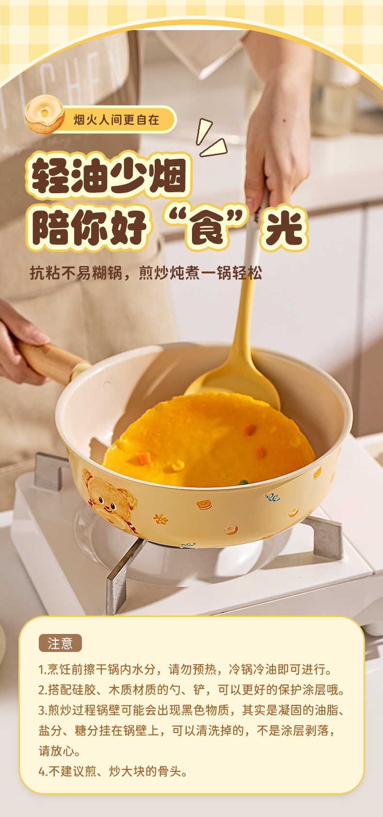 摩登主妇&黄油小熊 钛陶瓷加深煎锅家用牛排不粘平底锅炒菜锅
