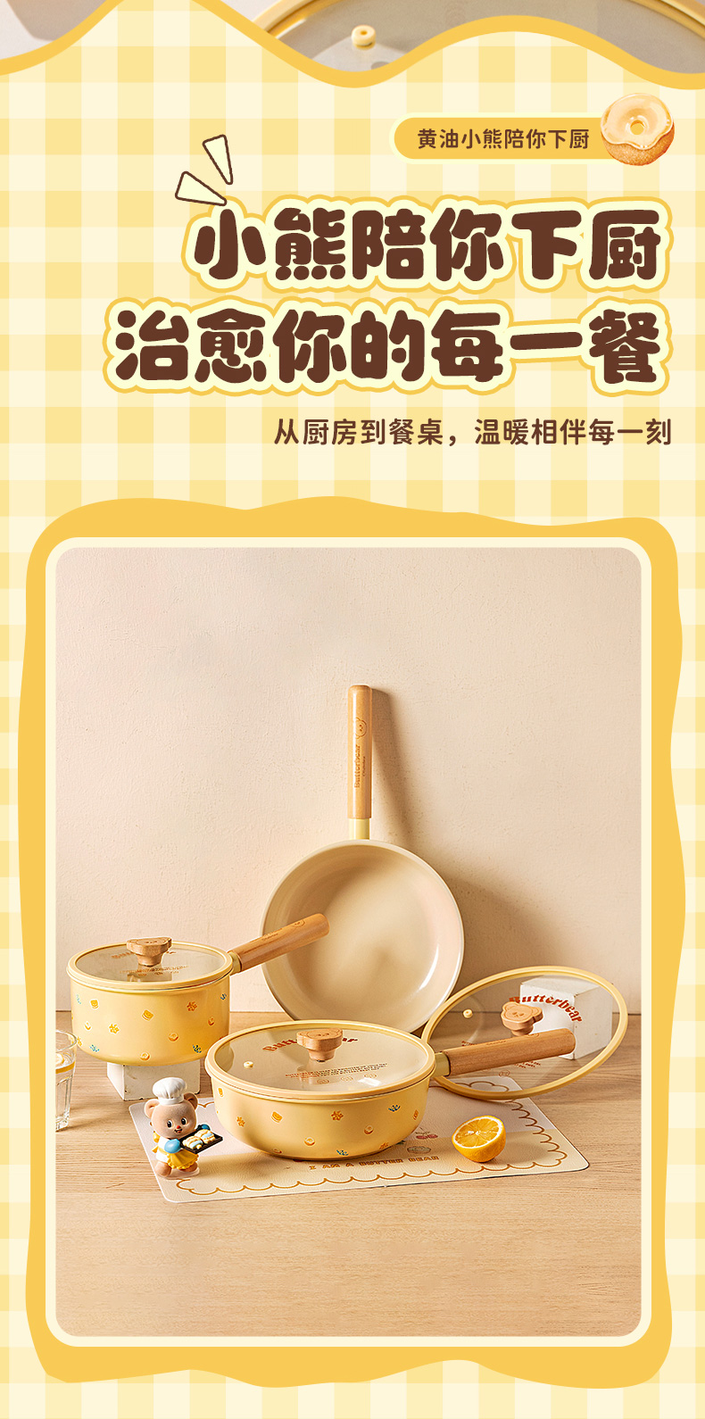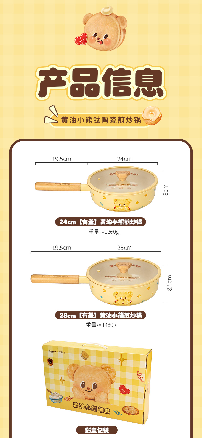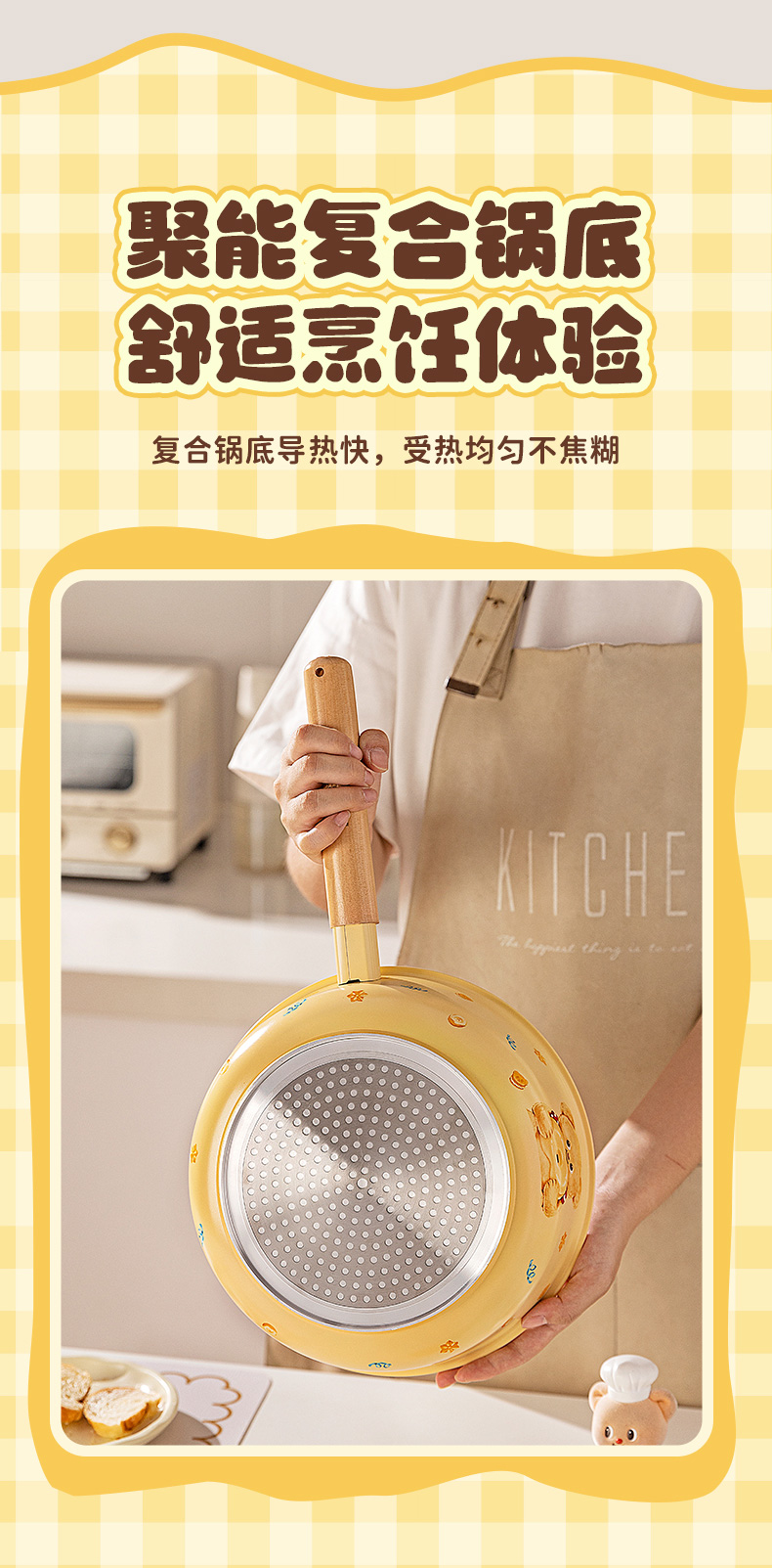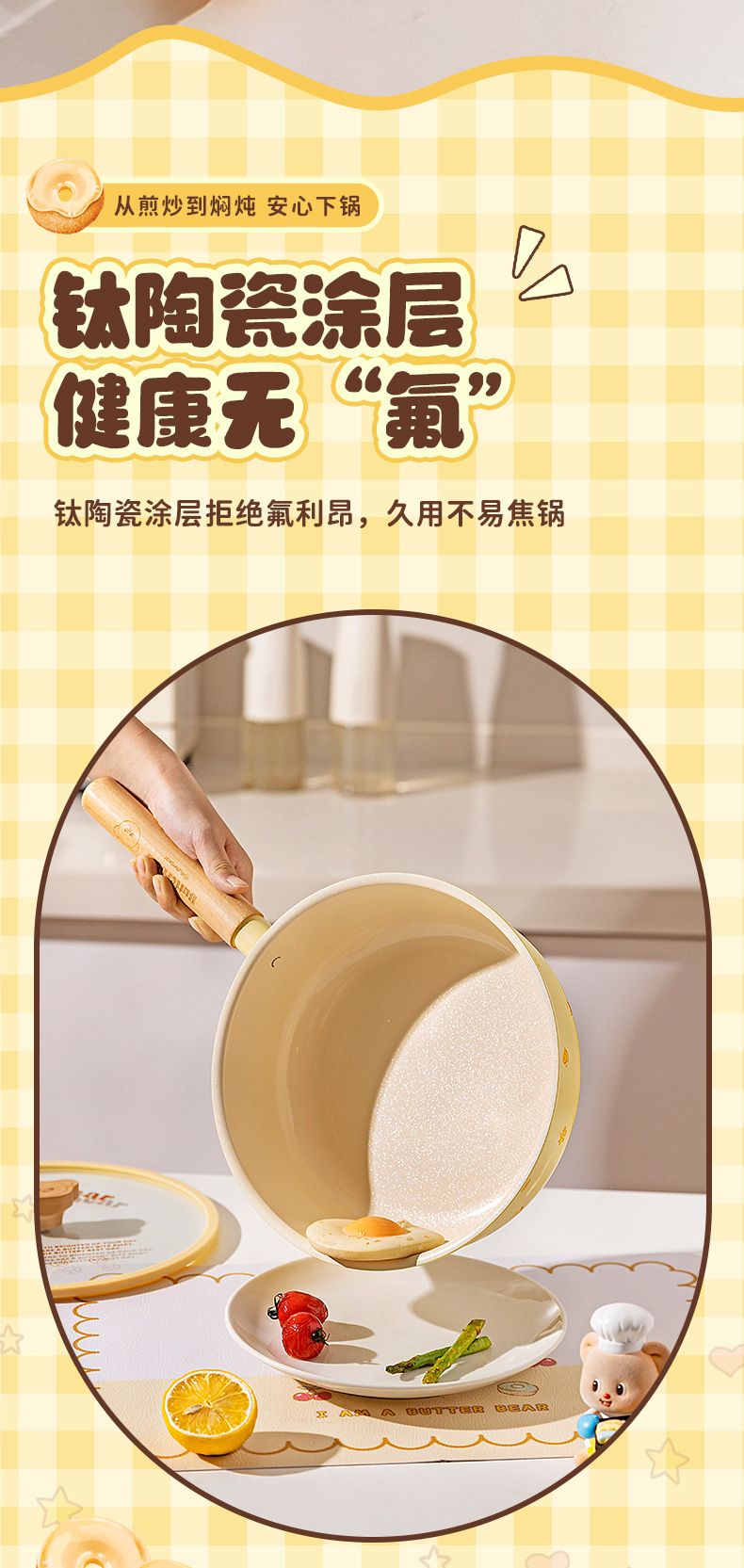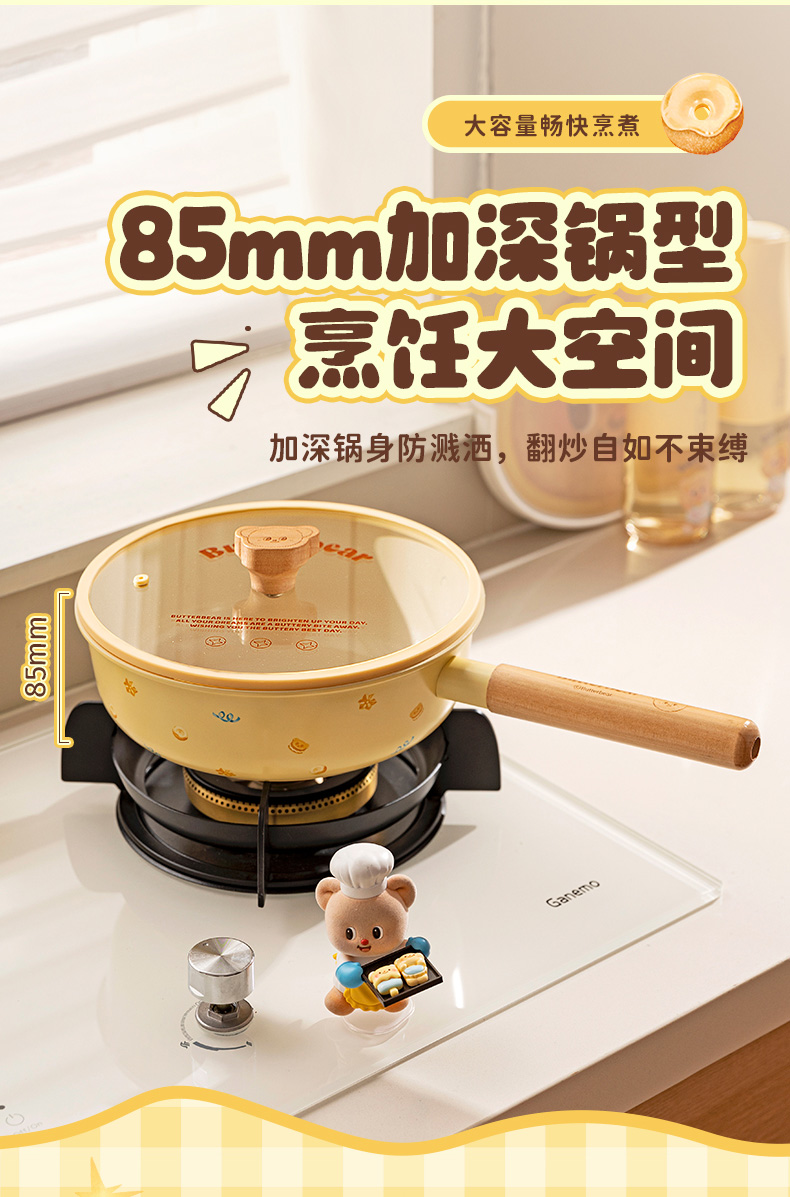 摩登主妇&黄油小熊 钛陶瓷加深煎锅家用牛排不粘平底锅炒菜锅