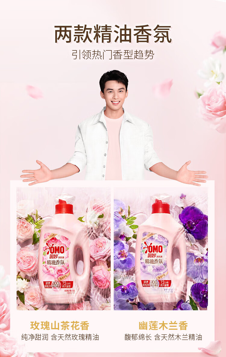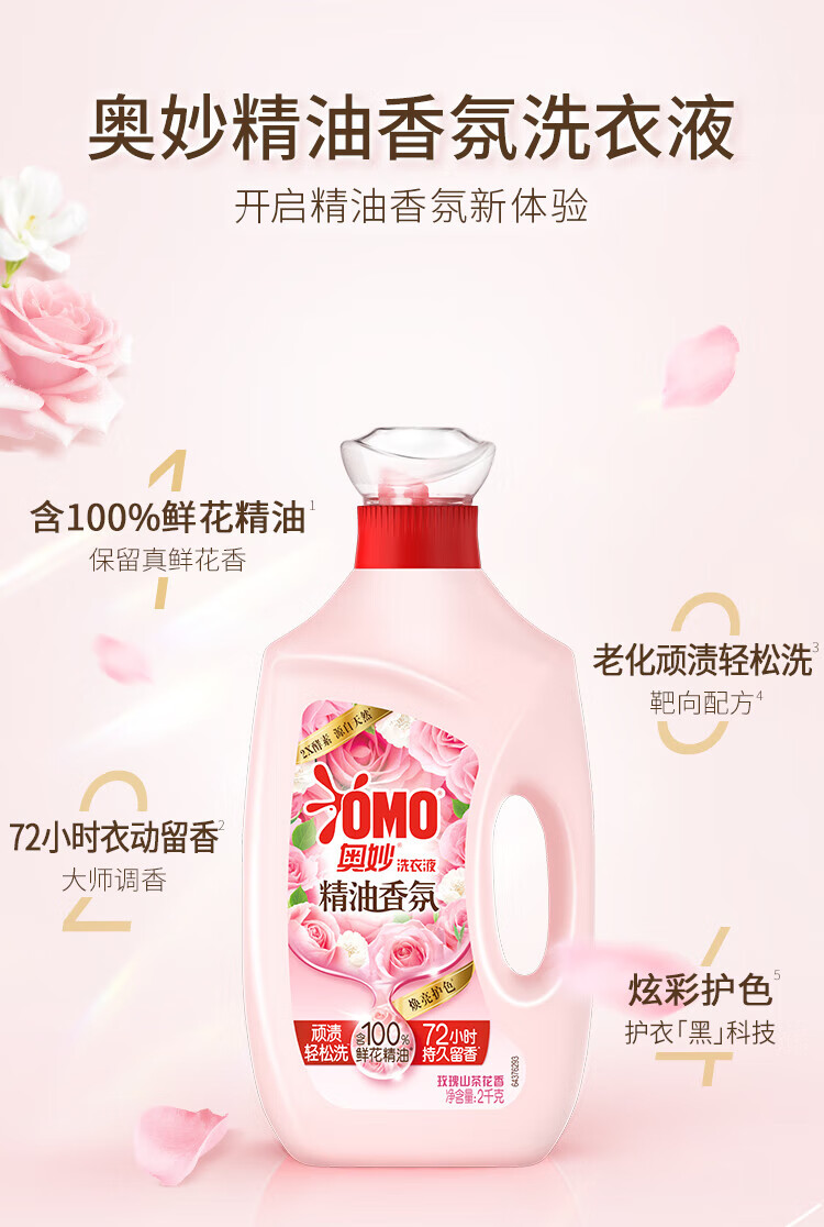 奥妙(OMO)香氛洗衣液玫瑰山茶花香/幽莲木兰香2KG 精油香氛大师调香洗衣液(香型随机)