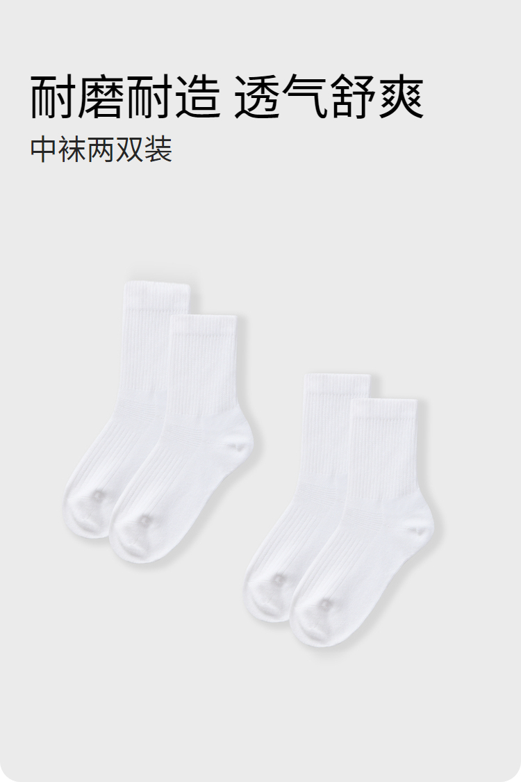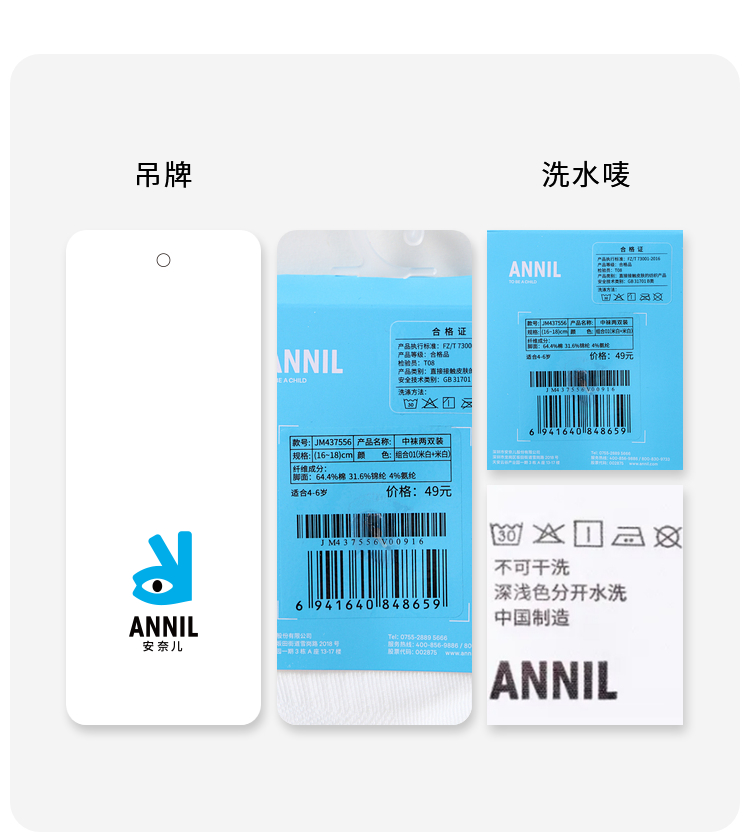 【5A抗菌】男女童中袜两双装学生袜子新款安奈儿童装实体店同款JM437556