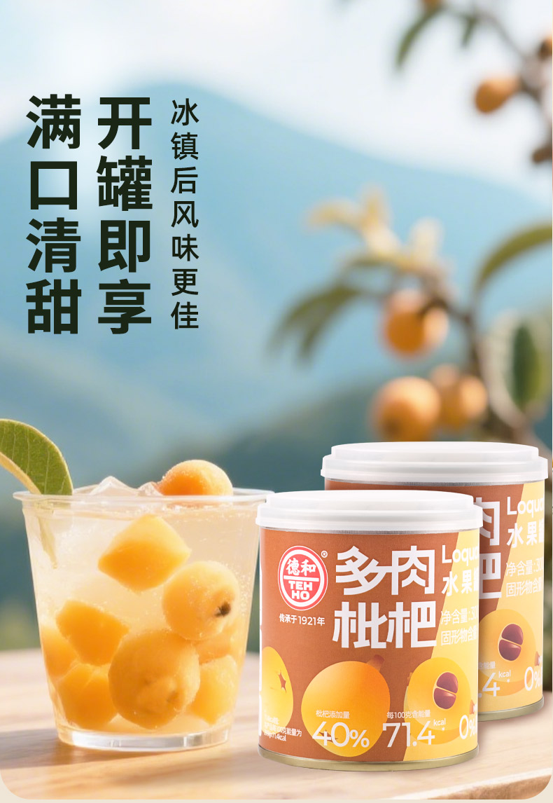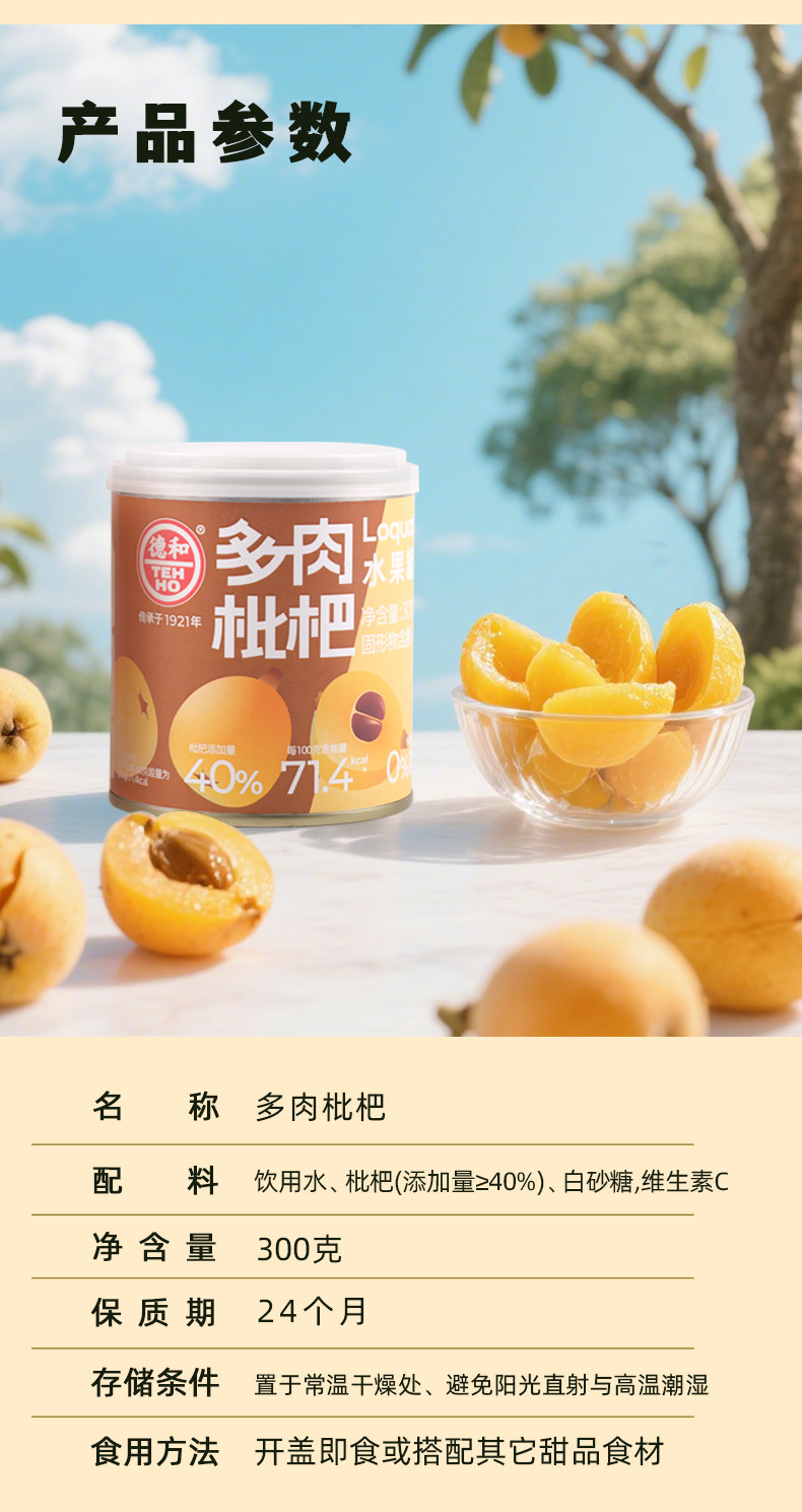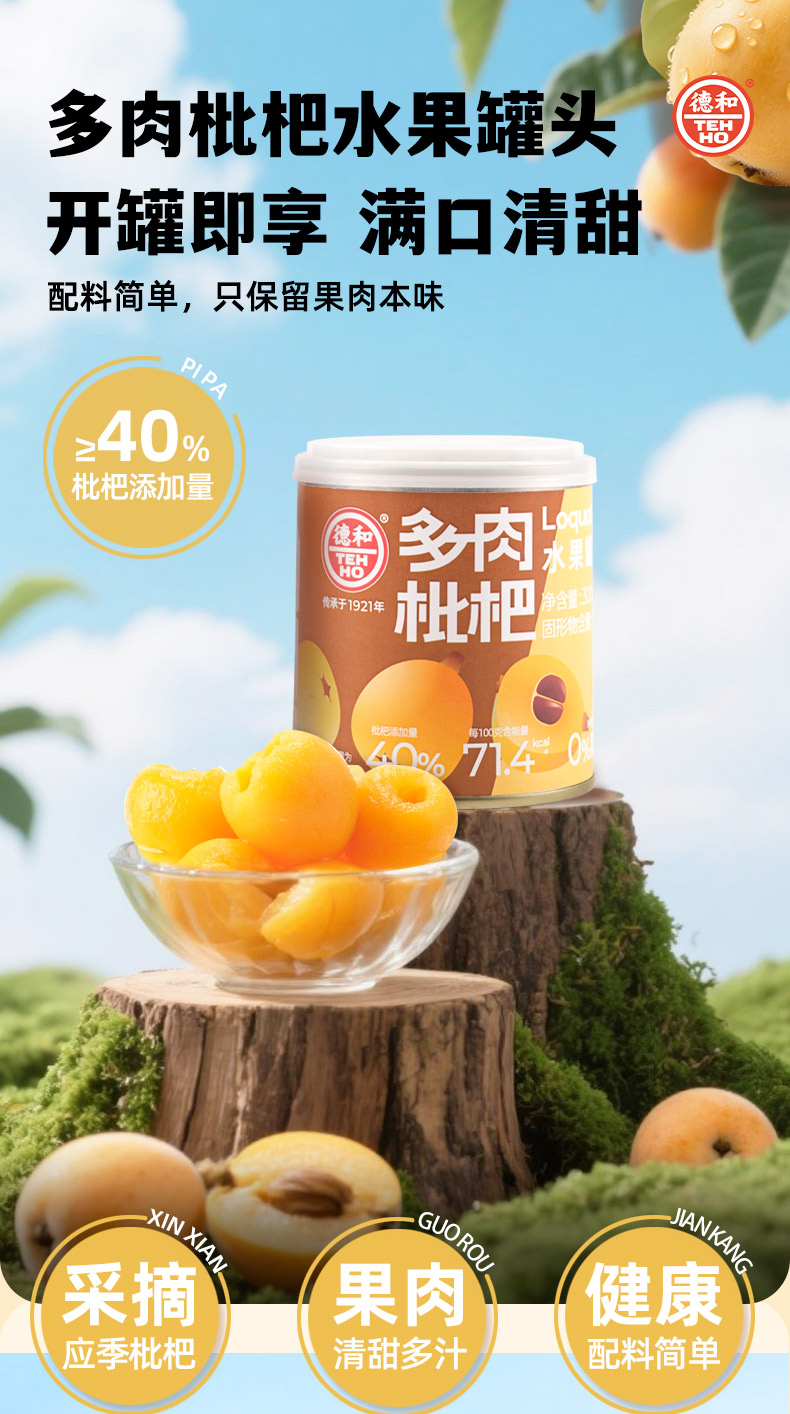 德和 多肉枇杷罐头300g 水果罐头 #润