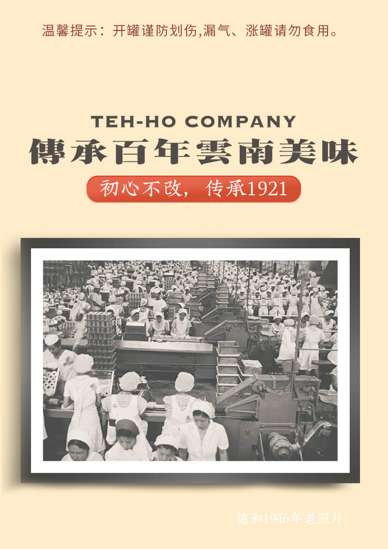 昆明德和罐头厂是中国最早开始生产制造罐头的企业之一,至今已有九十八年的悠久历史,现已形成以罐头食品为主,腌腊制品、糕点月饼等为辅的云南省规模最大和最具影响力综合食品制造企业,奠定了云南罐头行业的基石。