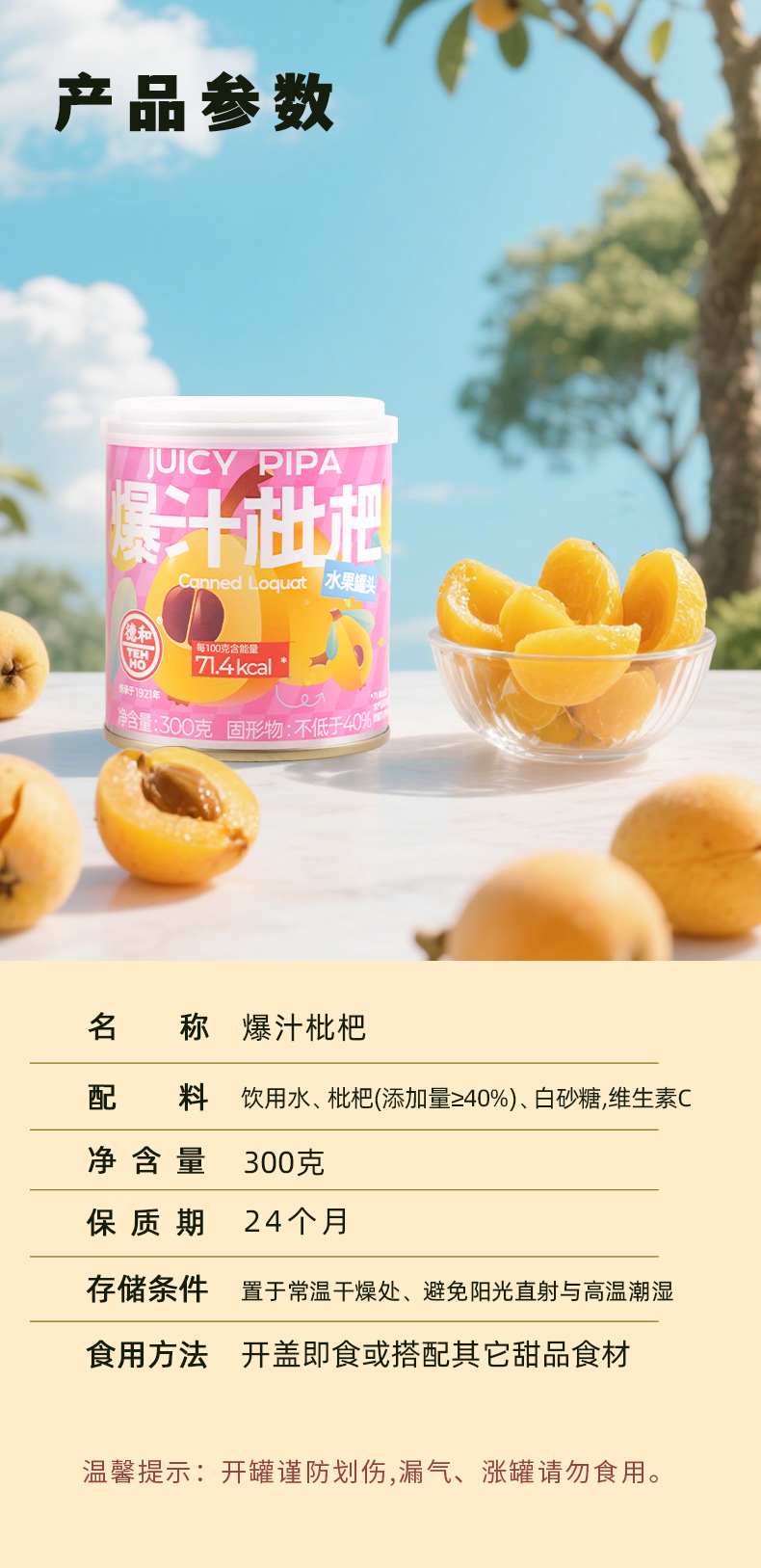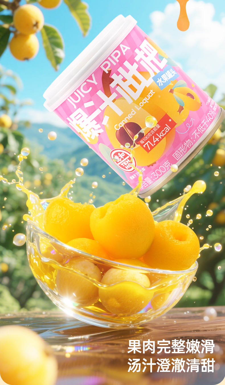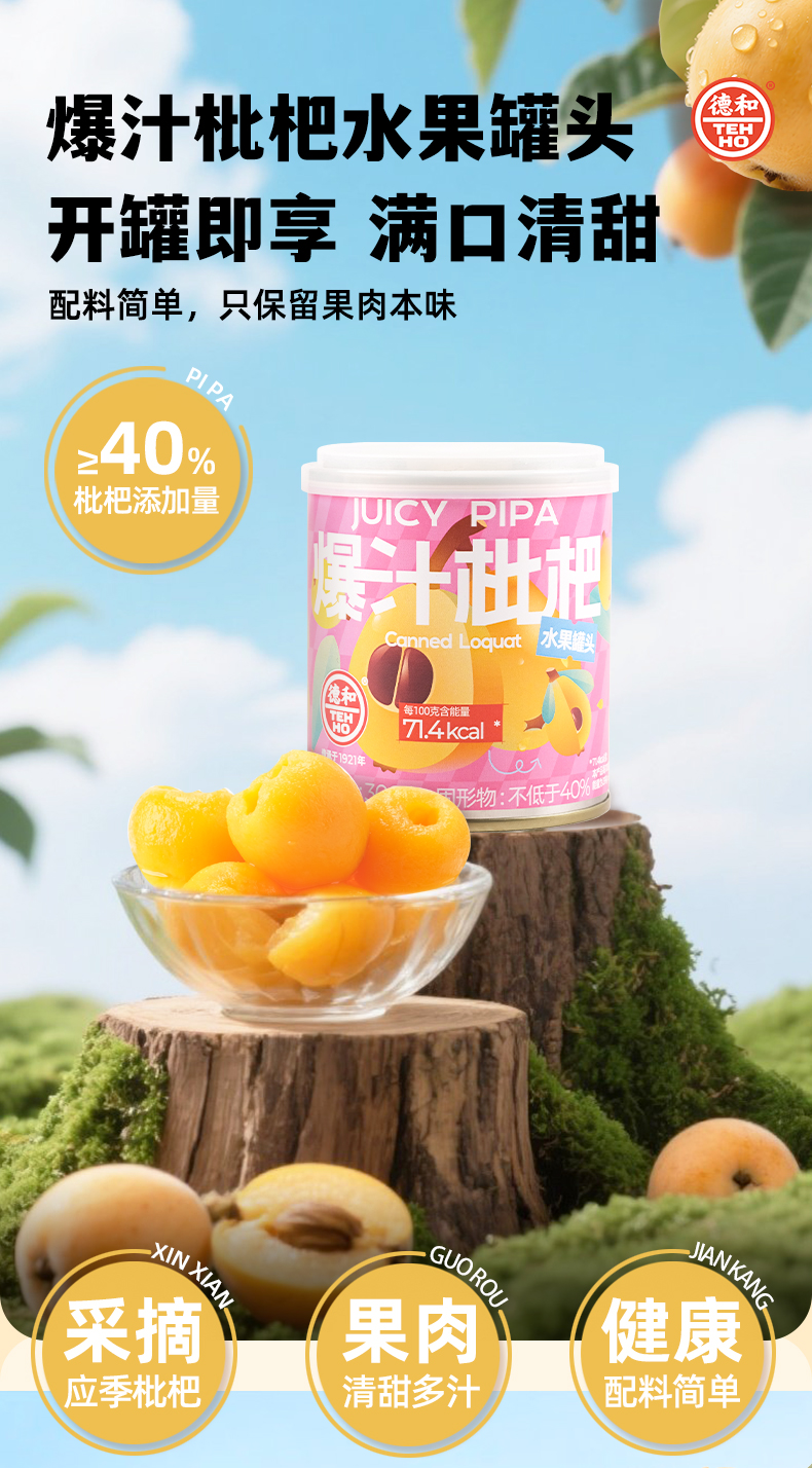 德和 爆汁枇杷罐头300g 水果罐头 #润