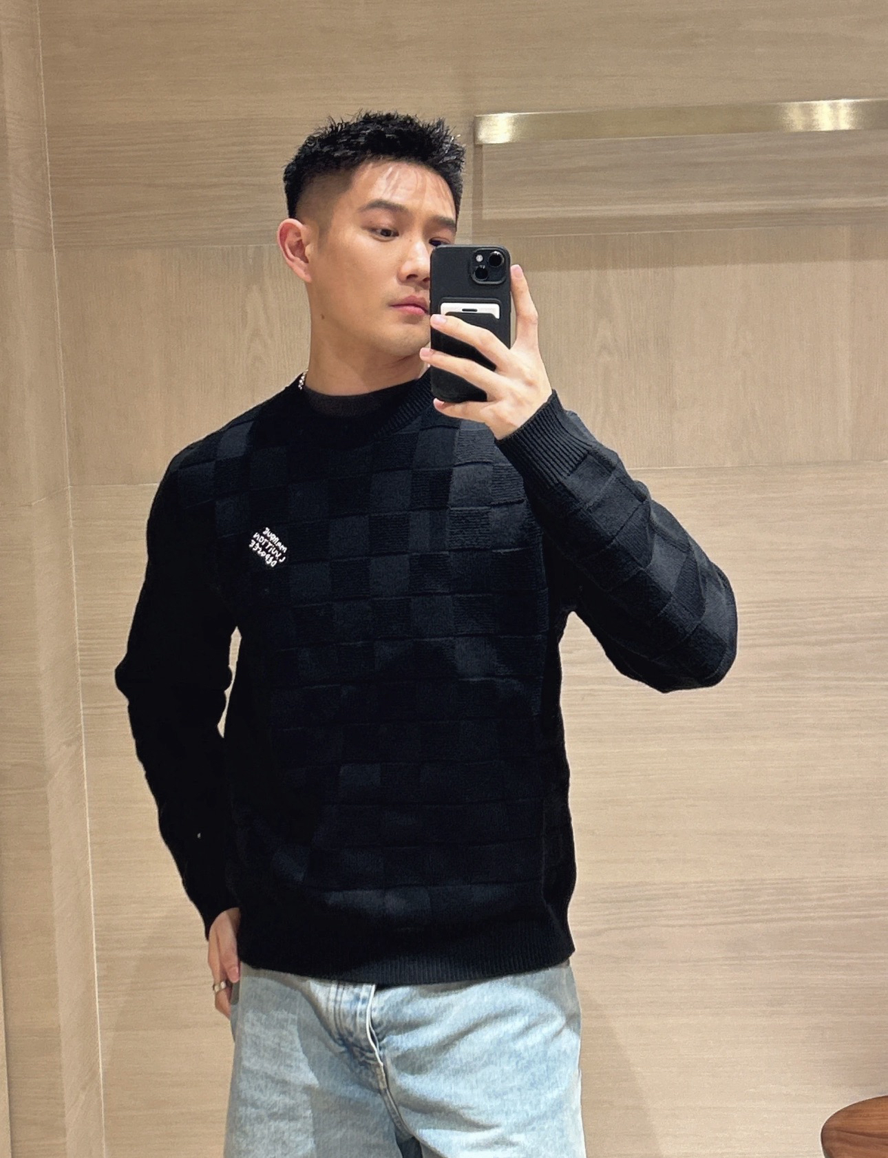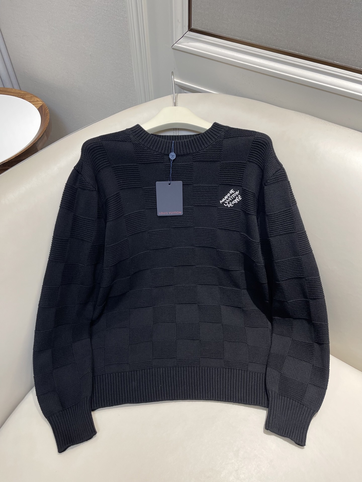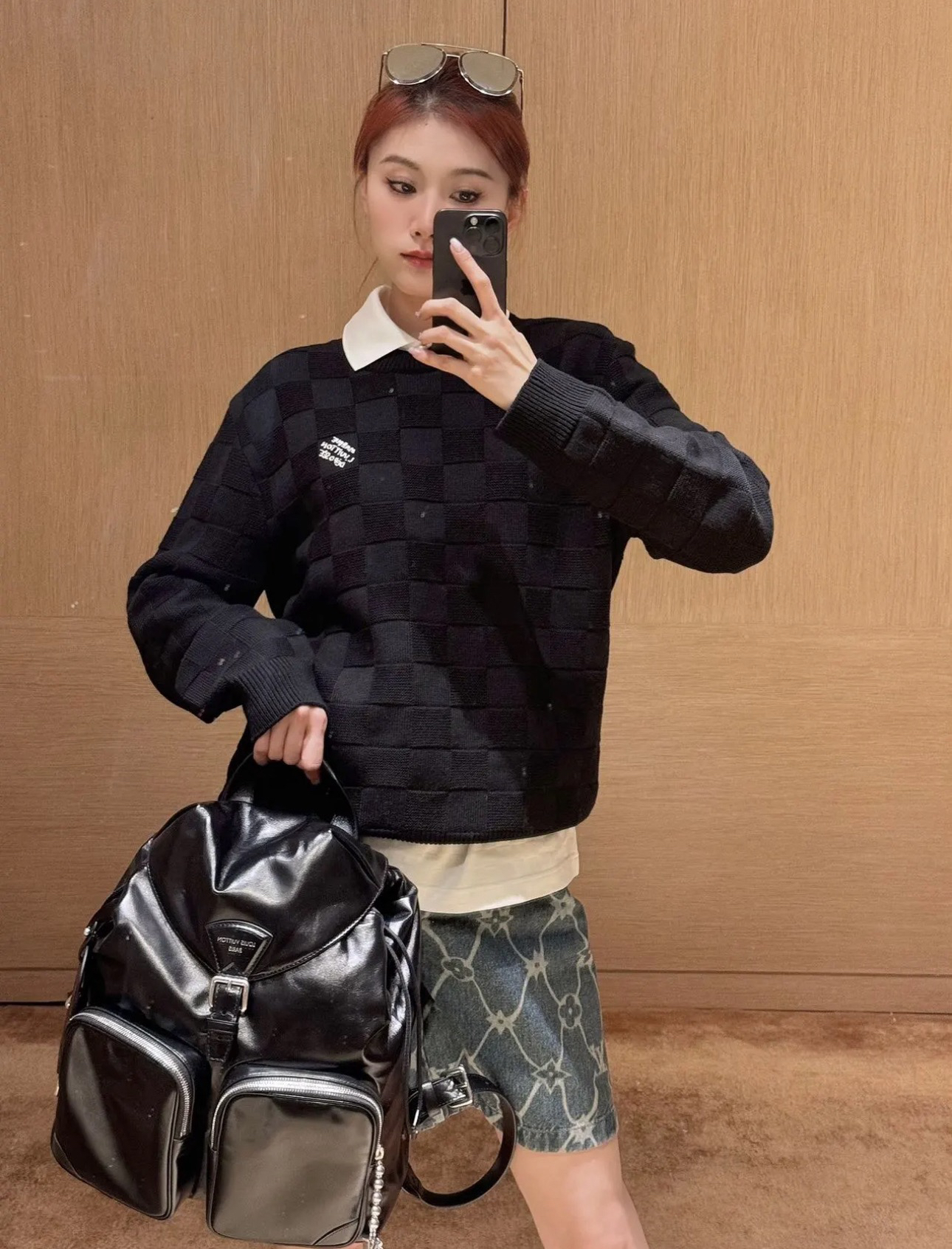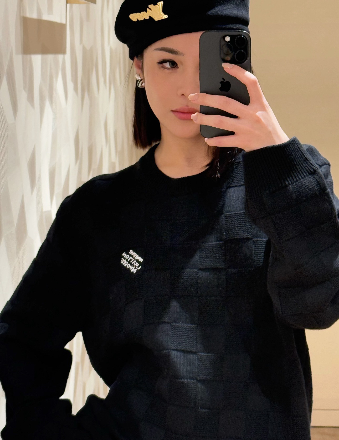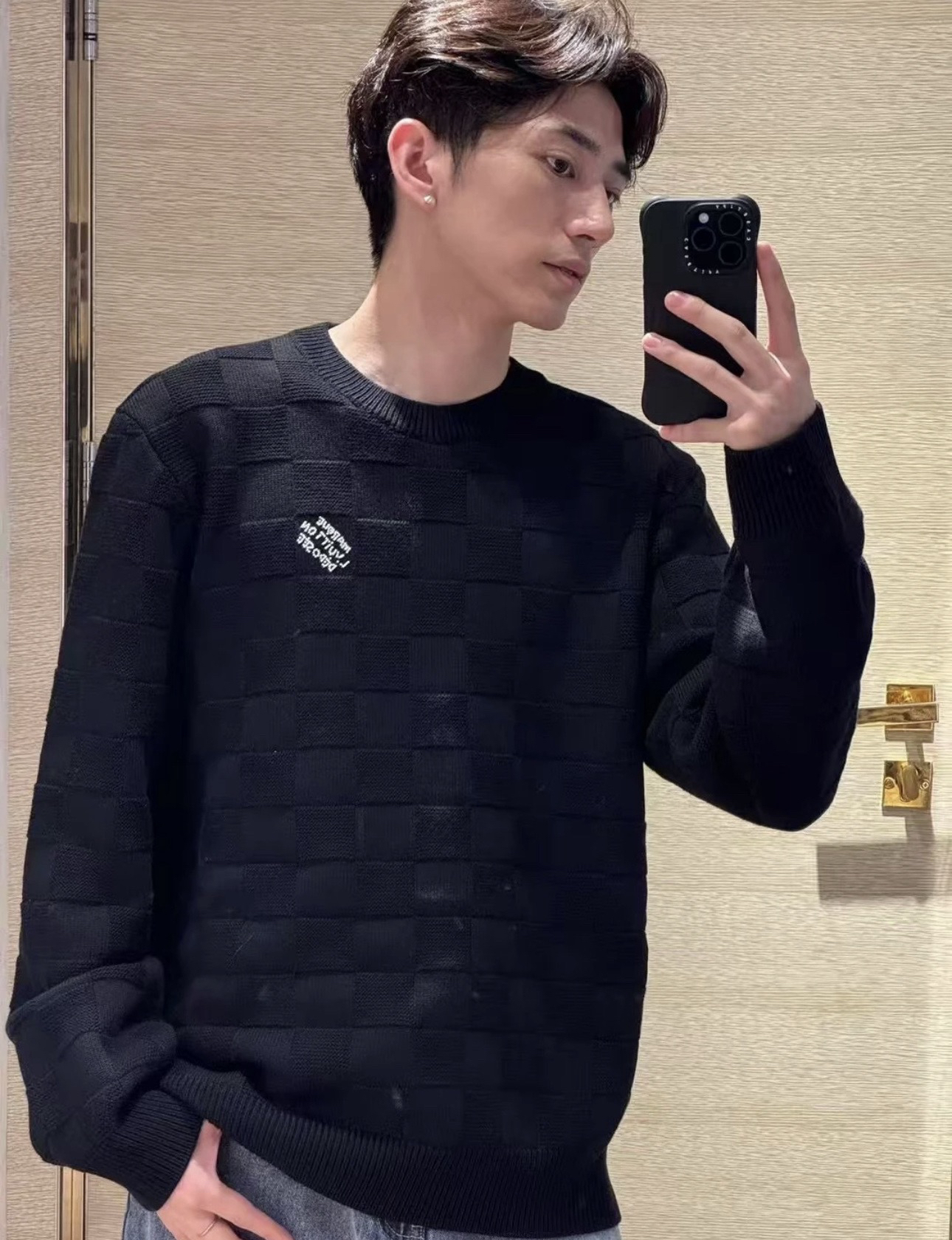 顺丰包邮 国内代工厂订单余裁 纯原 独家发售,25最新款 驴家男女款棋盘格圆领毛衣~ 官网目前已售罄 代购最低11500 只有黑色,标牌齐全 自留款 可直接送人!