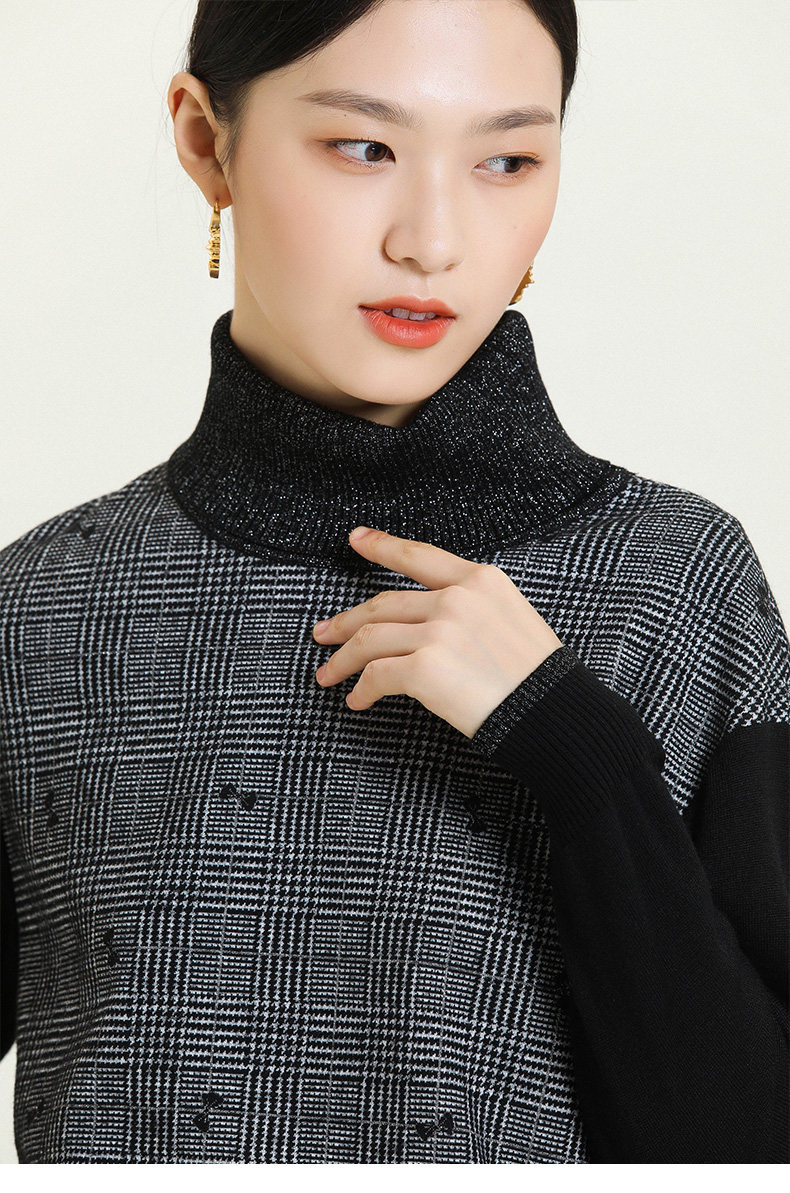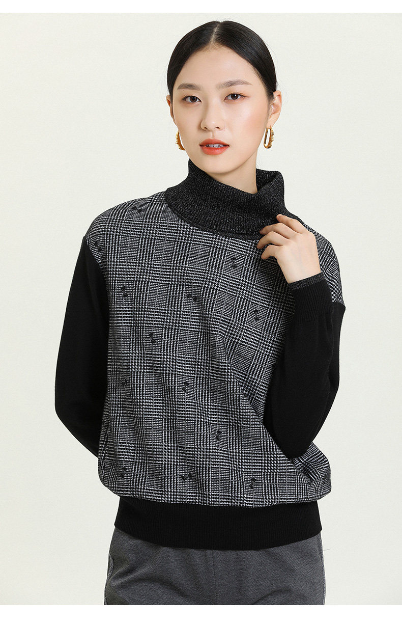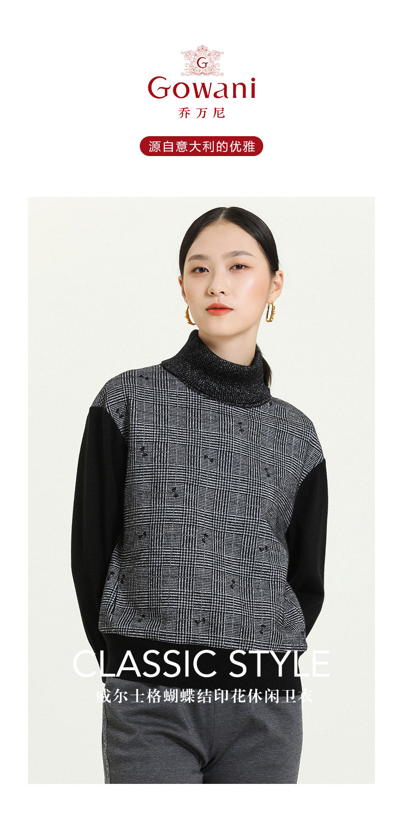 乔万尼新款绵羊毛衫英伦休闲风高领卫衣拼接设计打底衫针织衫ES3C518