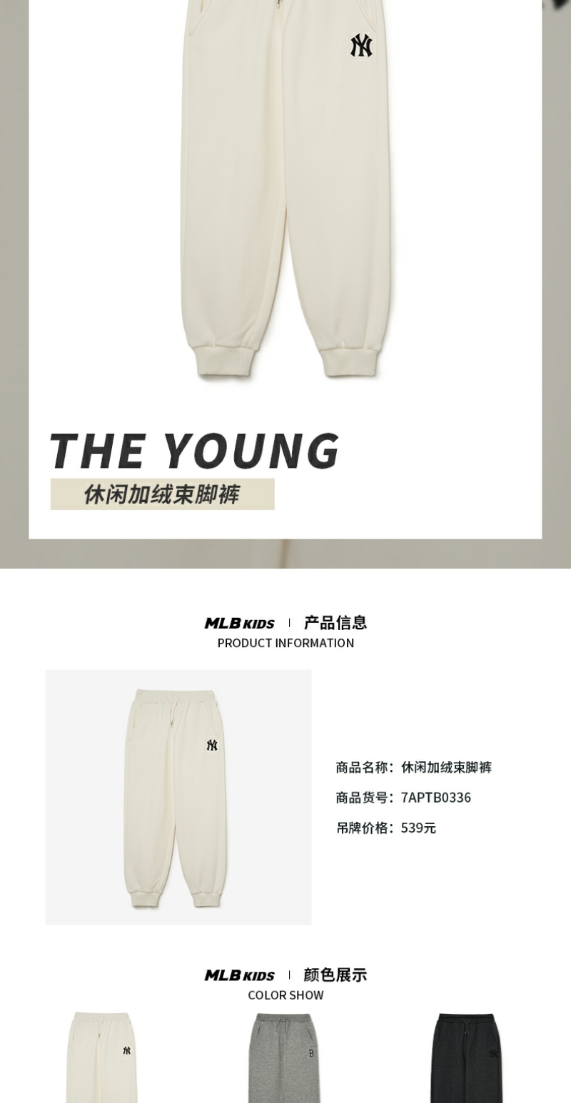 MLB儿童男女童宽松运动休闲时尚加绒束脚裤23秋季新款7APTB0336【热销中无货退款介意勿拍】【热销中无货退款介意勿拍】