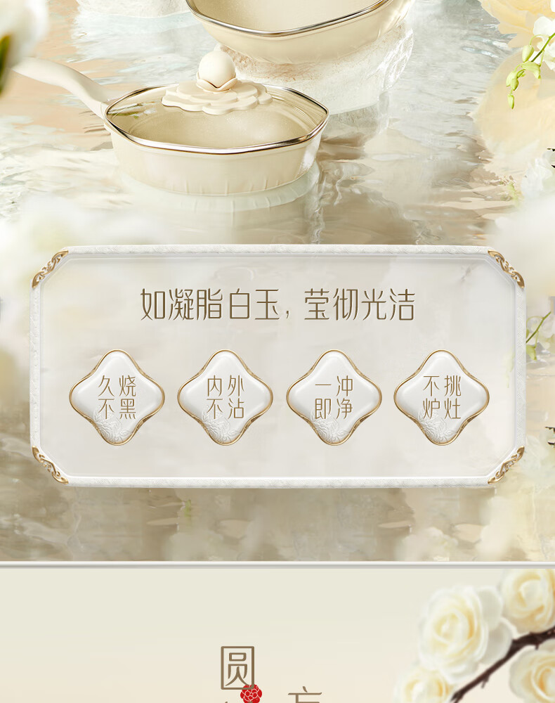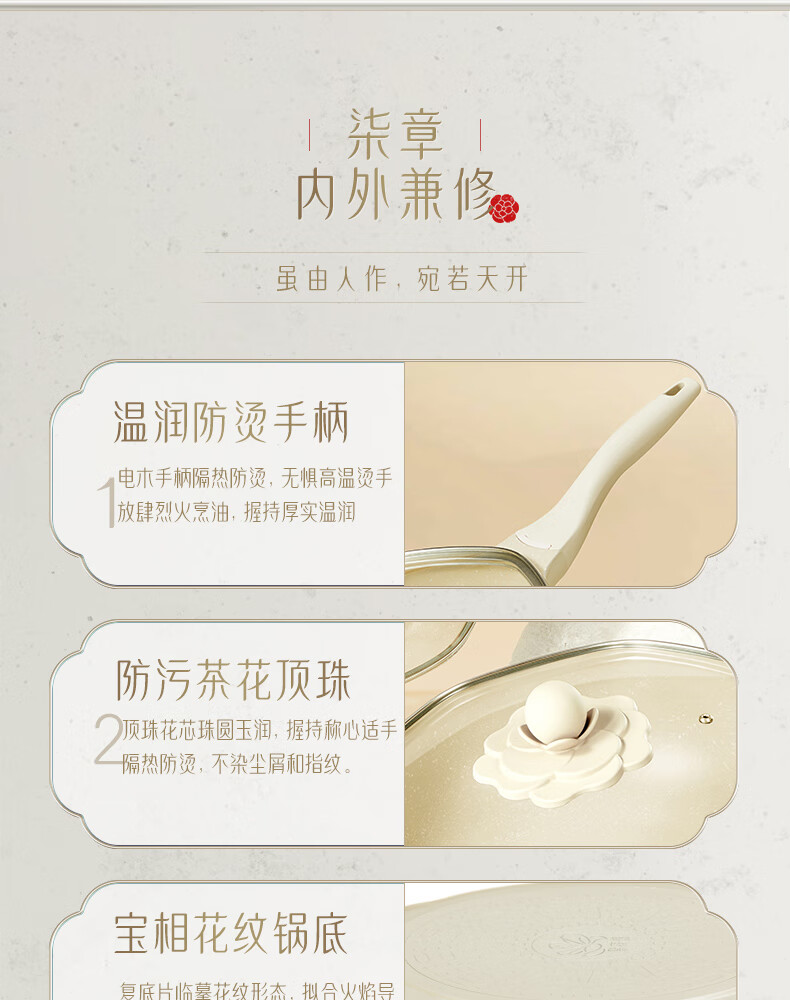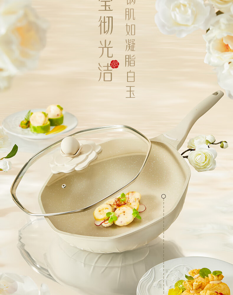 【安达联帮&温仑山】【仅限快递】VELOSAN温仑山炒锅不粘锅32cm白玉山茶花炒锅FHLY02-01(厂家直发)