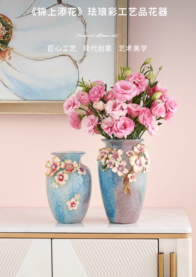 【彼达思】罗比罗丹锦上添花珐琅彩花瓶创意玄关插花摆件乔迁礼物