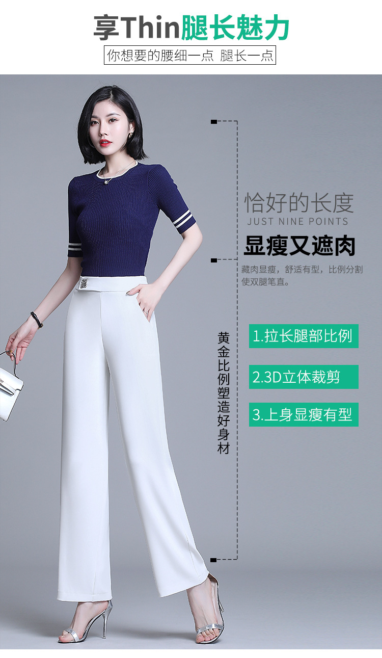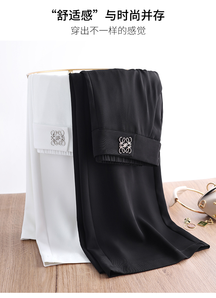 上海旗袍厂XBMY-21072夏季新款刺绣阔腿裤韩版高腰显瘦宽松垂坠感休闲裤