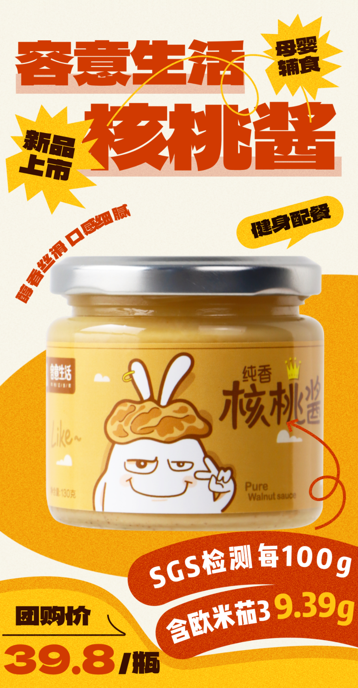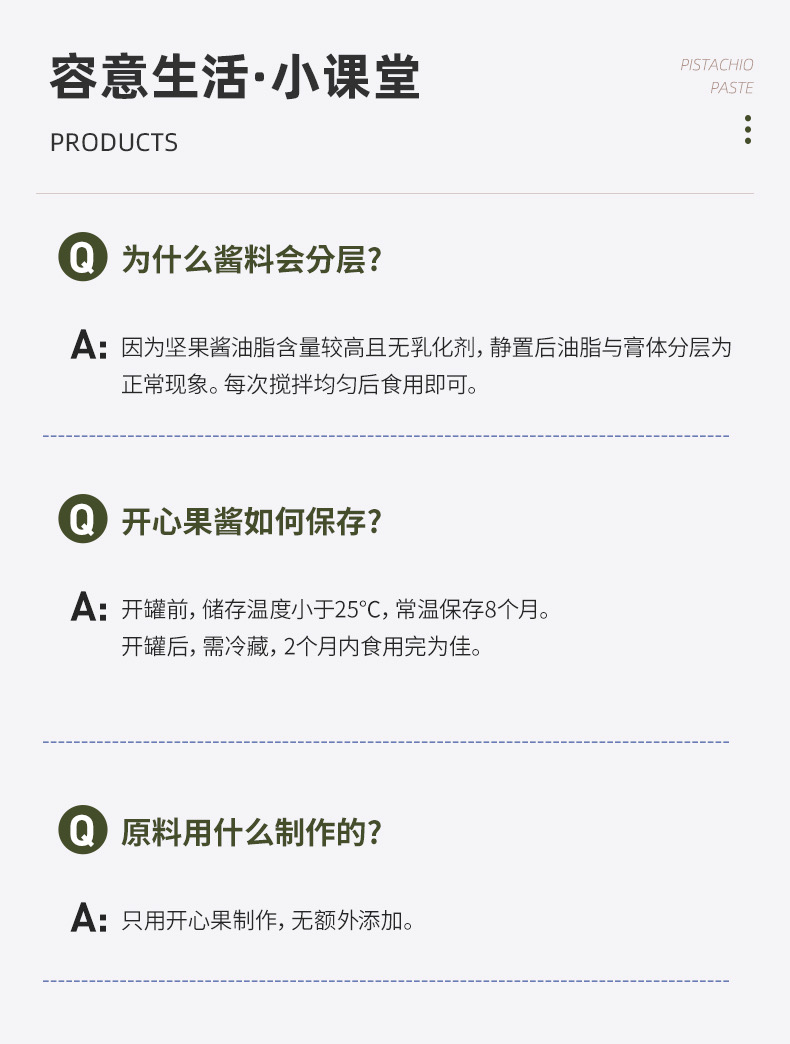1瓶超220颗开心果制作 | 容意生活纯开心果酱/纯核桃酱(100g含欧米伽3 9.39g) 拌饭佐餐沙拉果酱 130g/瓶