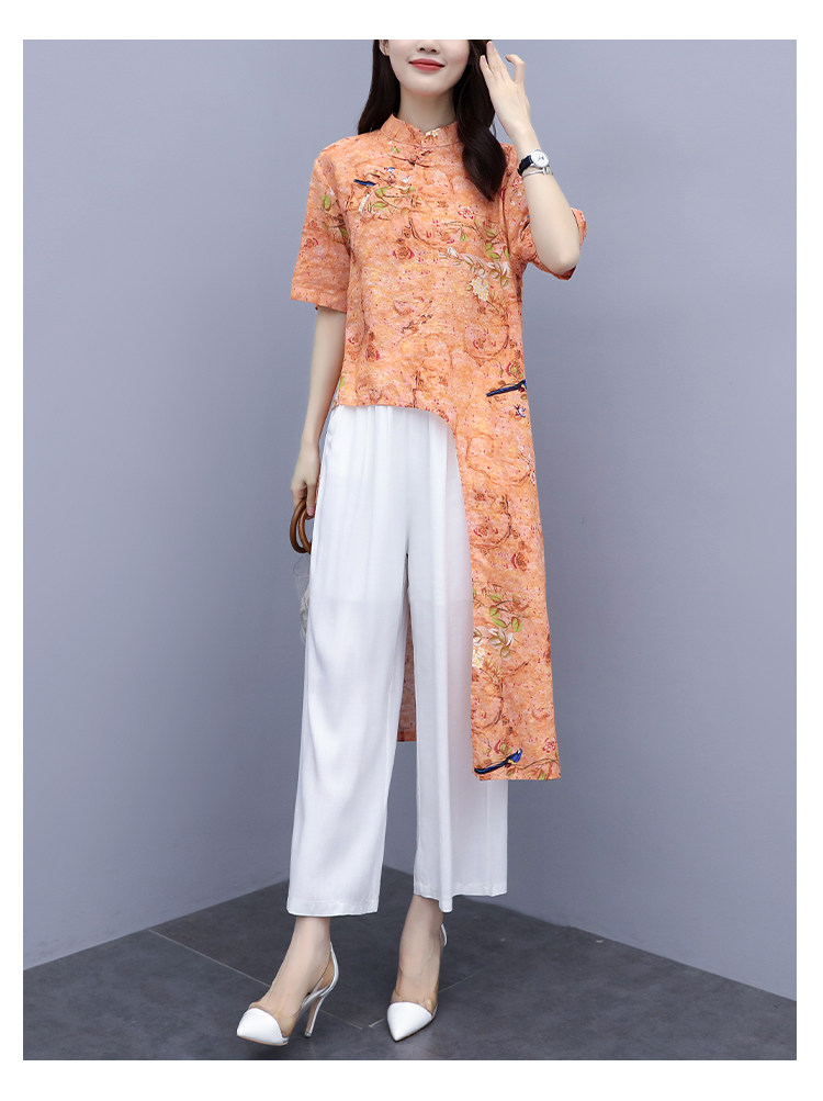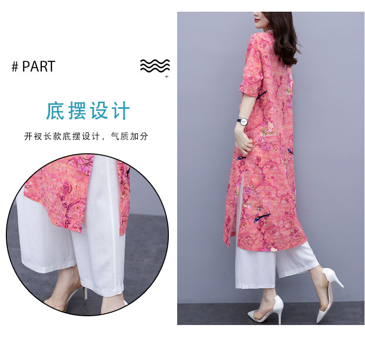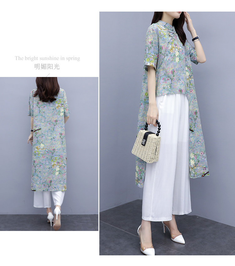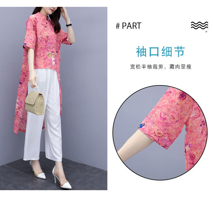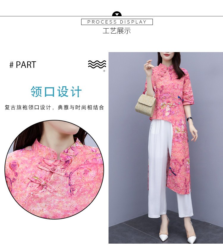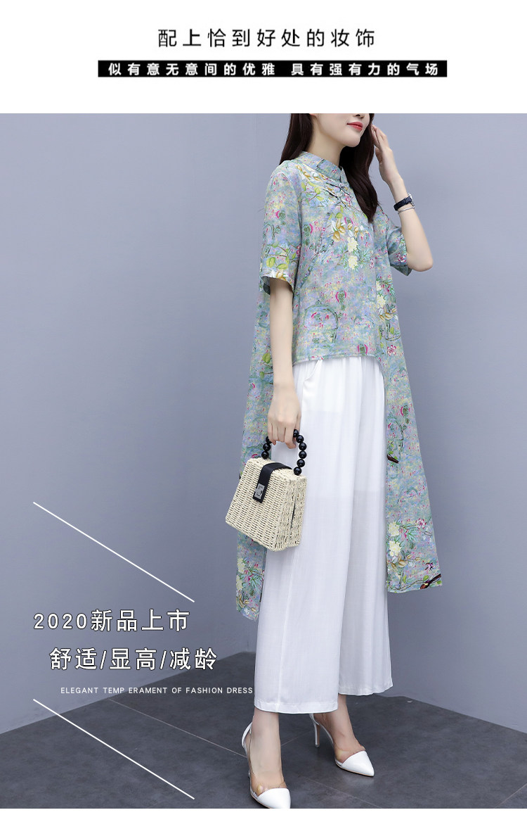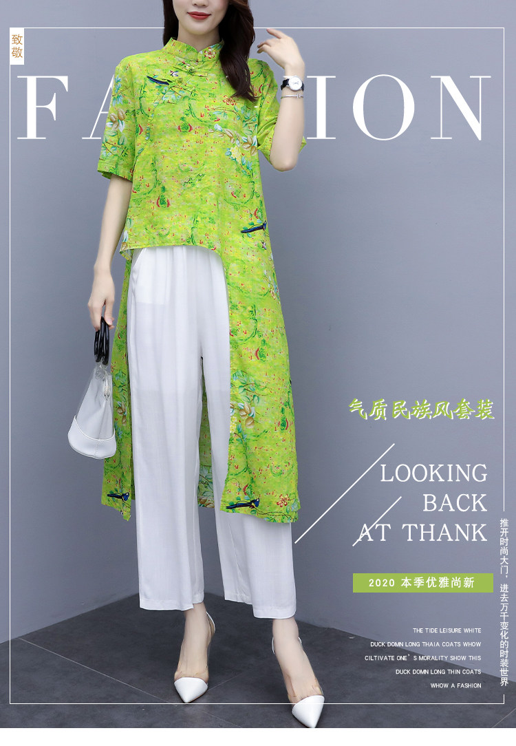 MQQ-570新款大码棉麻套装民族风不规则印花两件套