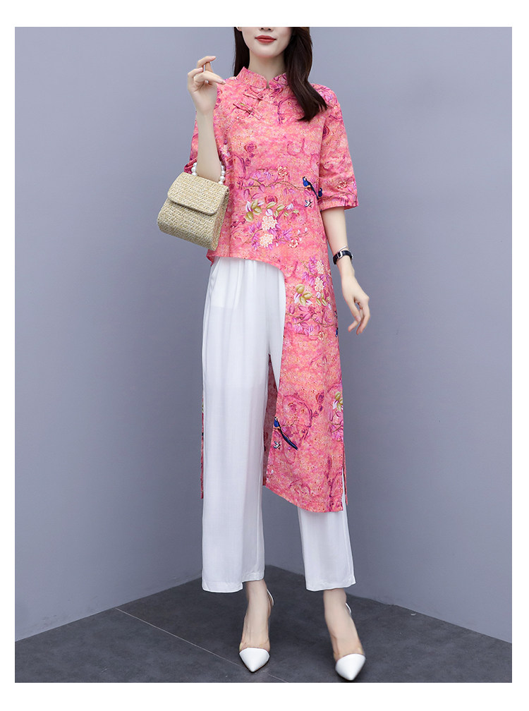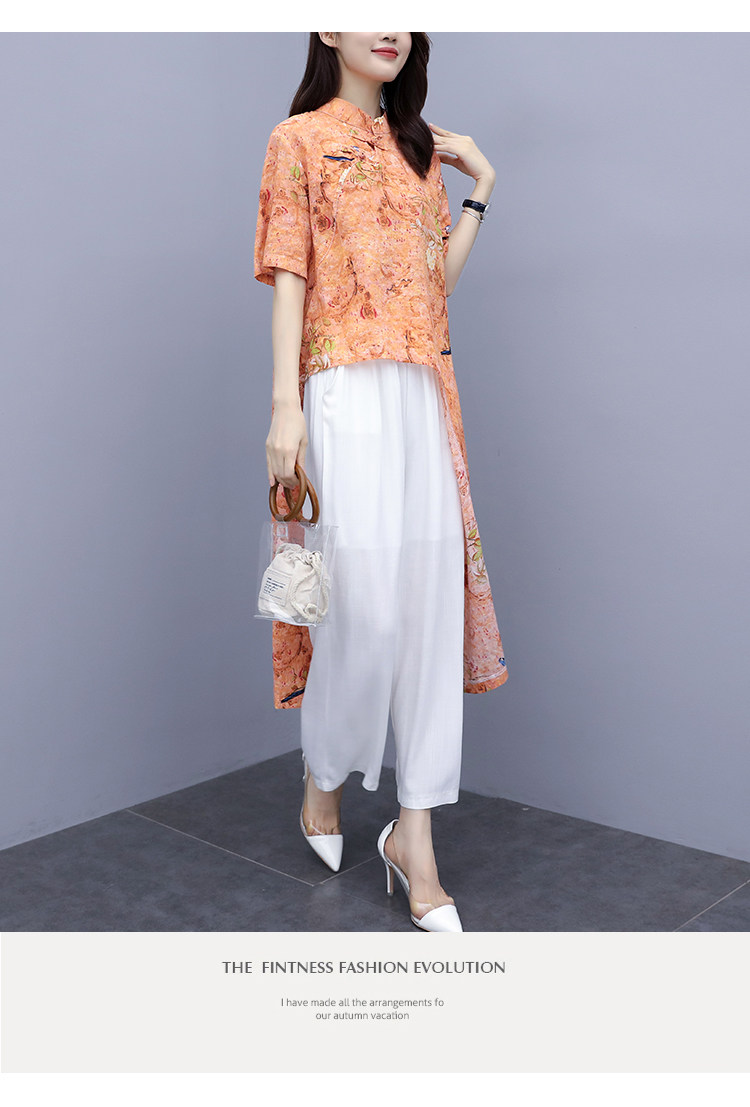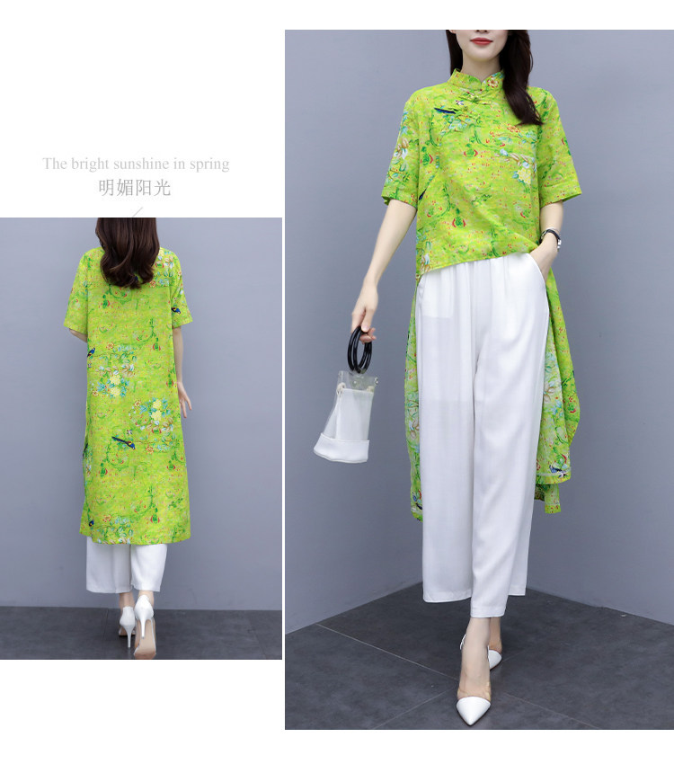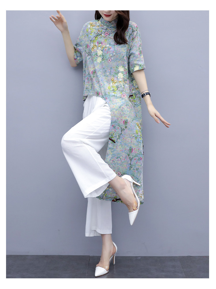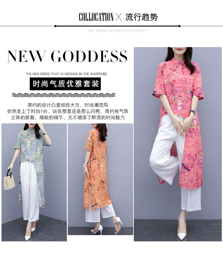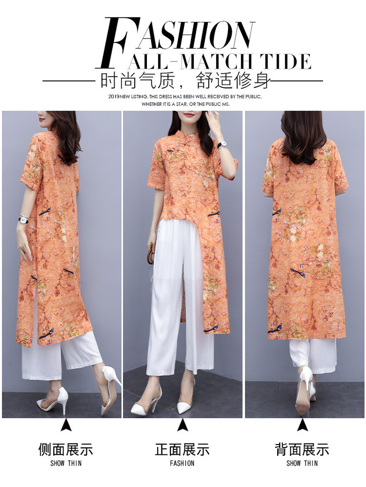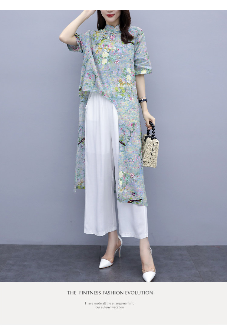 MQQ-570新款大码棉麻套装民族风不规则印花两件套