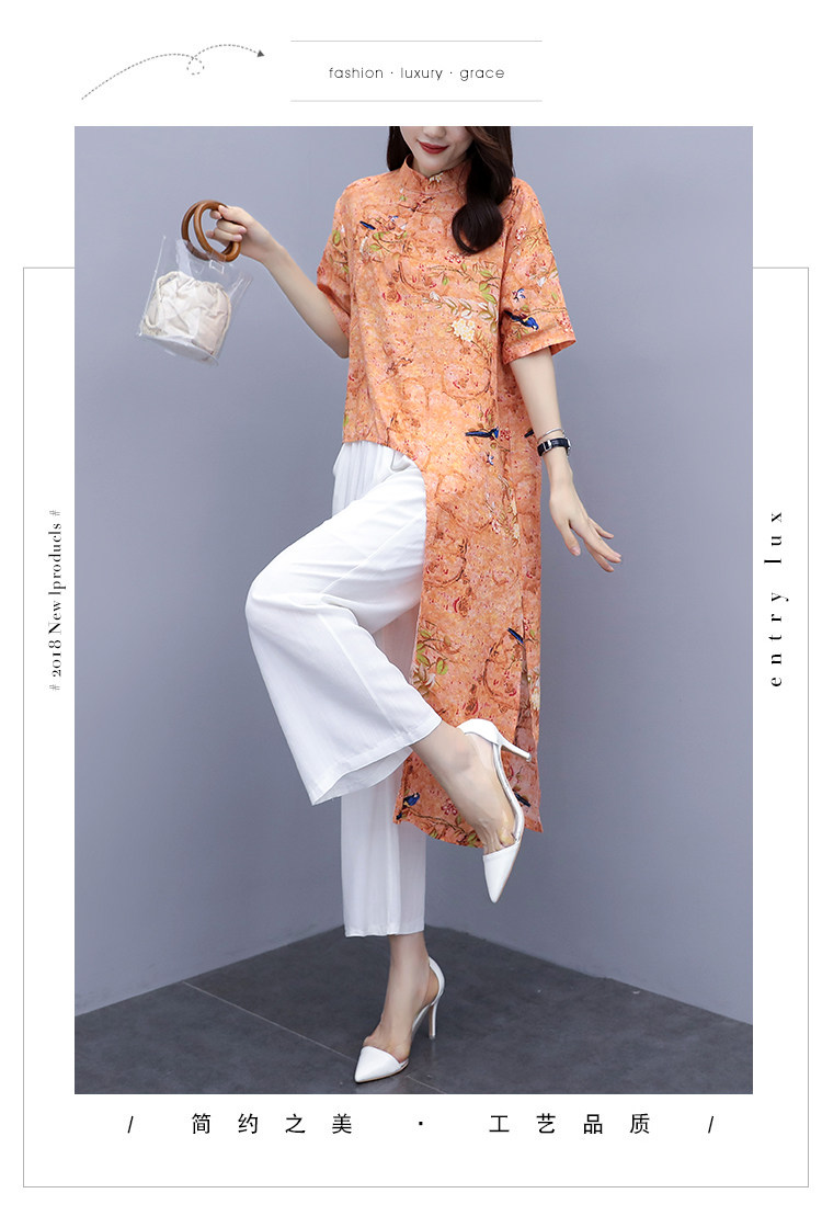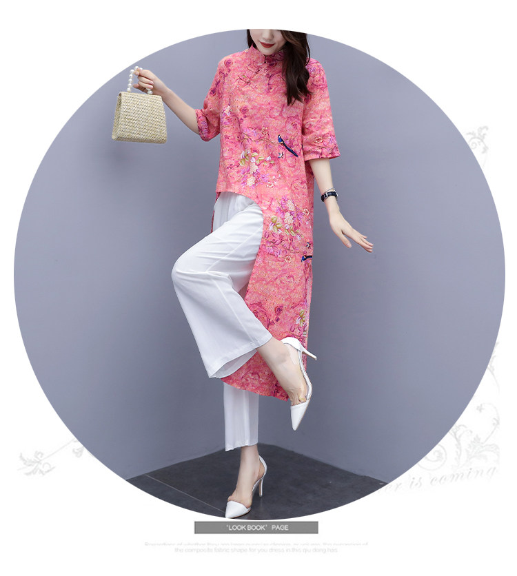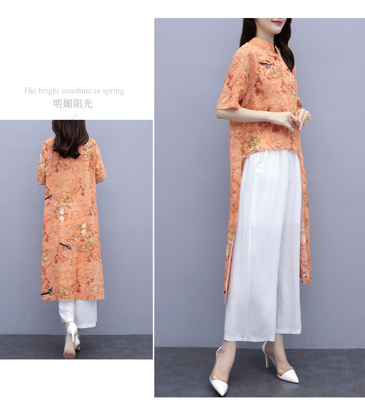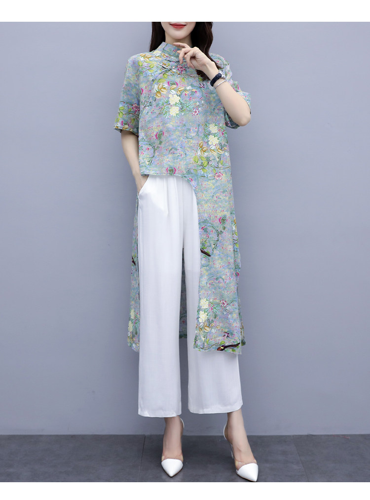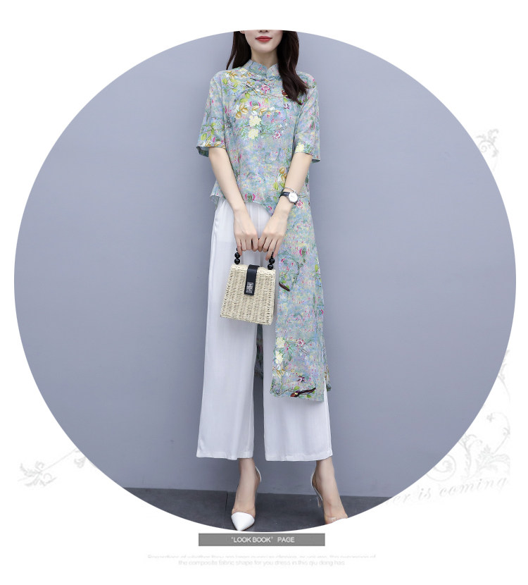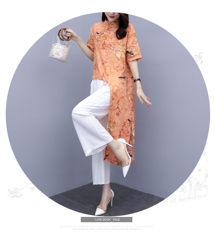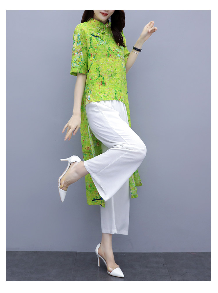 MQQ-570新款大码棉麻套装民族风不规则印花两件套