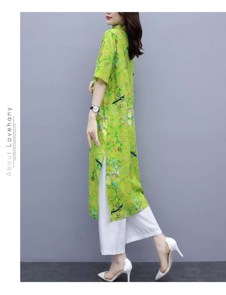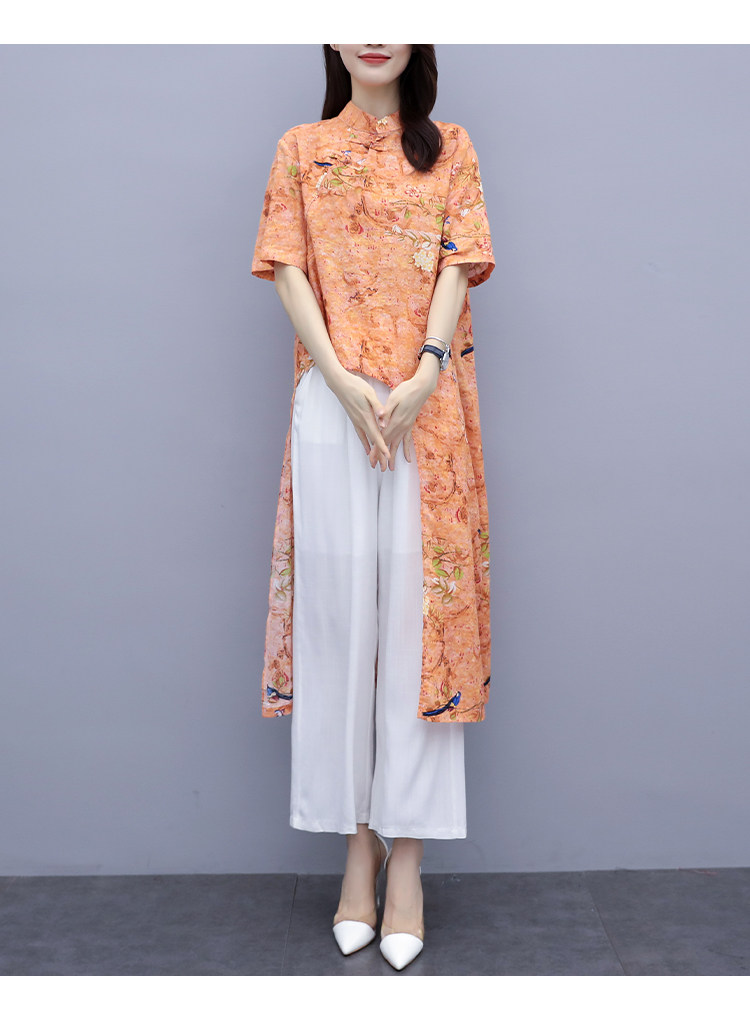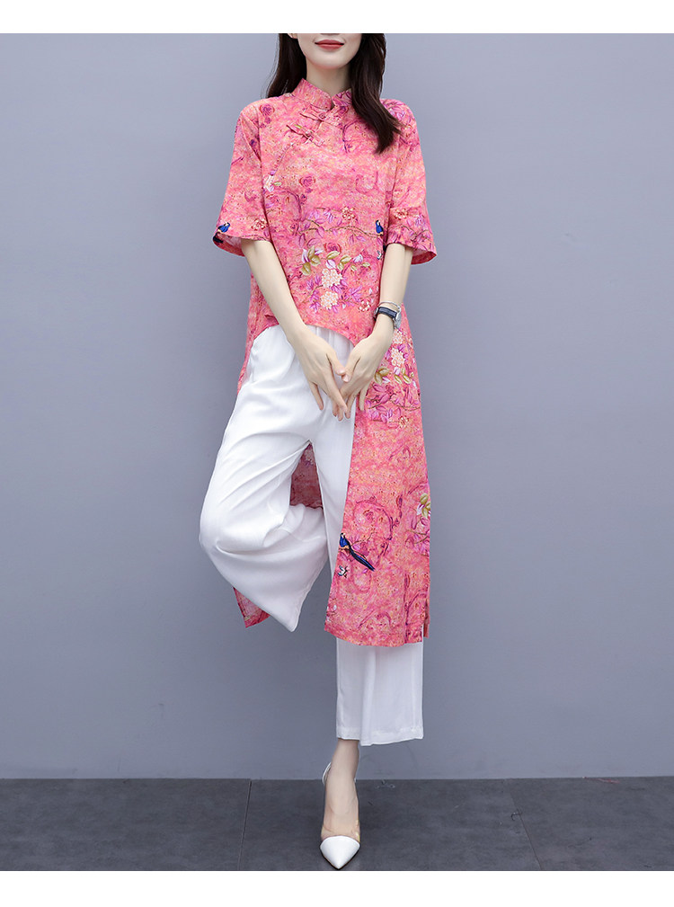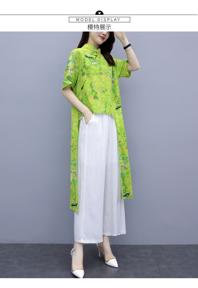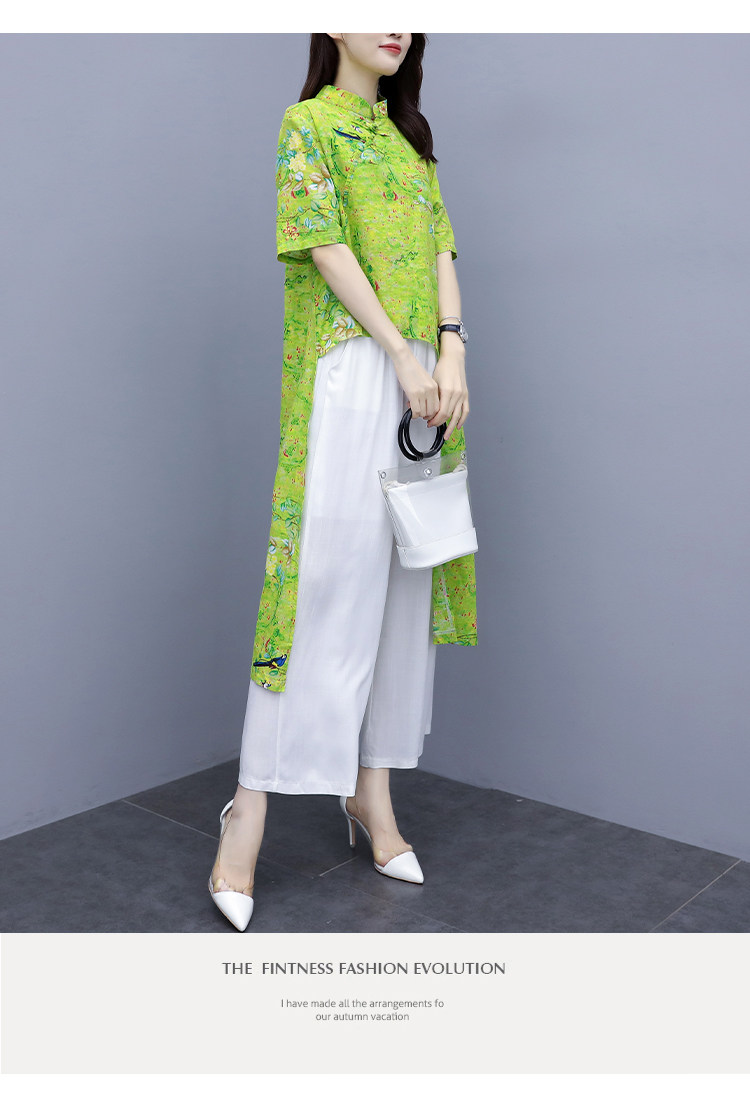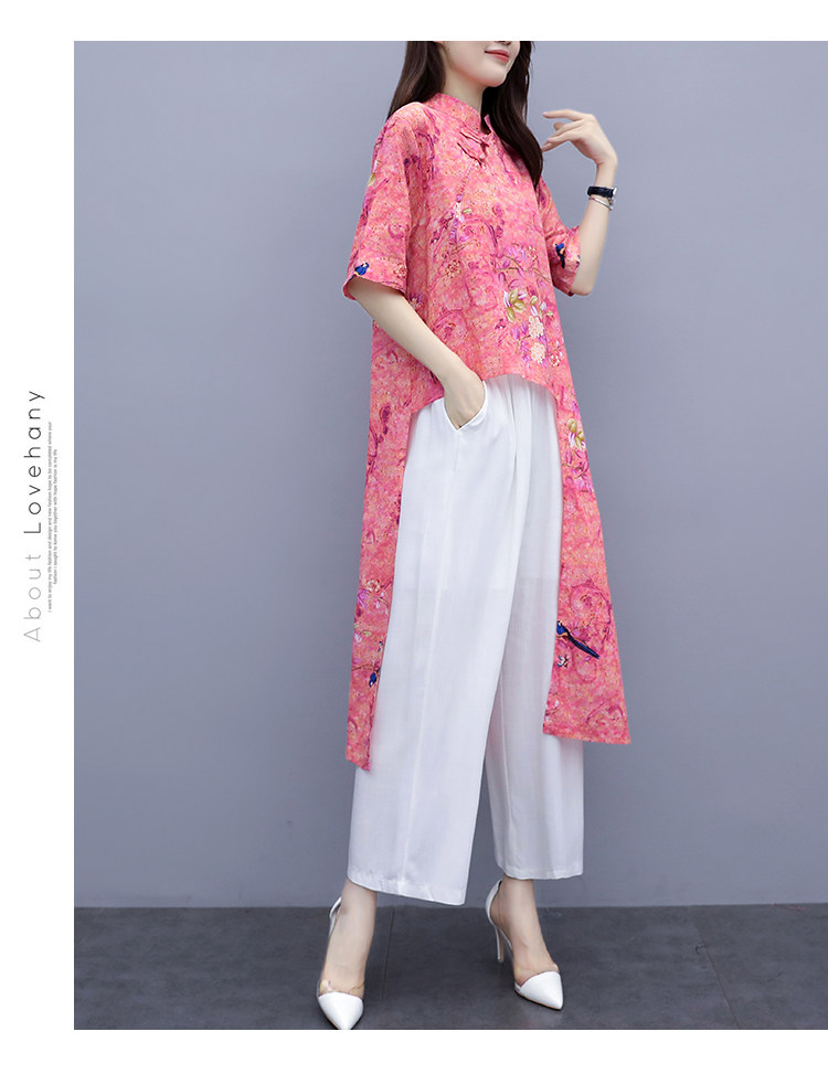 MQQ-570新款大码棉麻套装民族风不规则印花两件套