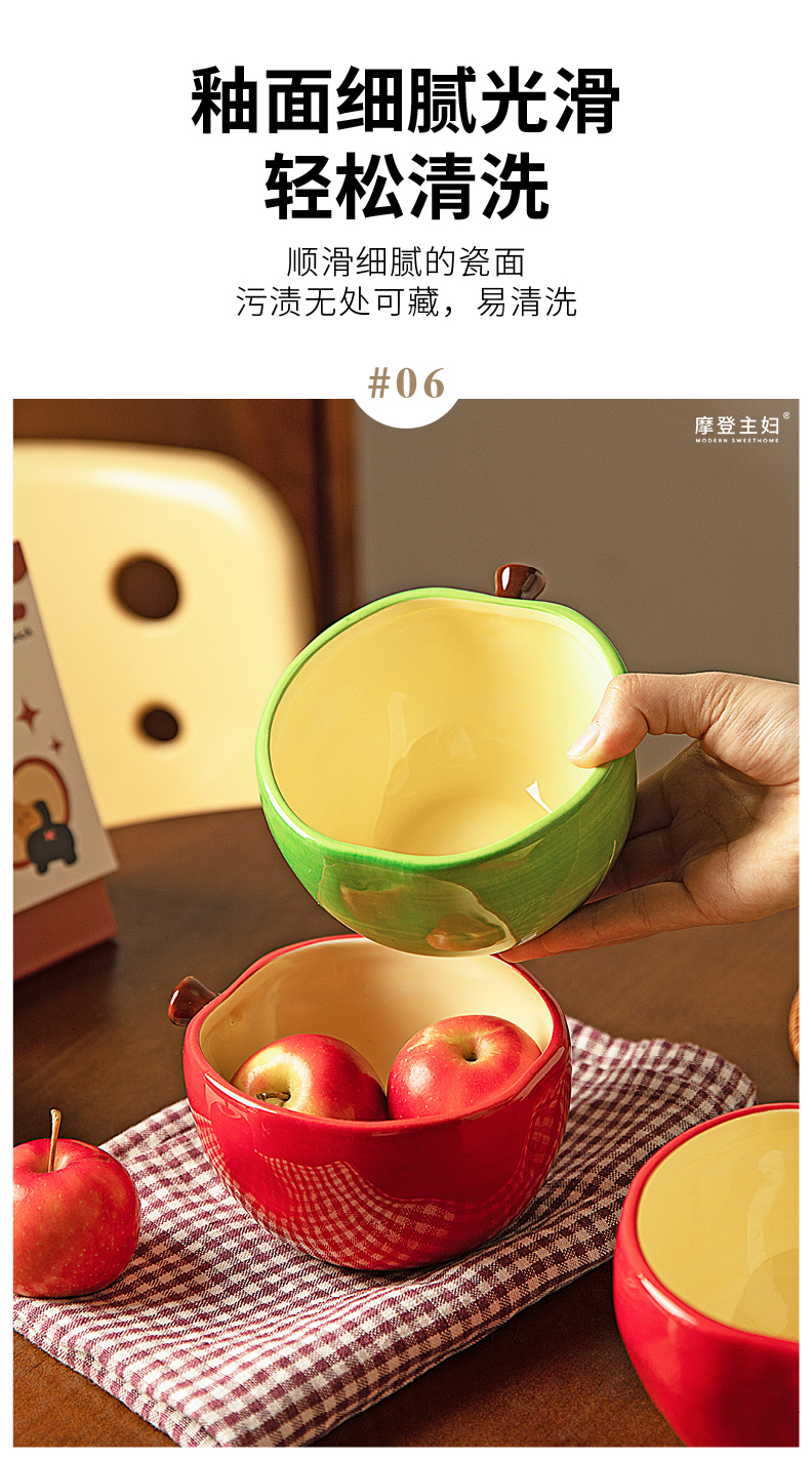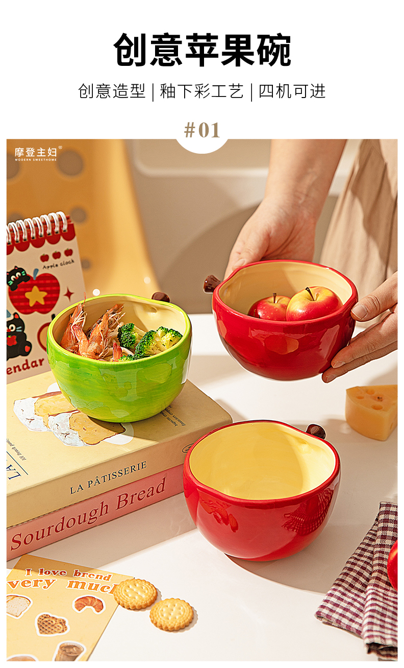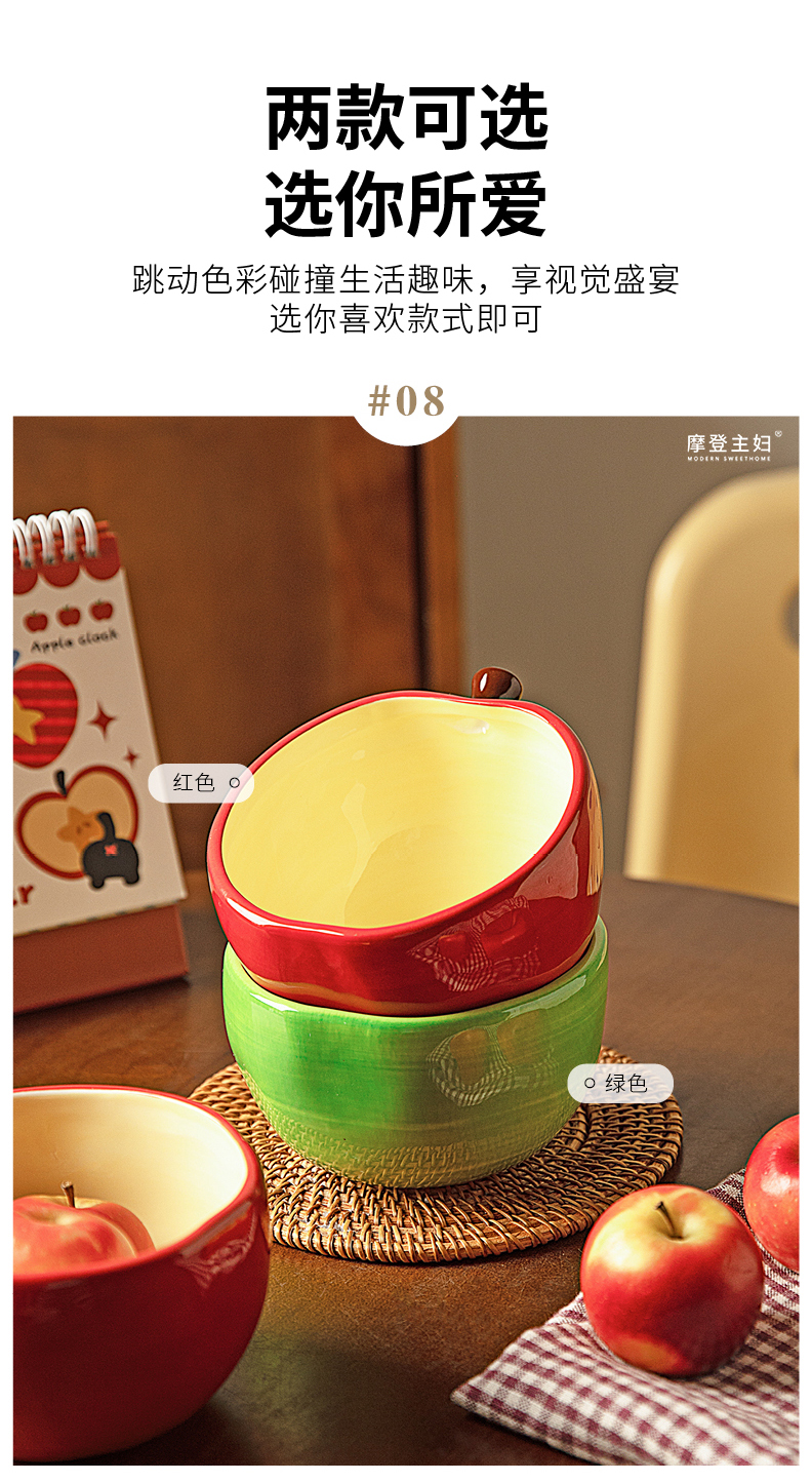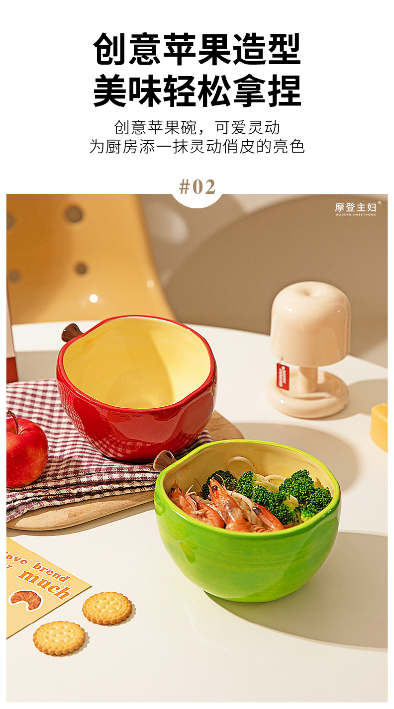 摩登主妇陶瓷苹果米饭碗家用2025新款高颜值餐具酸奶水果碗儿童碗