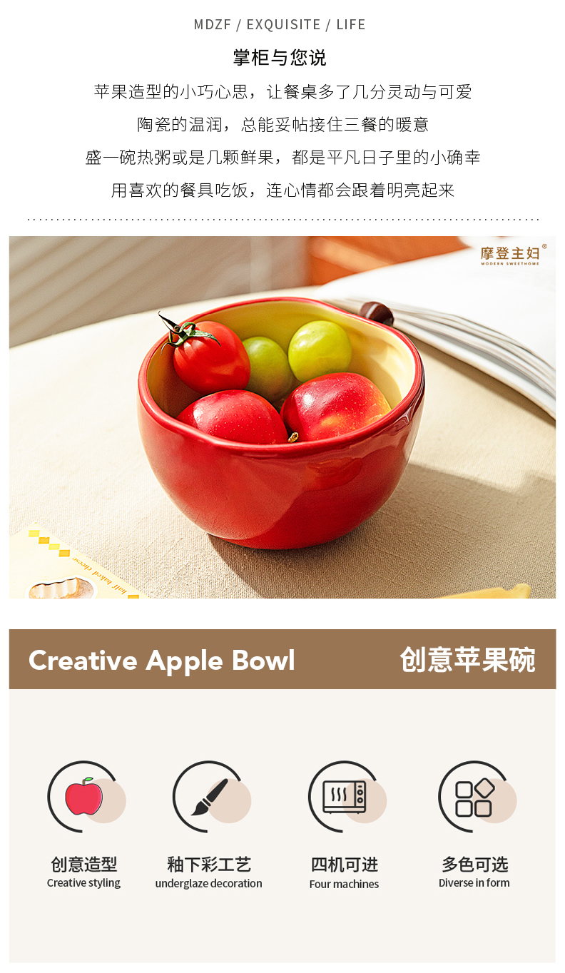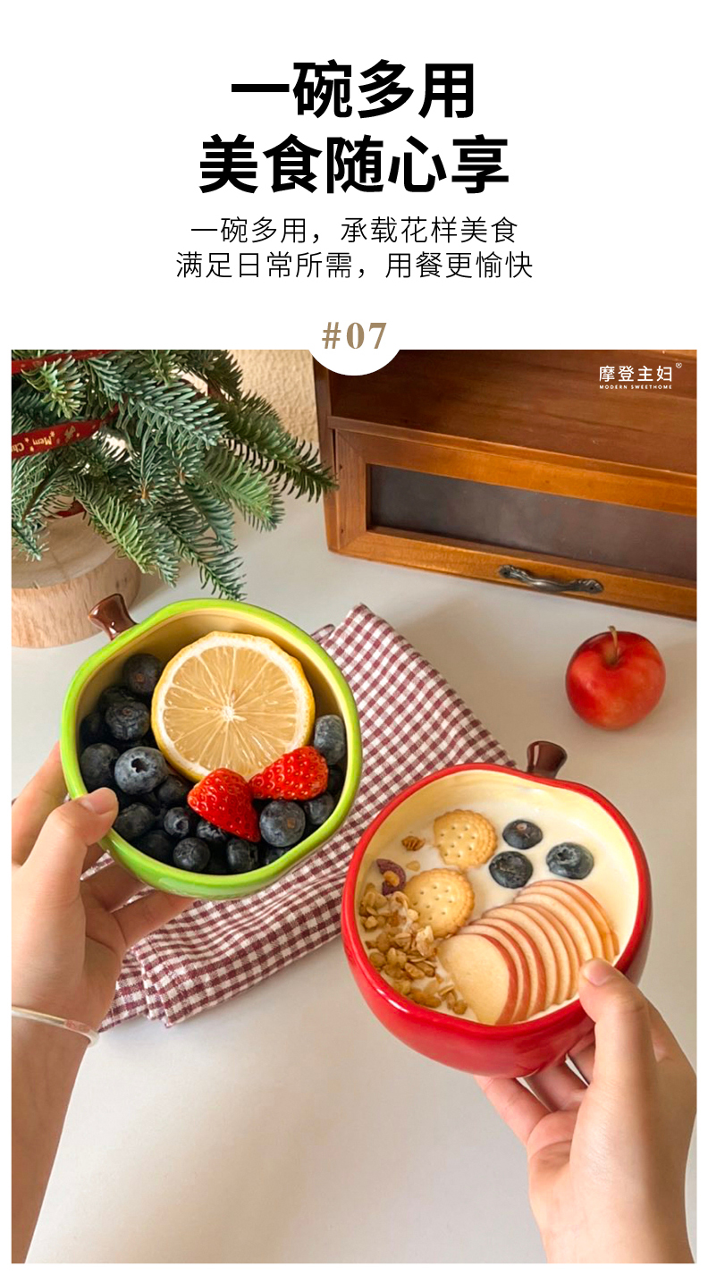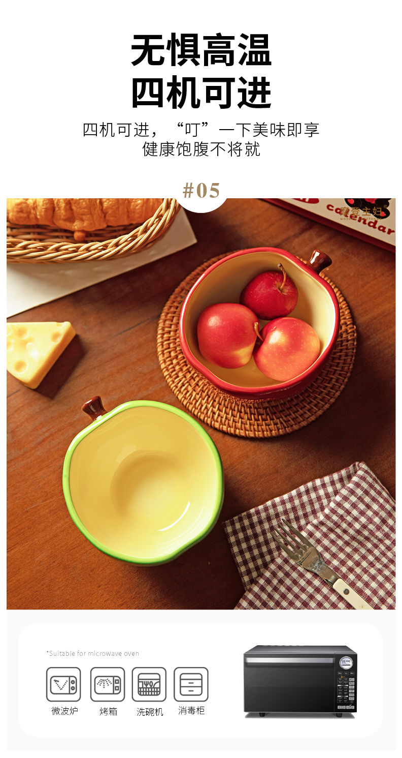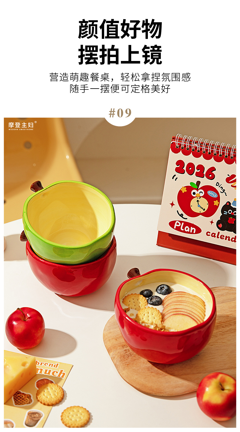摩登主妇陶瓷苹果米饭碗家用2025新款高颜值餐具酸奶水果碗儿童碗