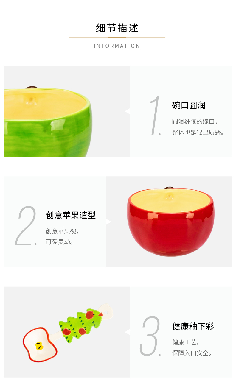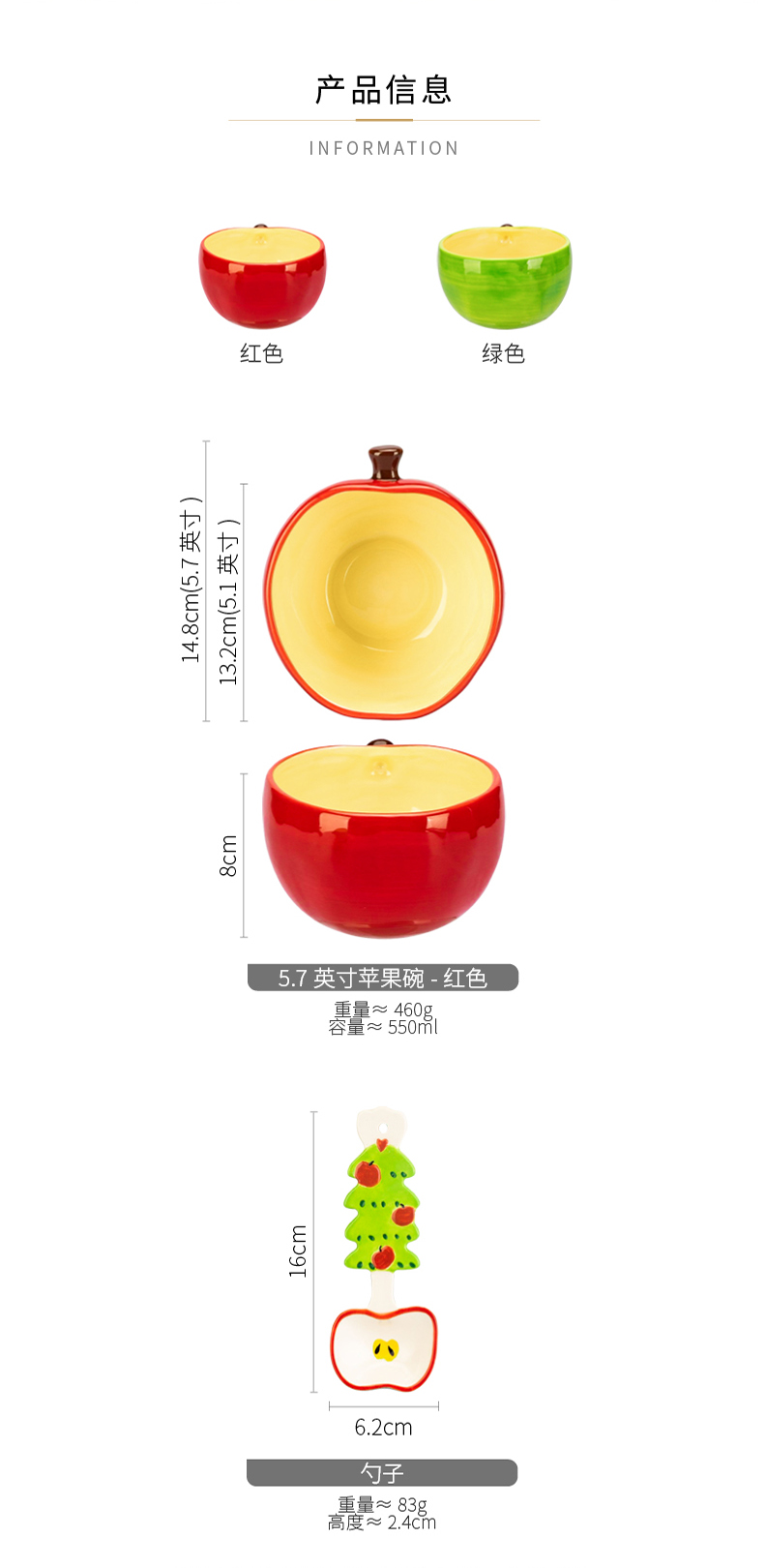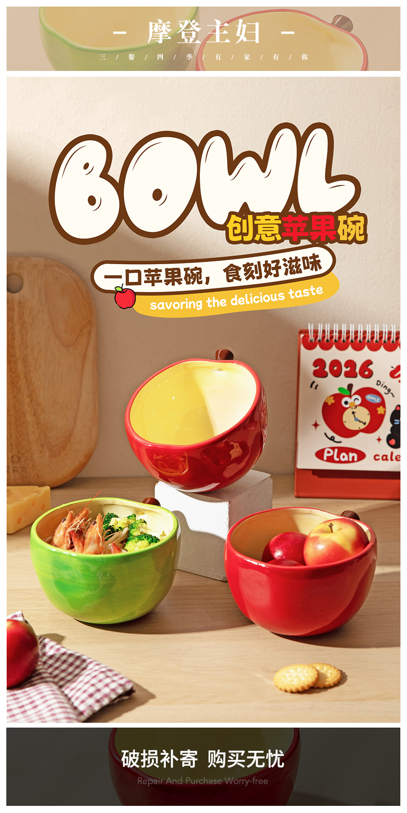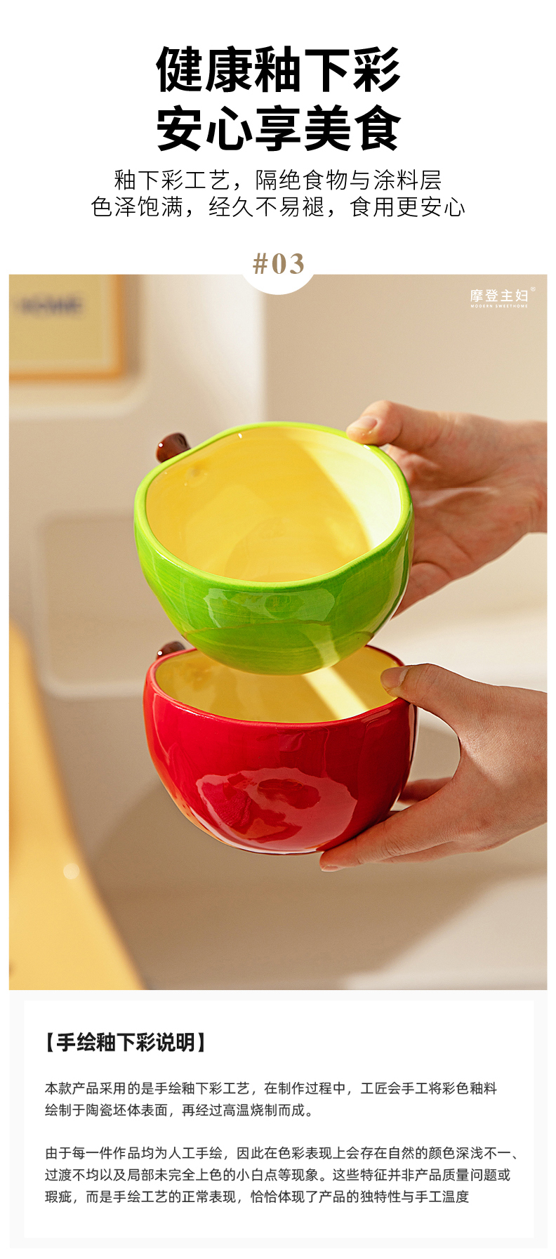 摩登主妇陶瓷苹果米饭碗家用2025新款高颜值餐具酸奶水果碗儿童碗