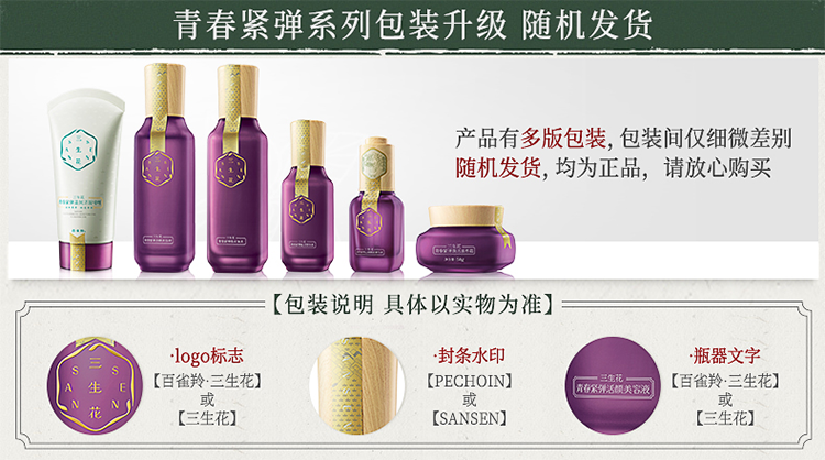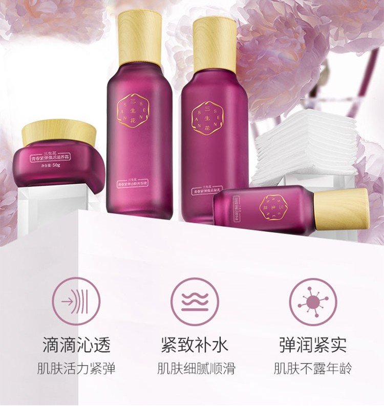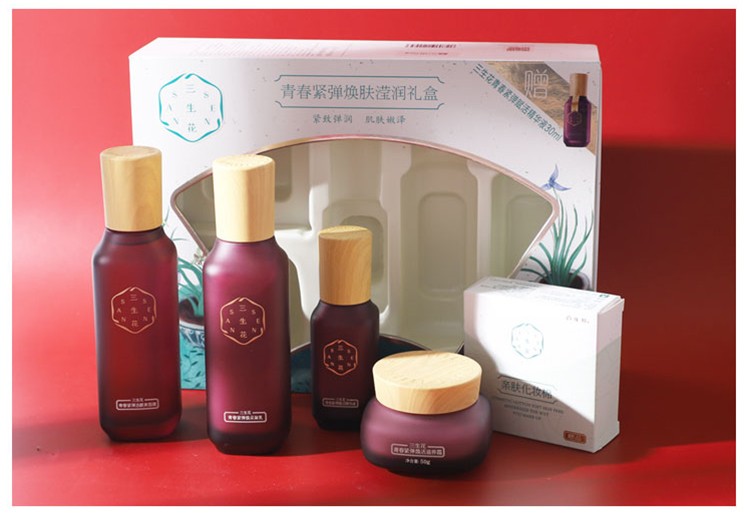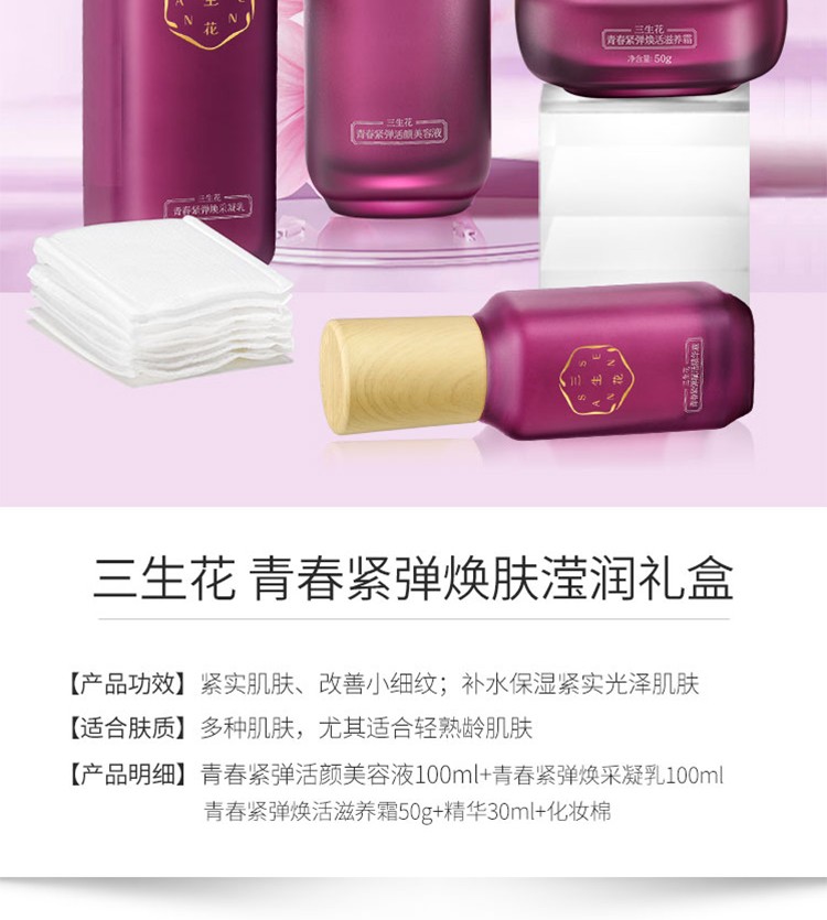 【百雀羚】三生花青春紧弹焕肤莹润礼盒女面部化妆品护肤品正品套盒4件套