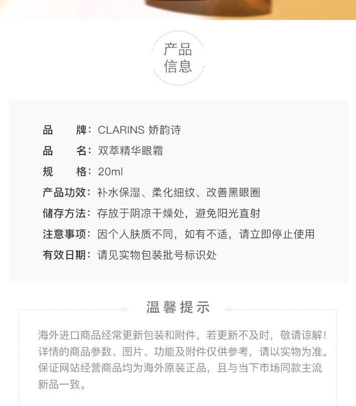 【保税仓】娇韵诗Clarins双萃焕活眼部精华20ml(效期27年6月以后)