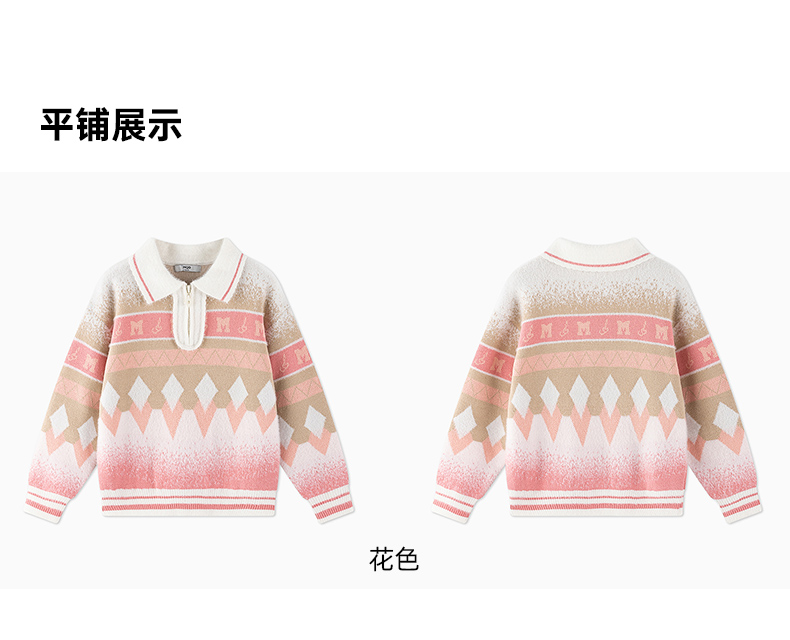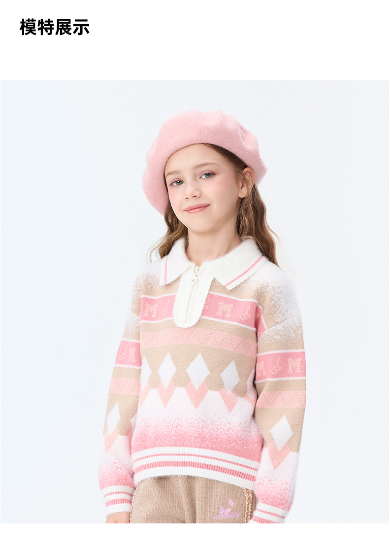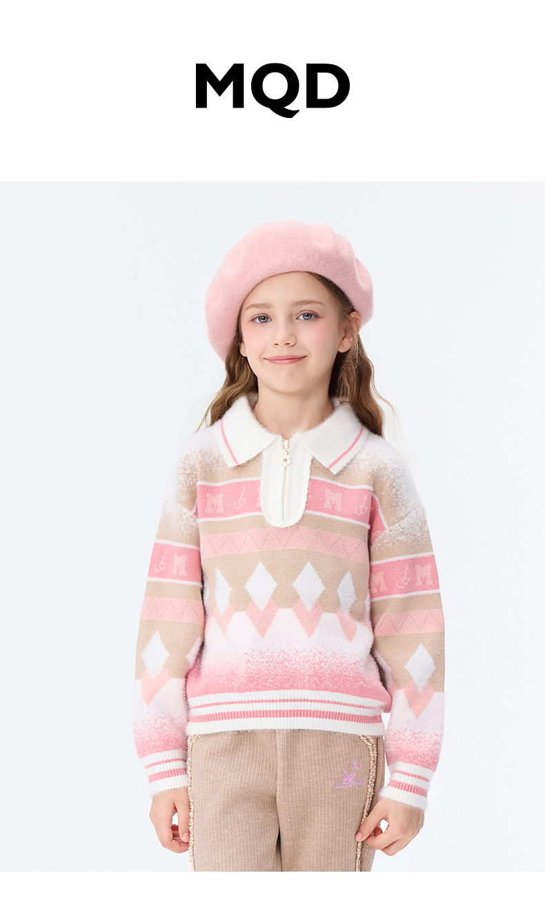 【秒2】【MQD】女童冬季舒适柔软潮酷渐变翻领针织衫