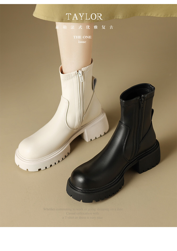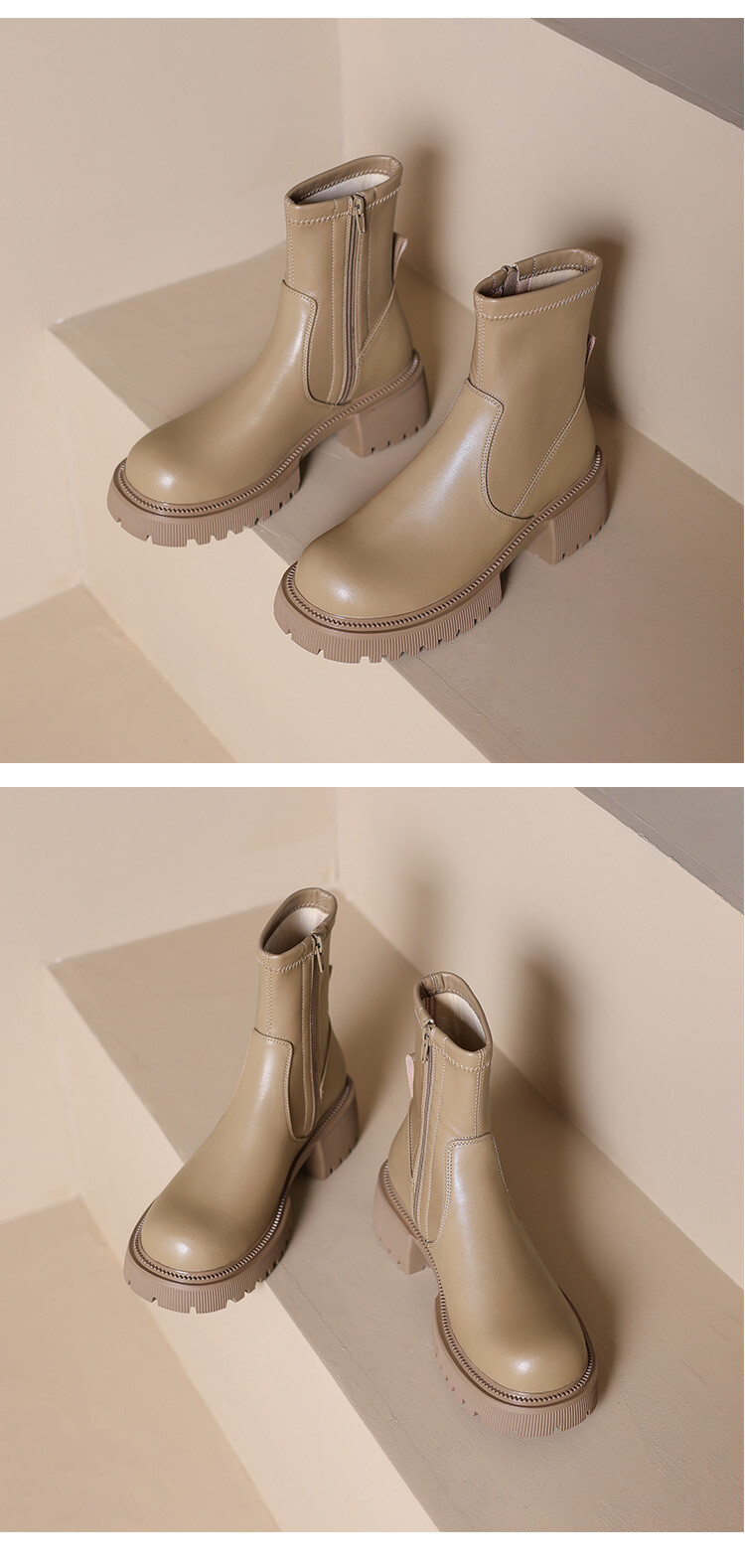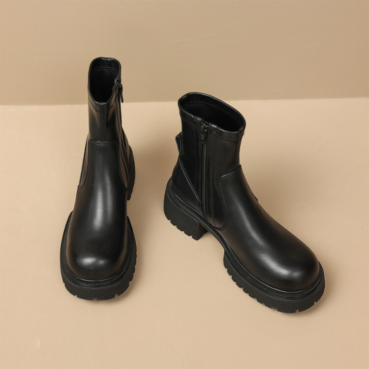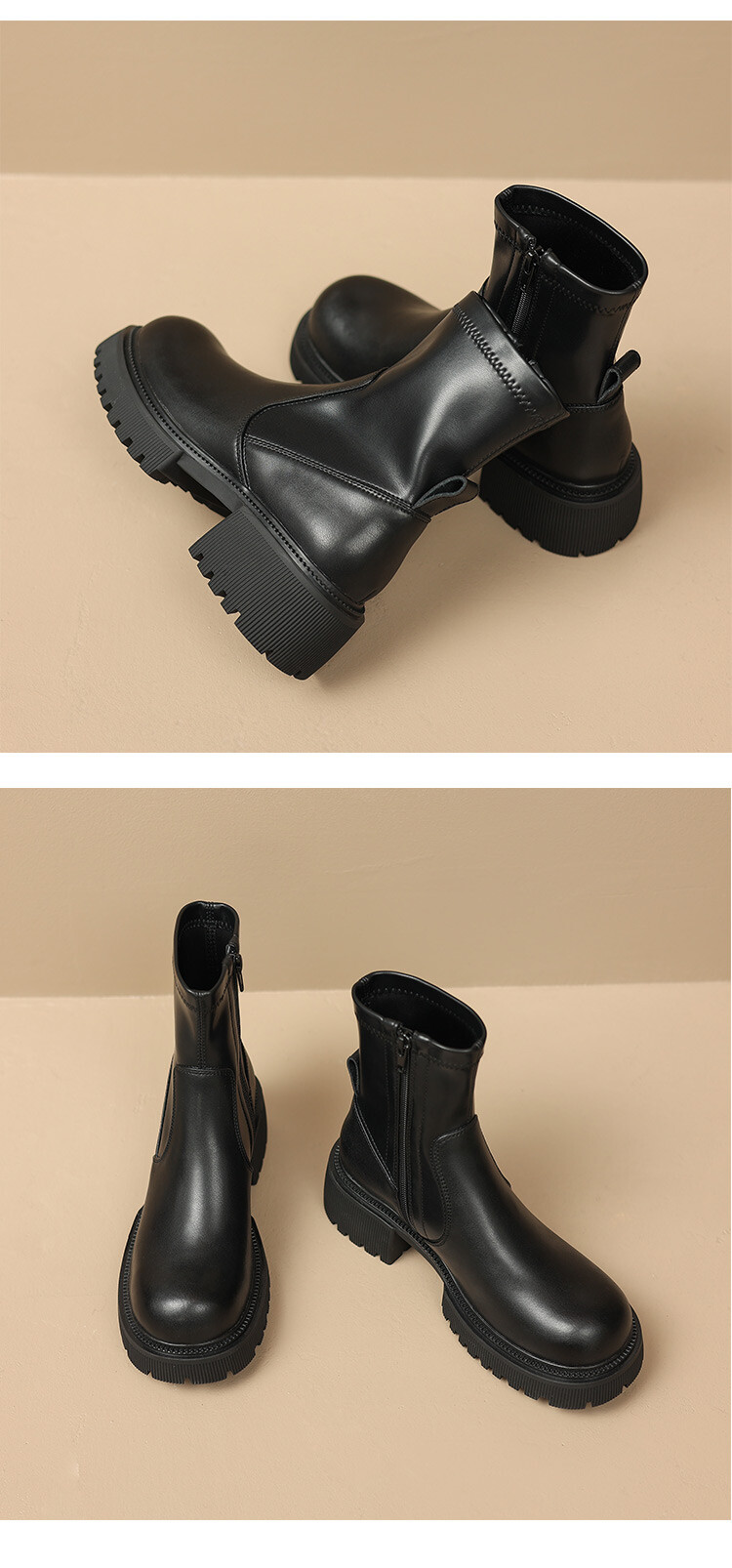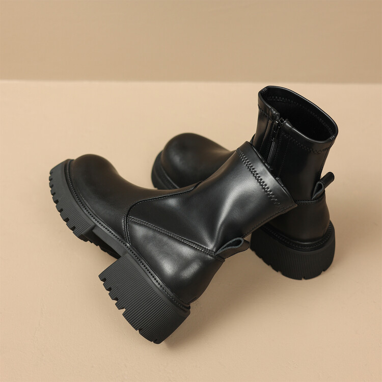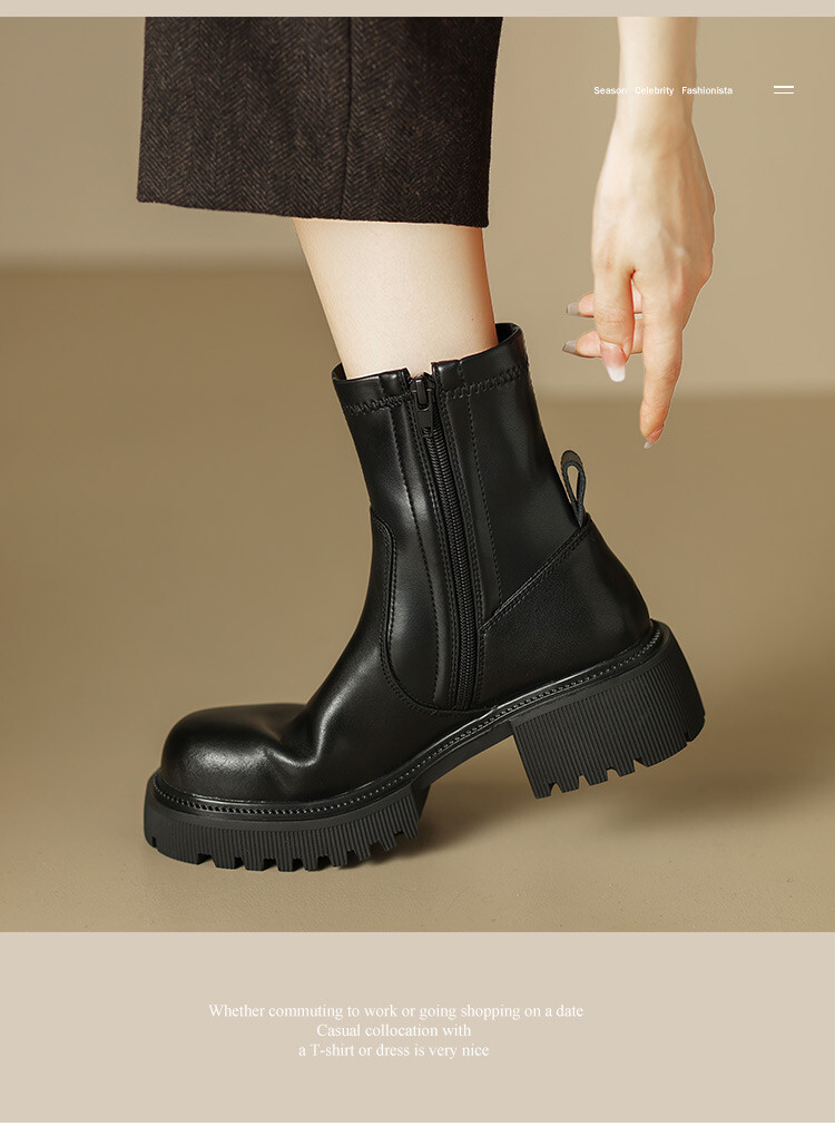 纯色简约,厚底粗跟短筒靴XDD-1819F
