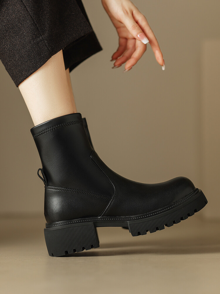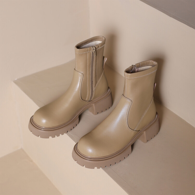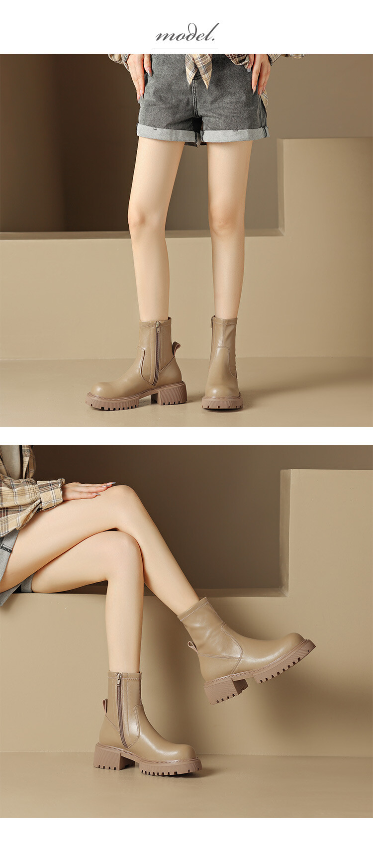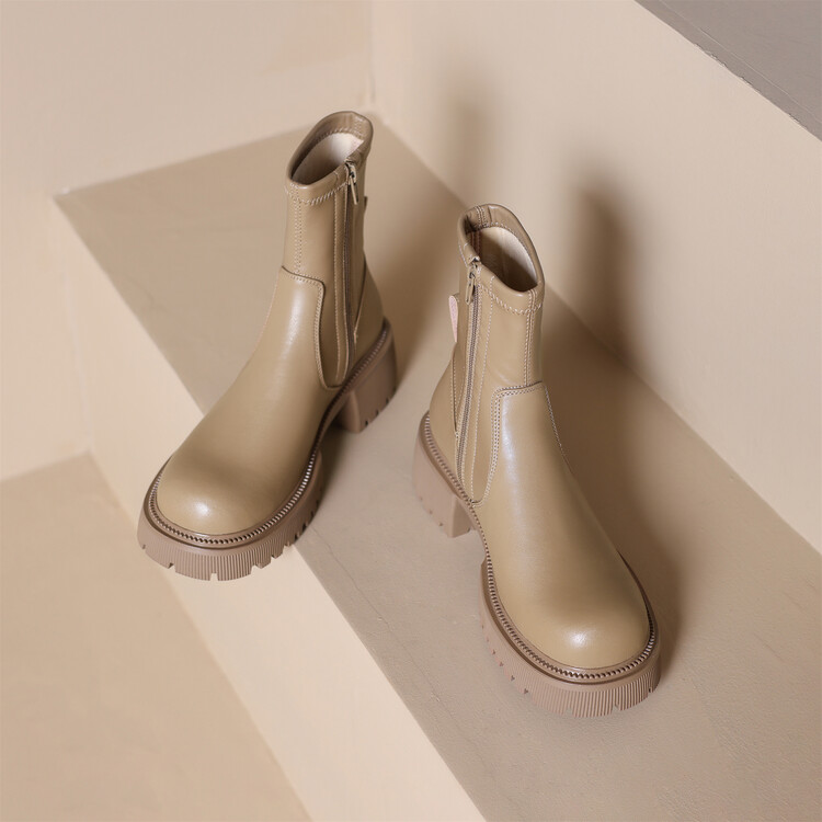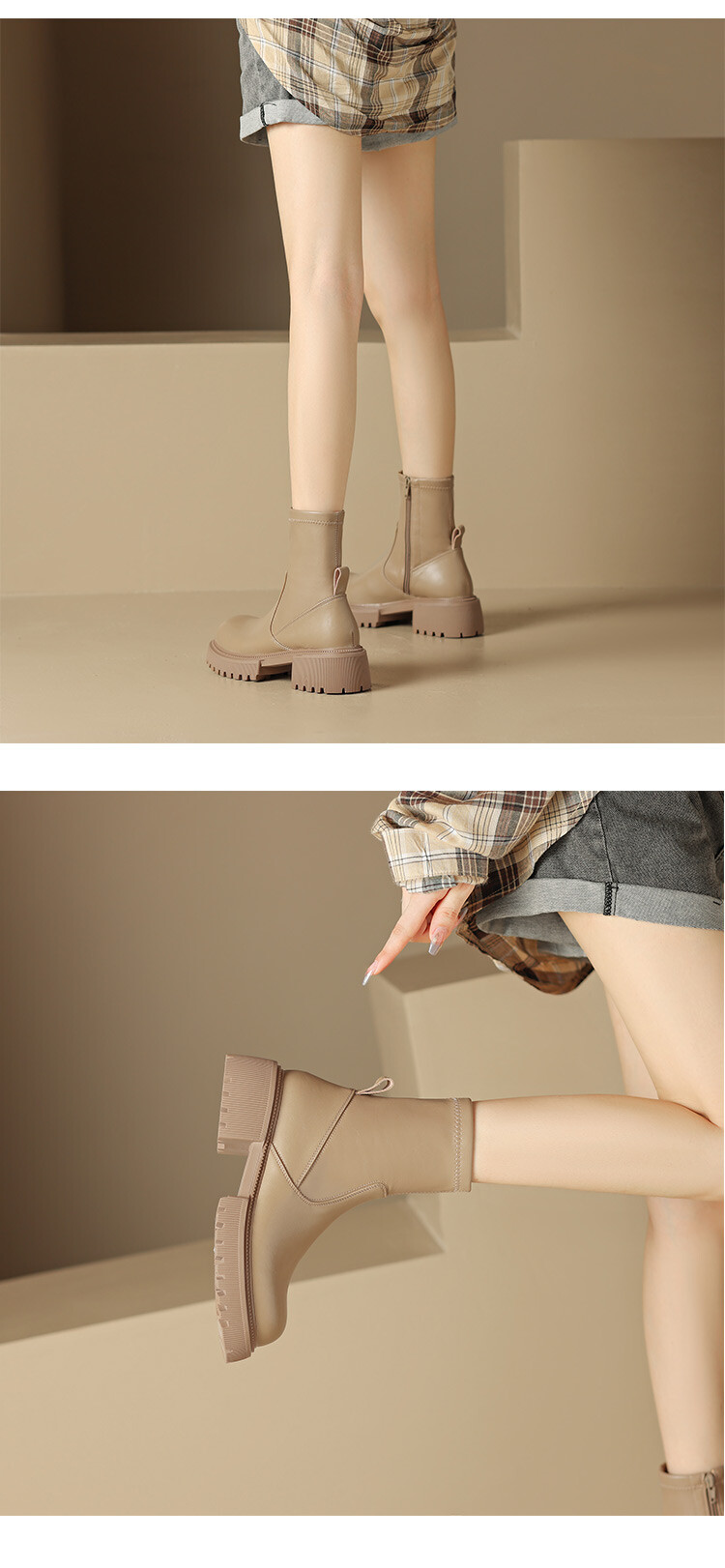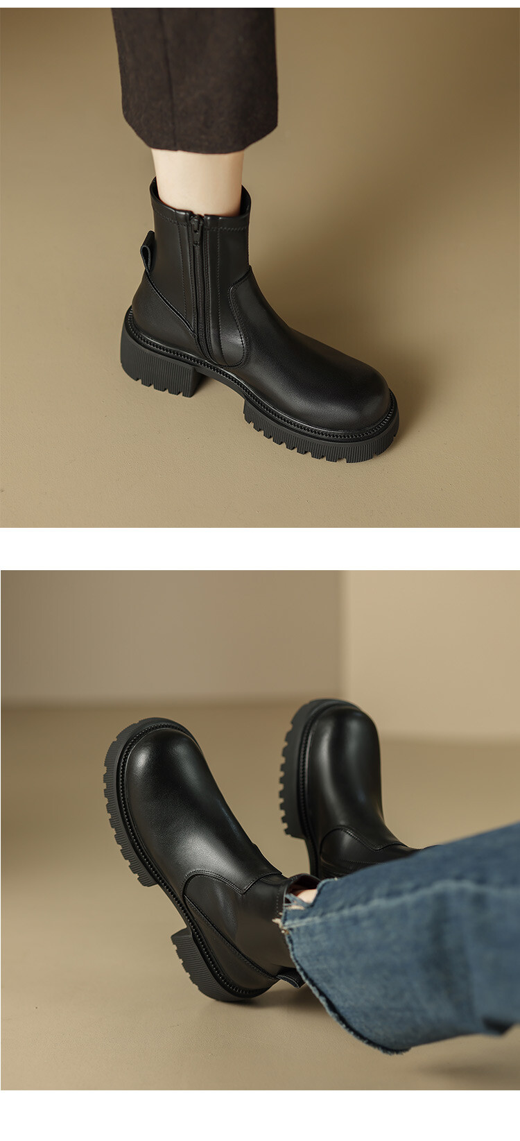 纯色简约,厚底粗跟短筒靴XDD-1819F