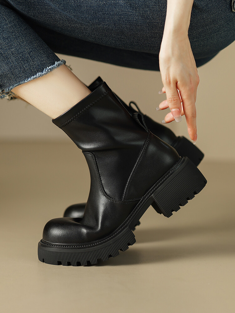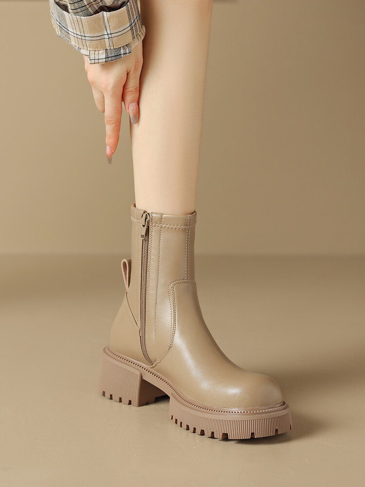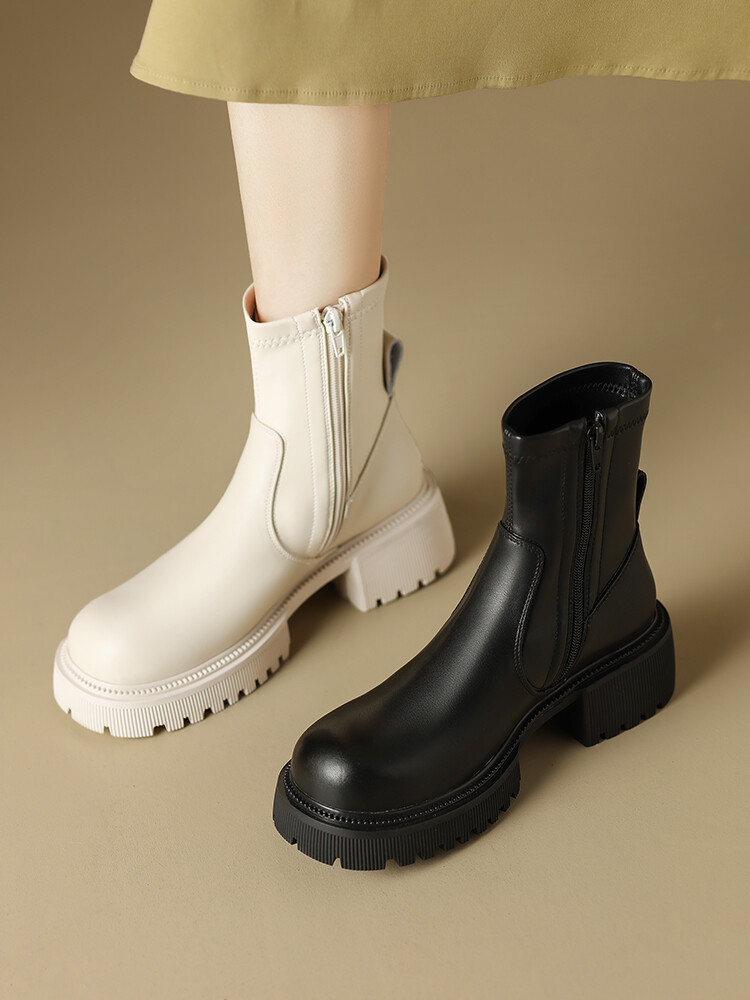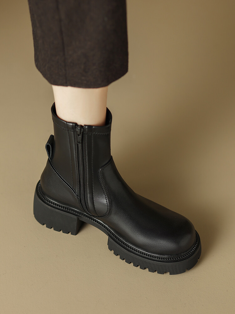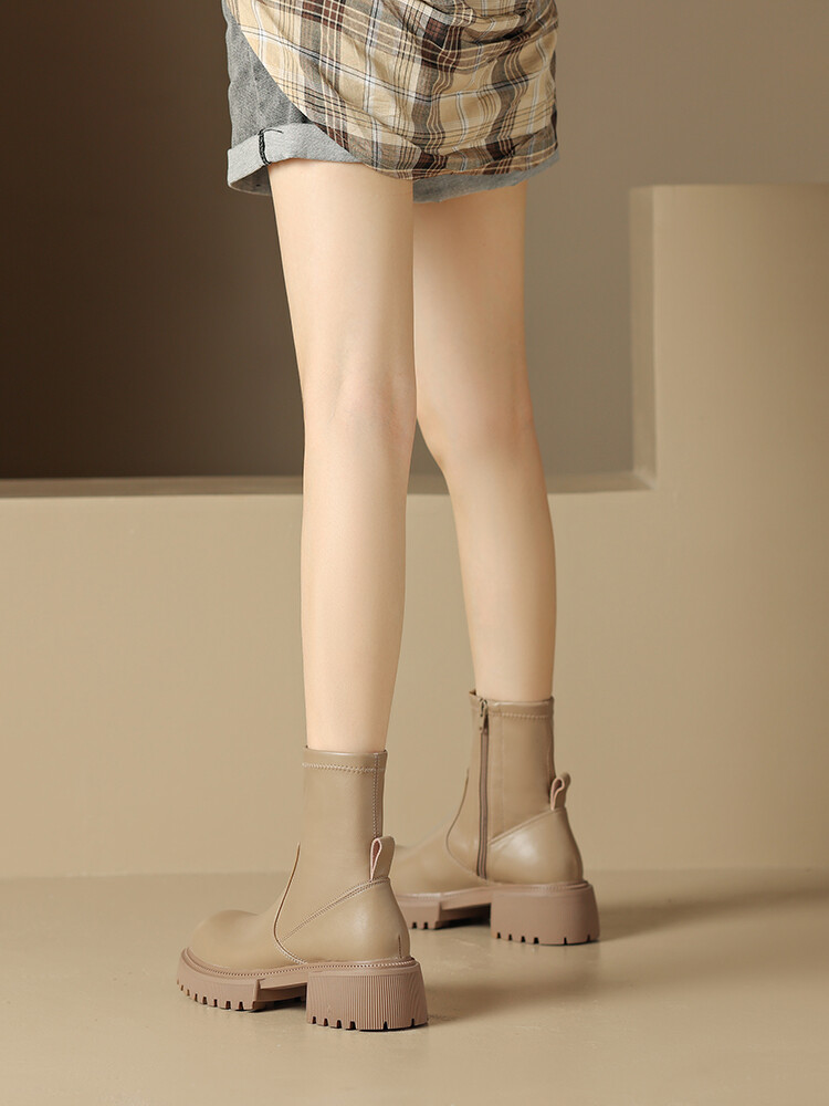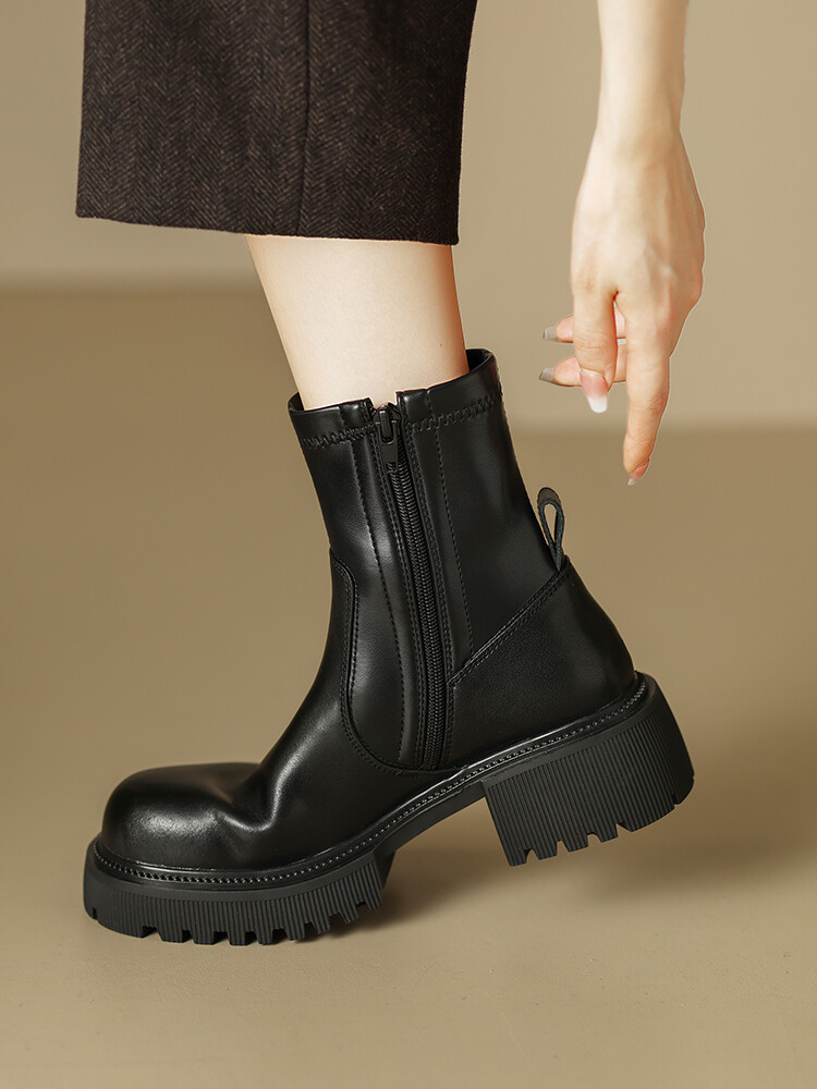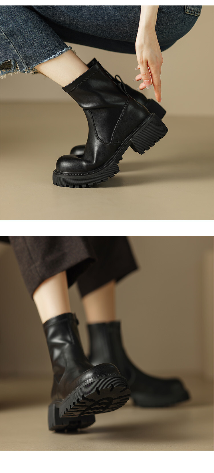 纯色简约,厚底粗跟短筒靴XDD-1819F