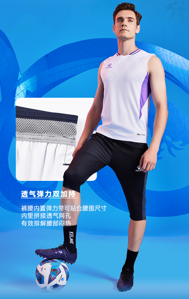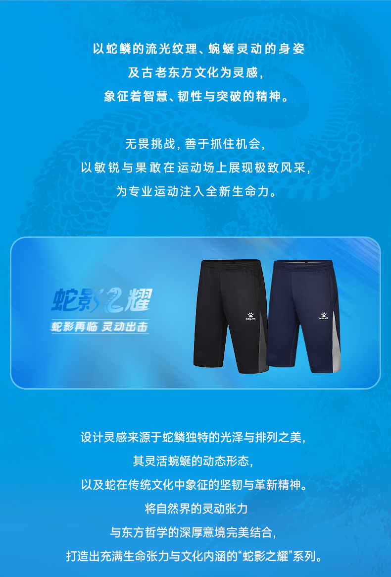 卡尔美2025新款蛇影系列男士针织七分裤