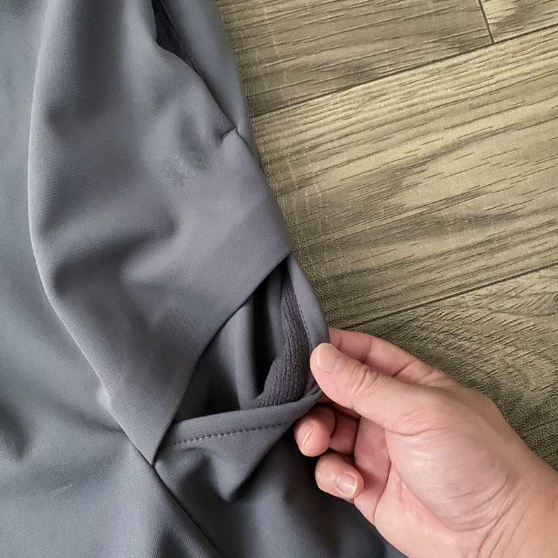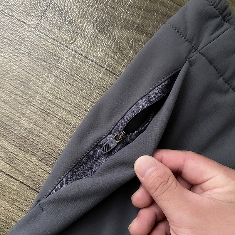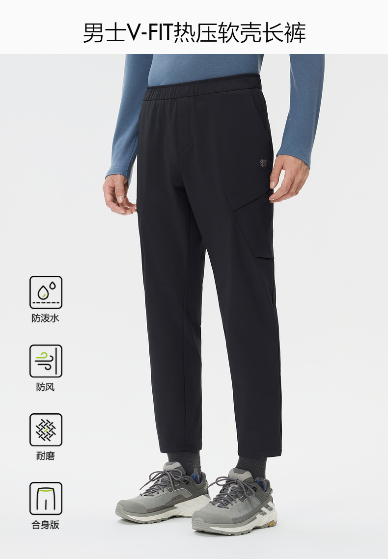 大身采用锦纶和氨纶混纺加绒面料,具有防风、防泼水、保暖、耐磨、透湿及防污功能全松紧腰头设计,穿脱方便快捷,结合抽绳设计更加贴合身形,运动过程中稳固舒适双侧大腿口袋配有袋盖,便于户外活动时单手取放物品