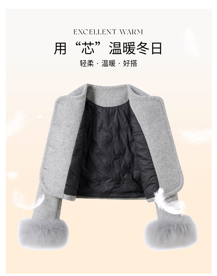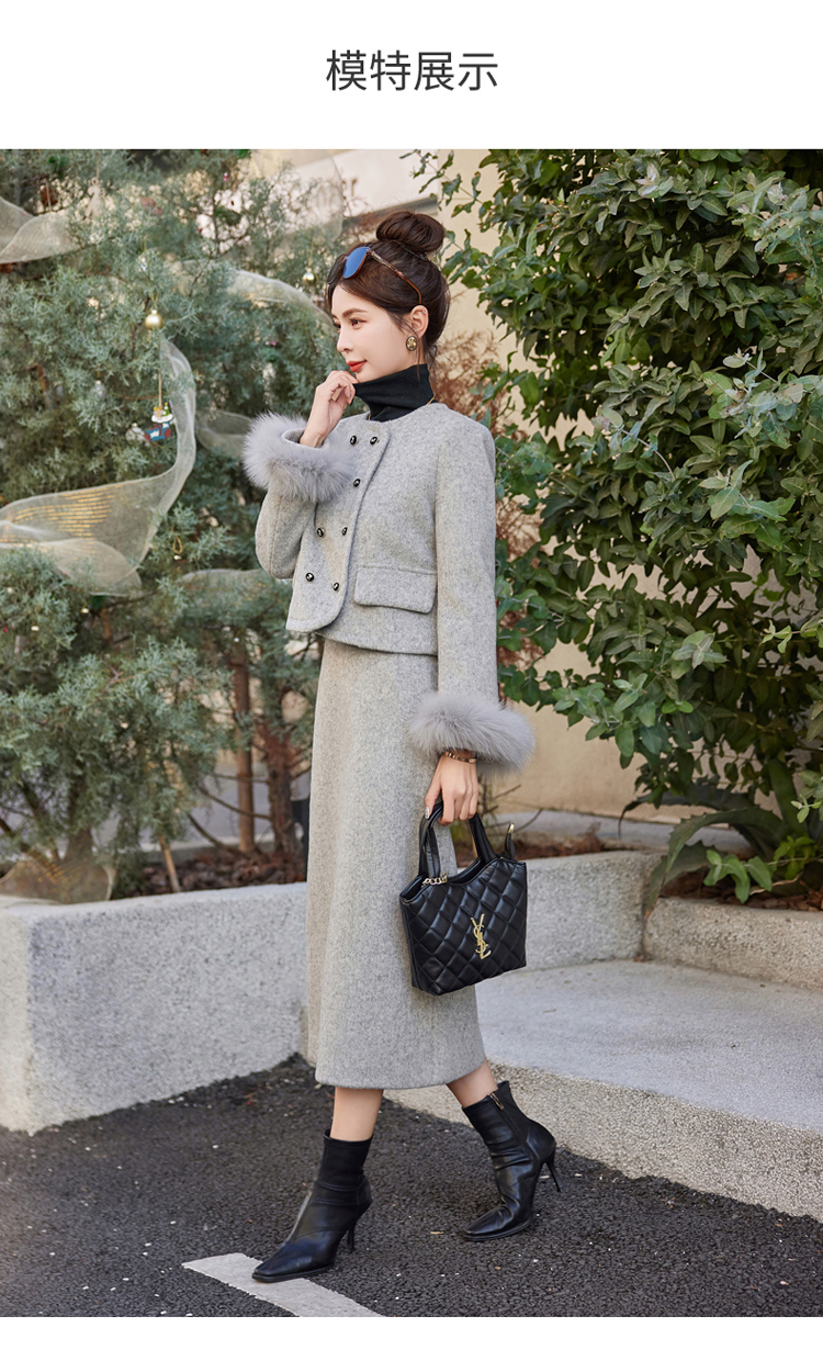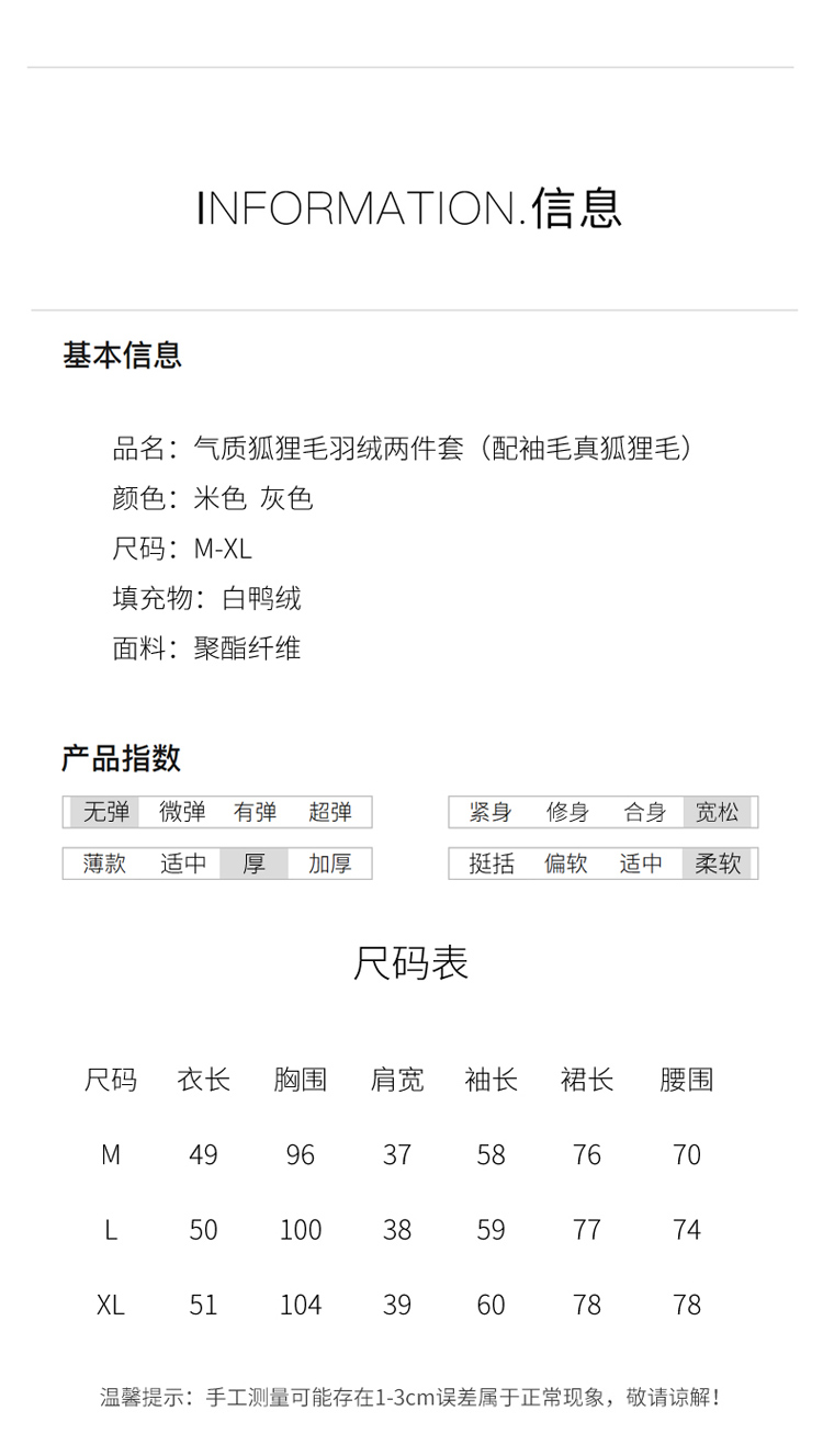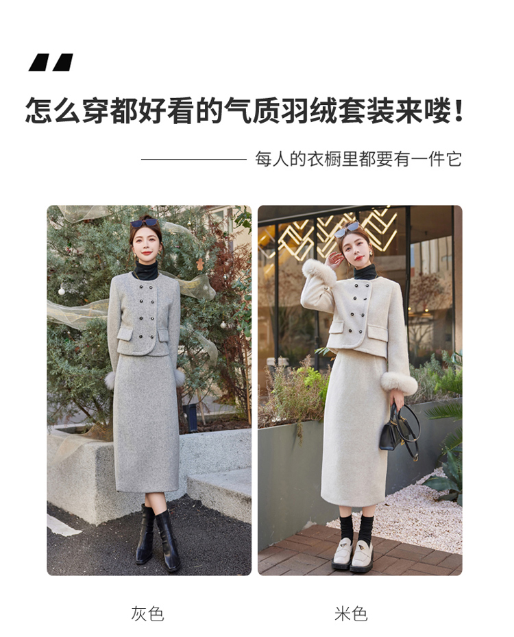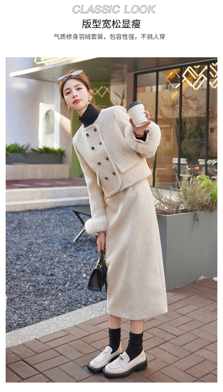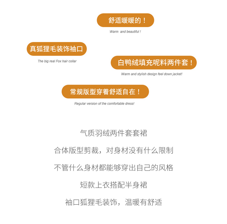 冬装新款,白鸭绒真狐狸毛羽绒服显瘦小香套装HR-YJLY9031