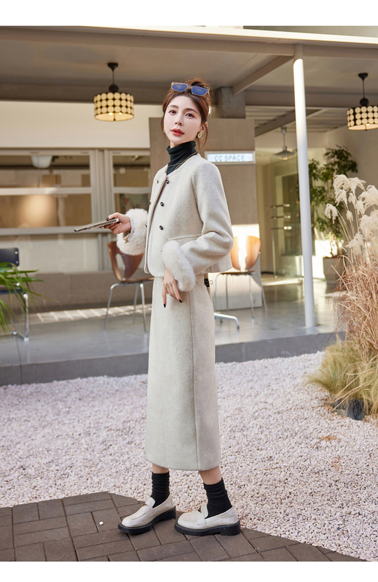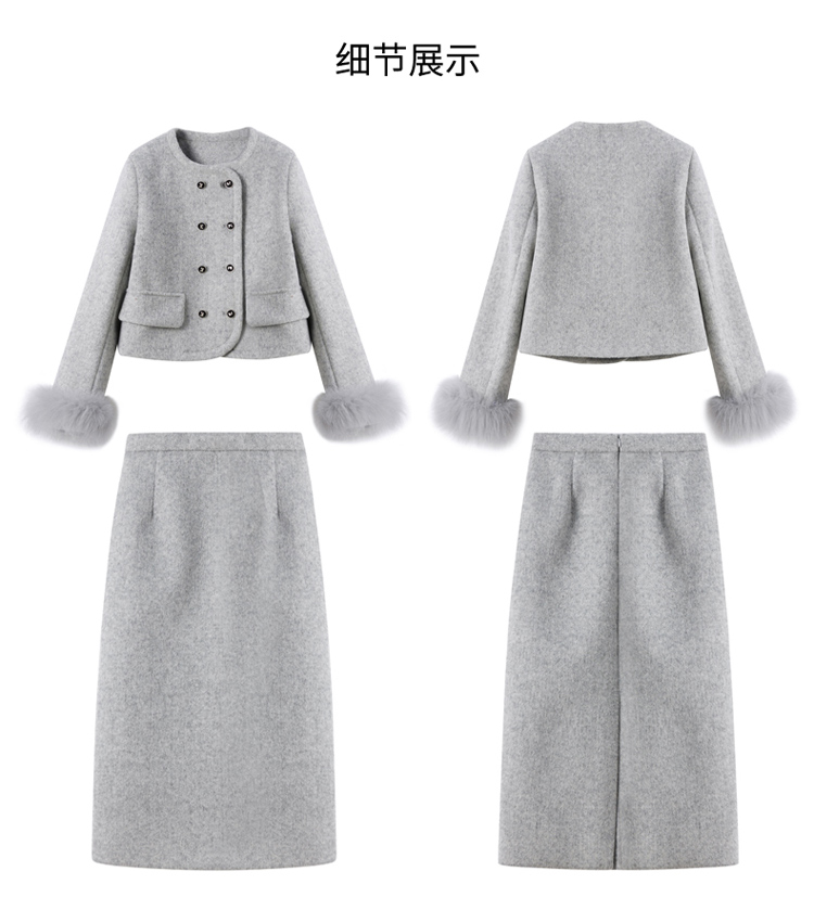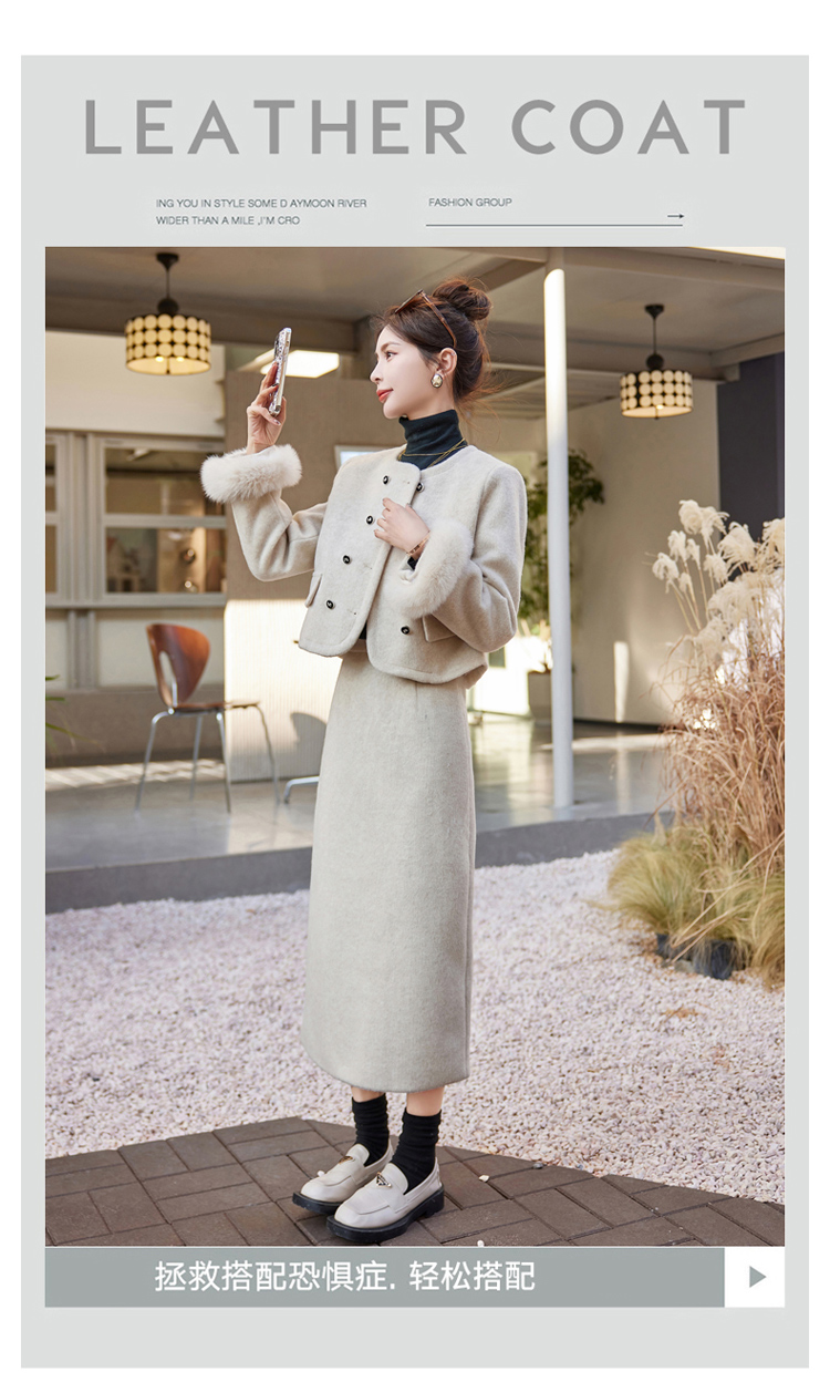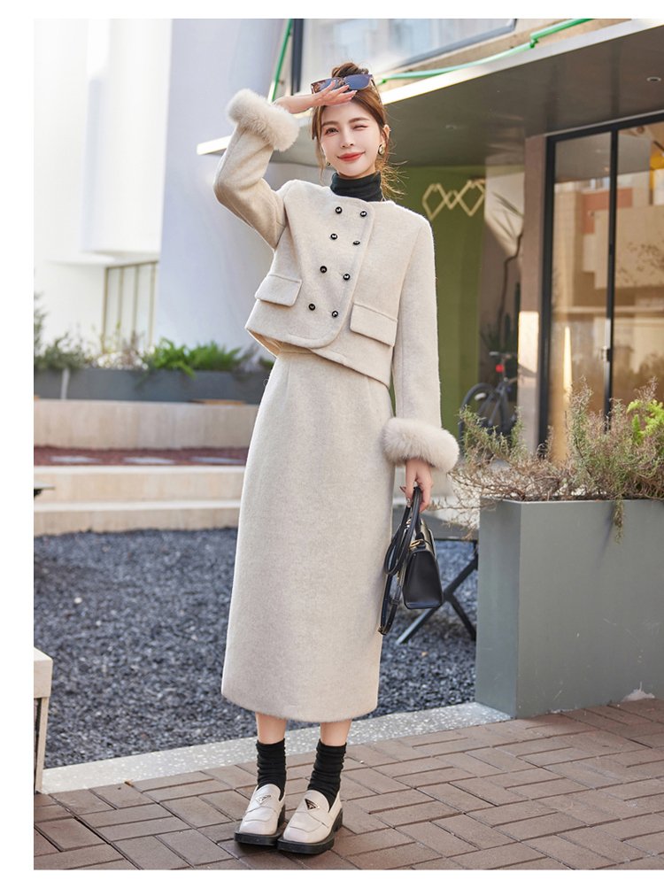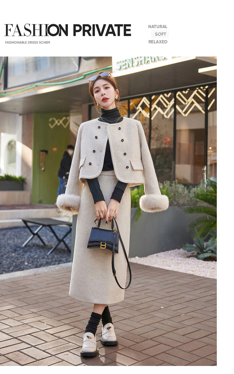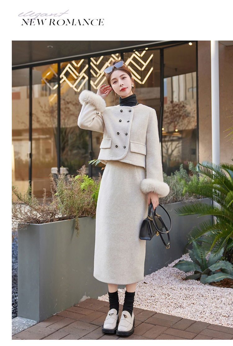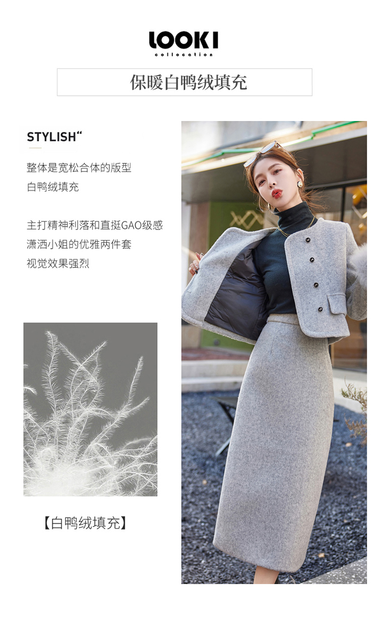 冬装新款,白鸭绒真狐狸毛羽绒服显瘦小香套装HR-YJLY9031