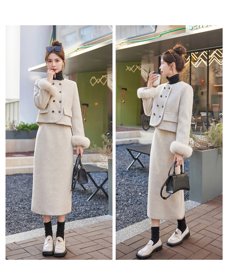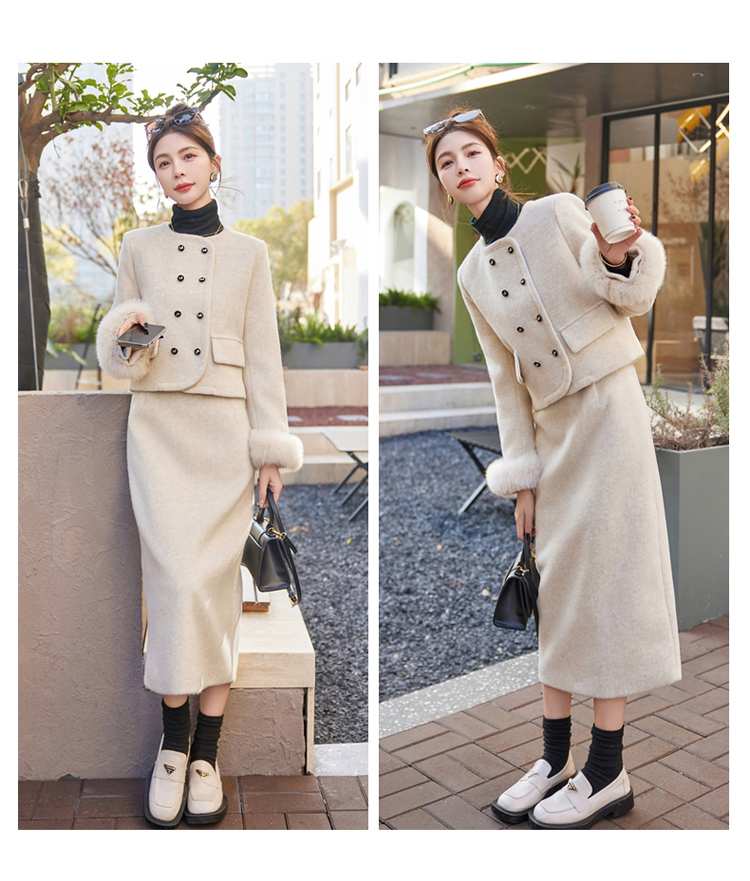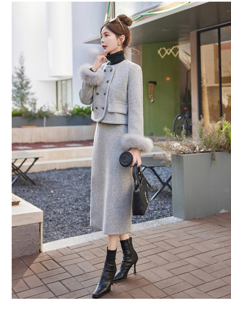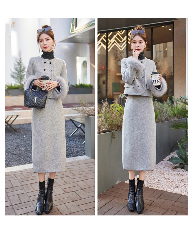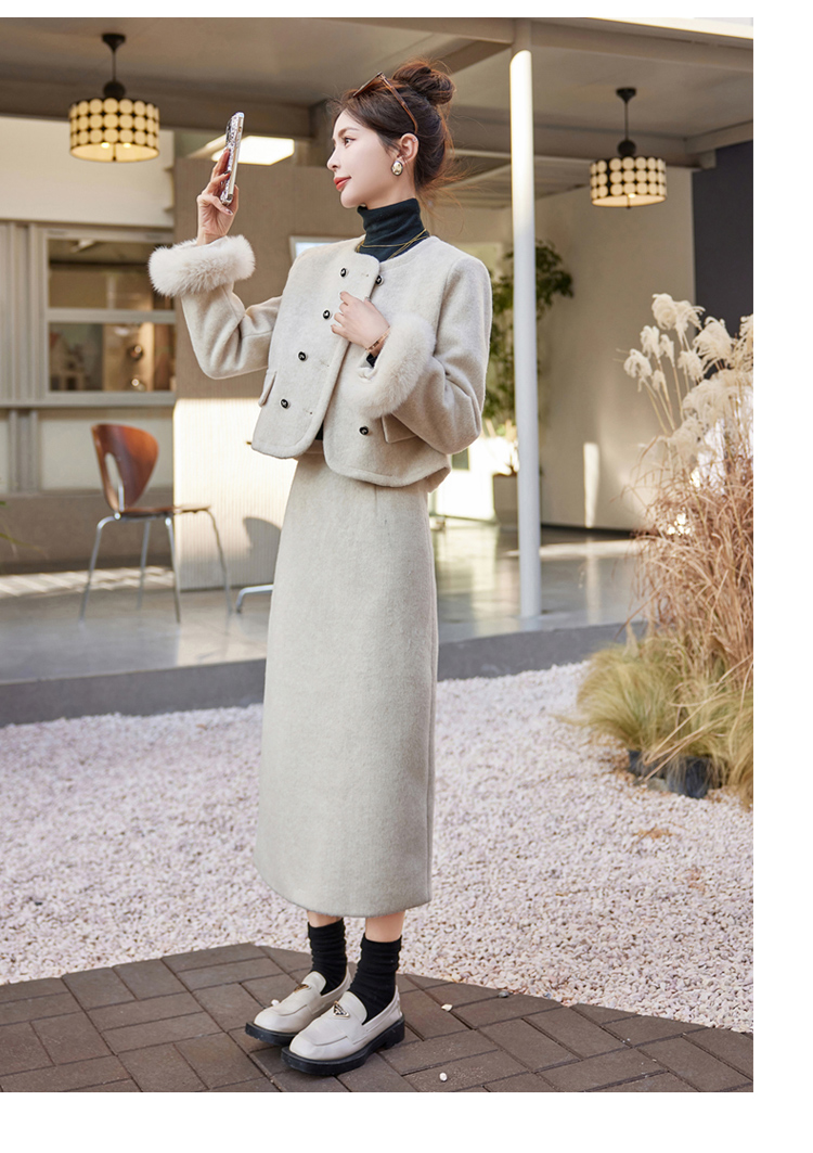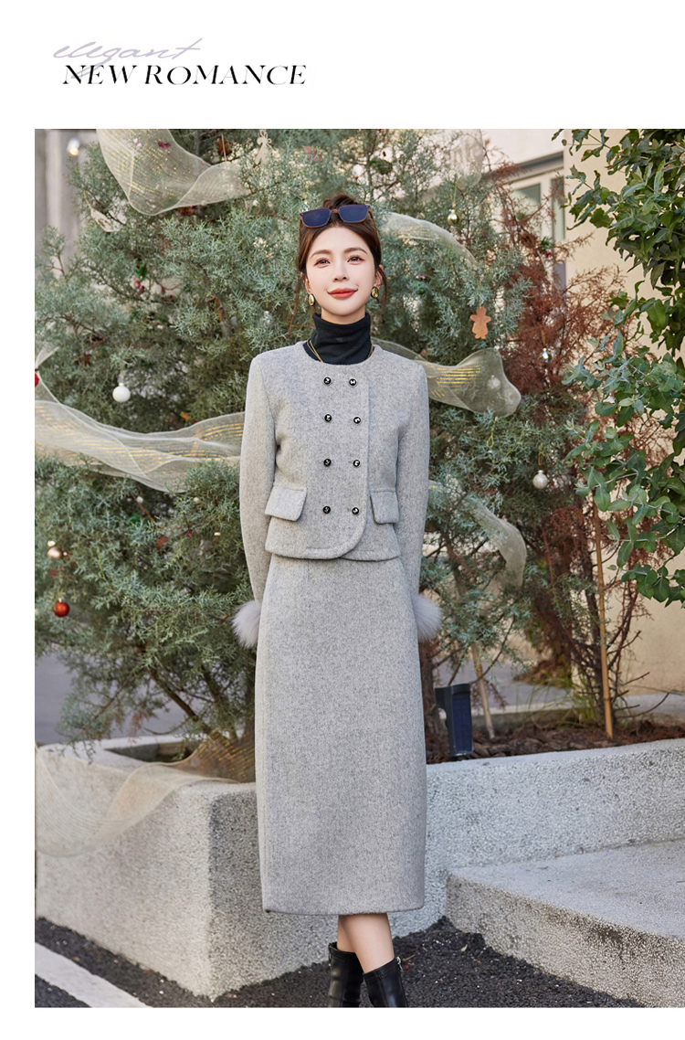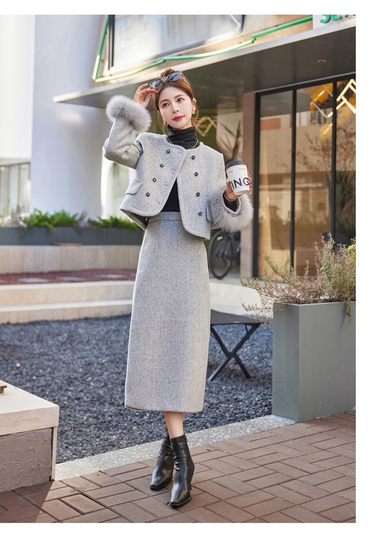 冬装新款,白鸭绒真狐狸毛羽绒服显瘦小香套装HR-YJLY9031