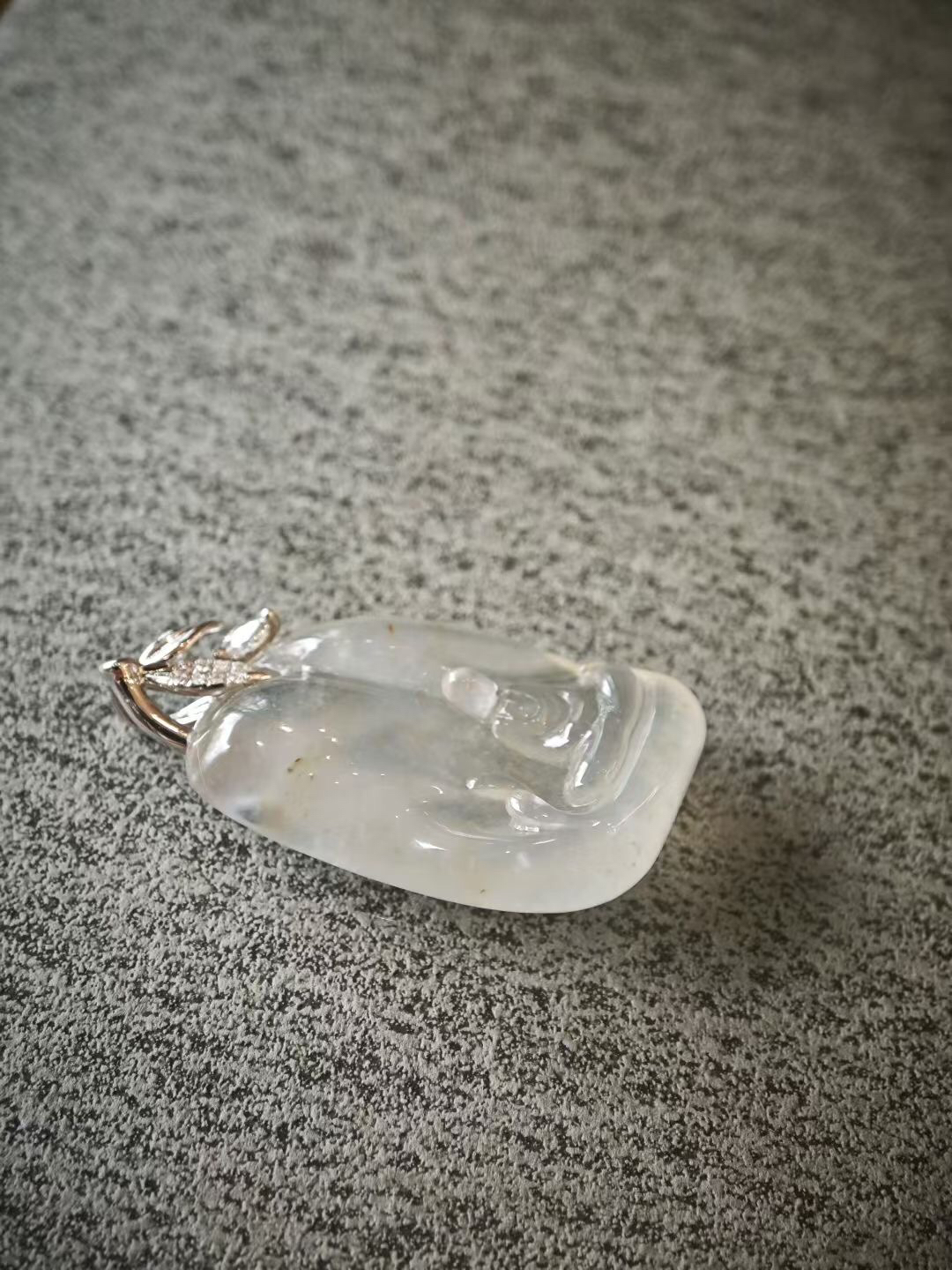 高冰洒金悟道,厚实完美,很有味道,也是好种的一块料子,镶嵌竹叶金钻小扣,很有美感。