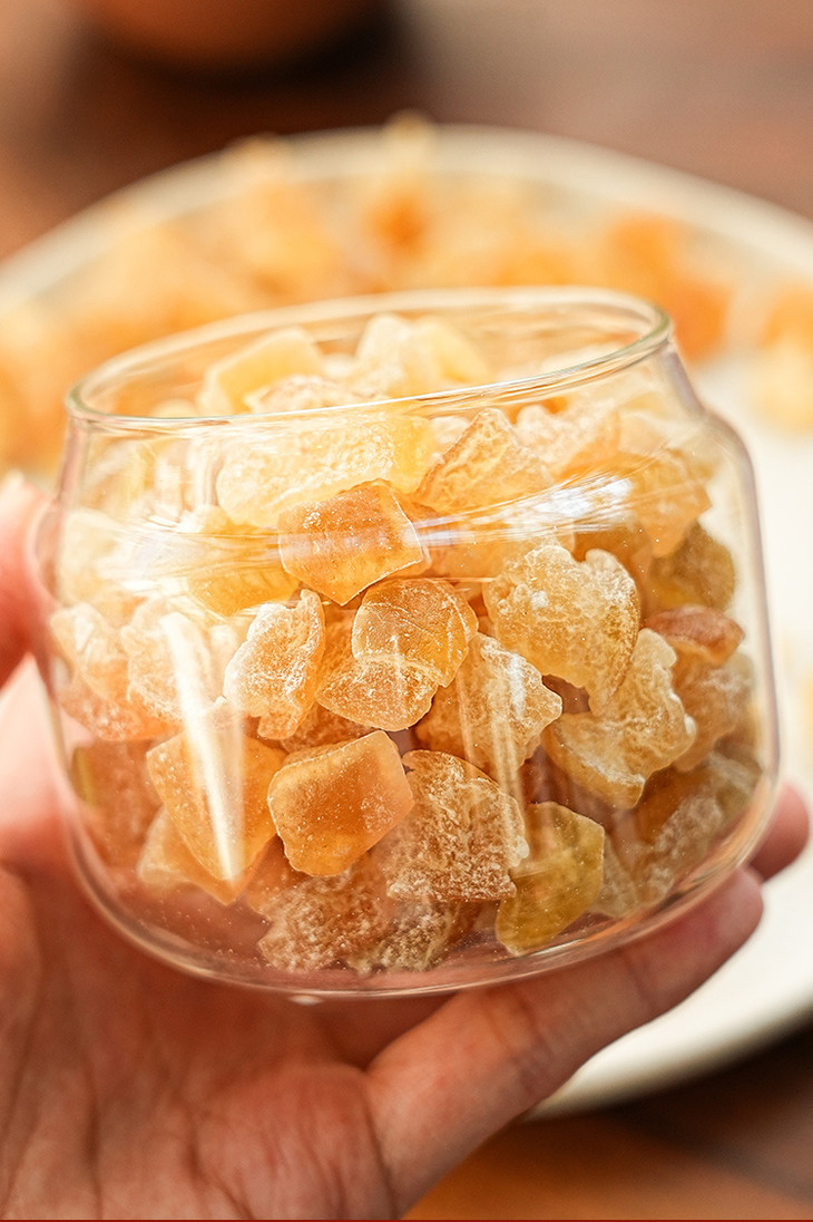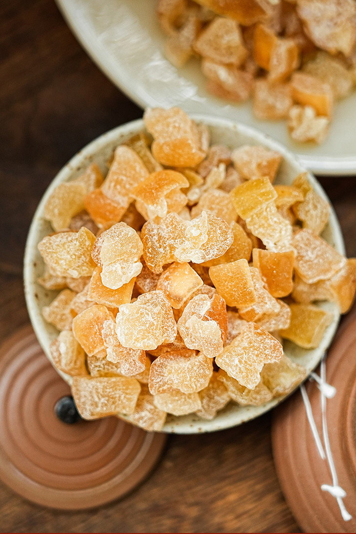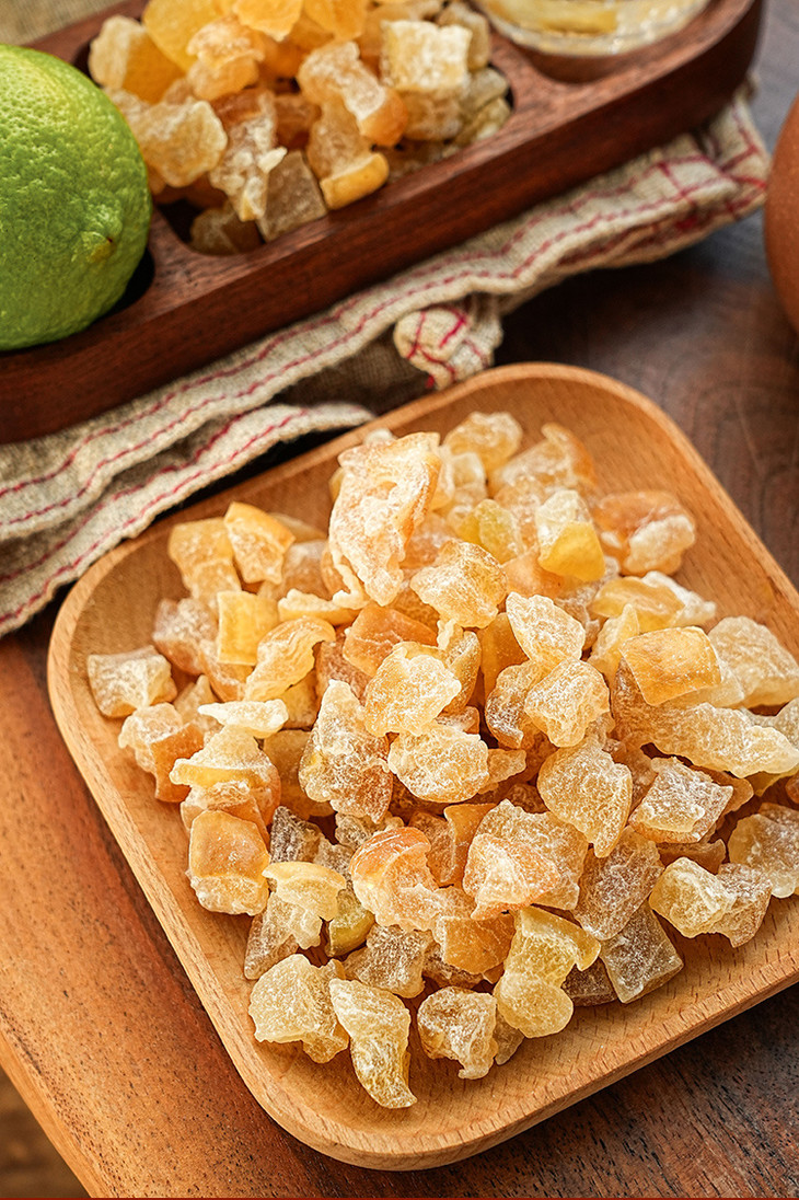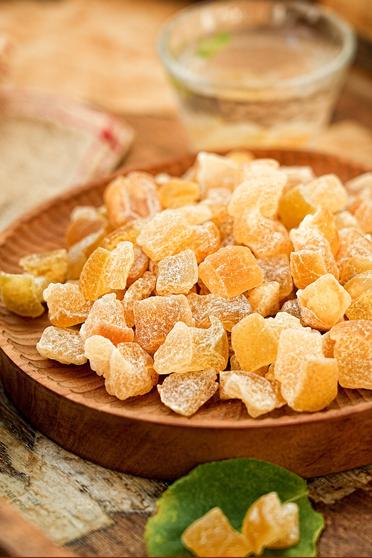 市场上柚子干鱼龙混杂,有的浸糖过度齁甜,又加了很多香精色素,失去了柚子本真的味道,我们做减法,配料表干净!手工切,就是淡淡的本真的柚子香气。