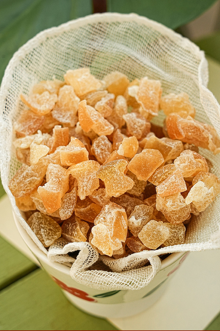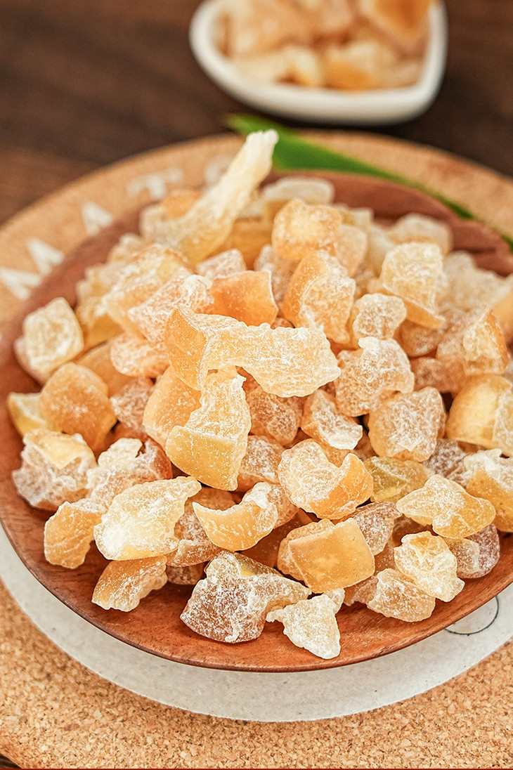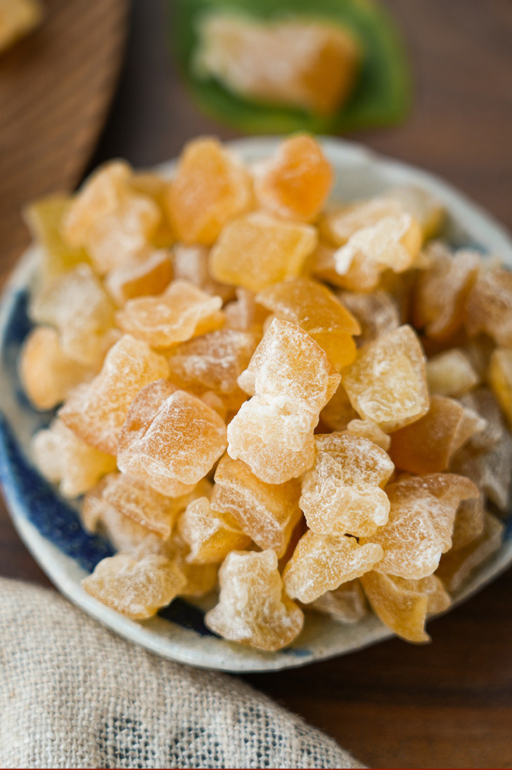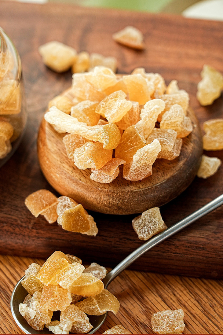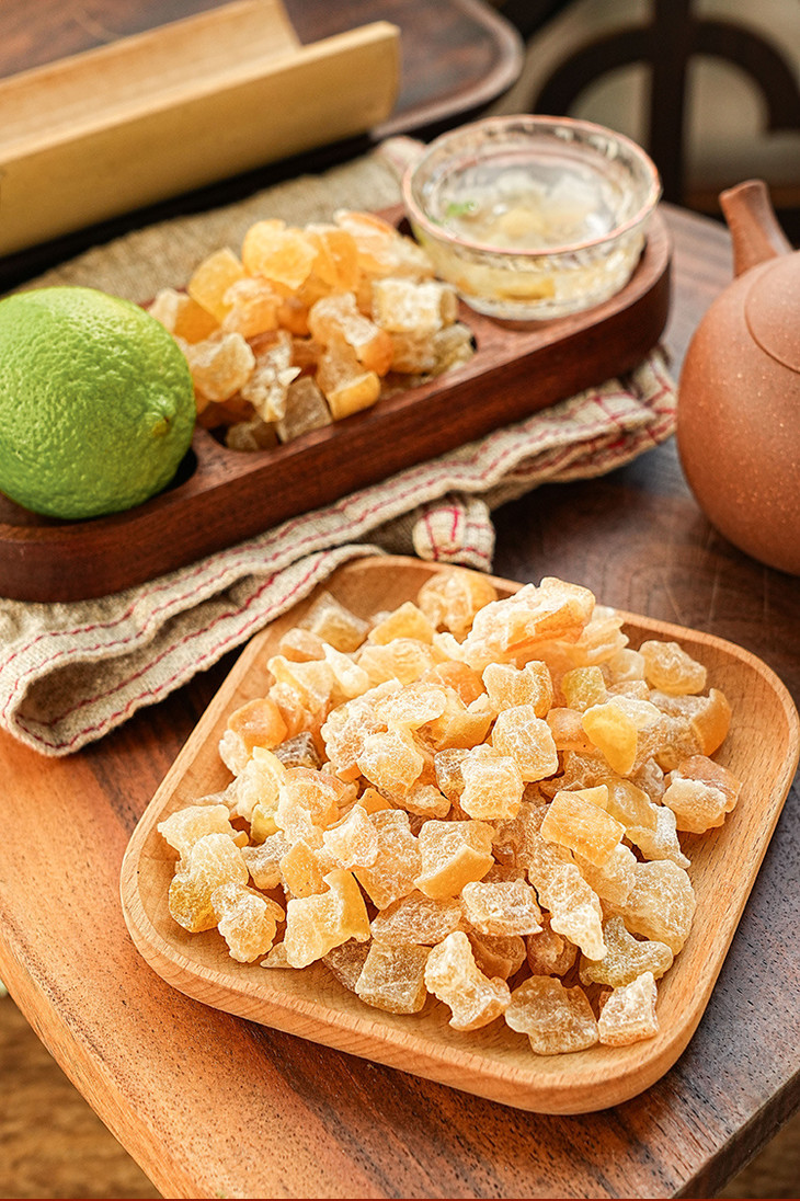 市场上柚子干鱼龙混杂,有的浸糖过度齁甜,又加了很多香精色素,失去了柚子本真的味道,我们做减法,配料表干净!手工切,就是淡淡的本真的柚子香气。