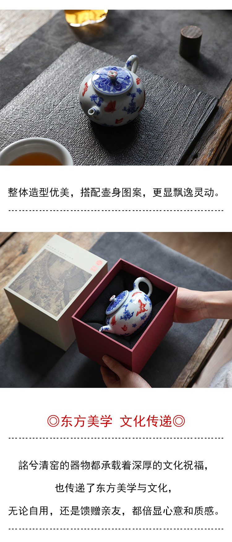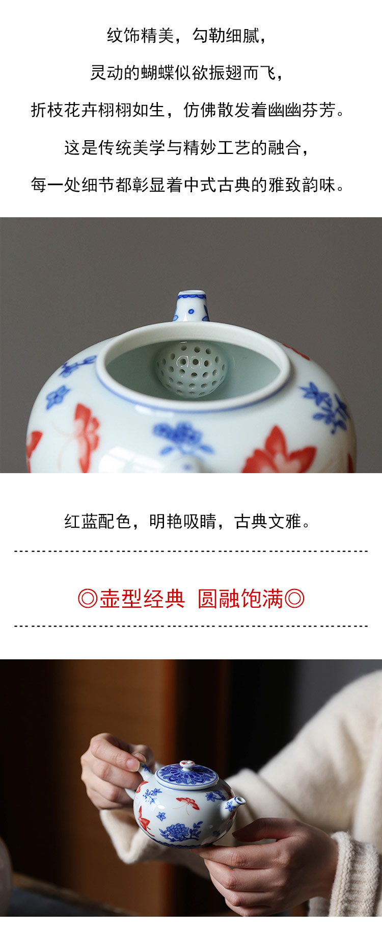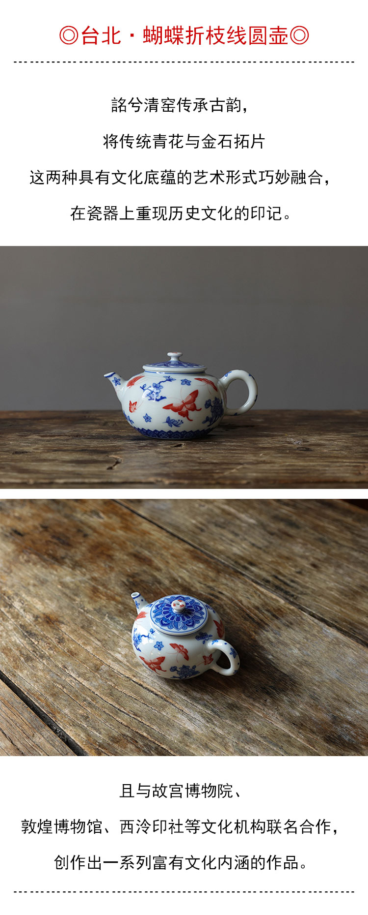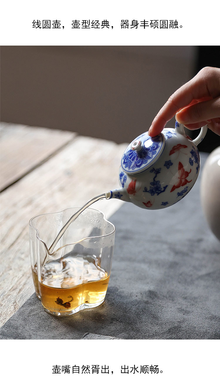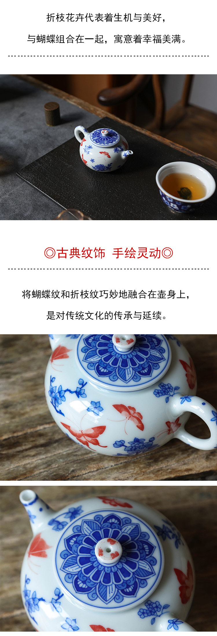 茶香记 台北·蝴蝶折枝线圆壶140ml詺兮清窑陶瓷泡茶壶青花手绘