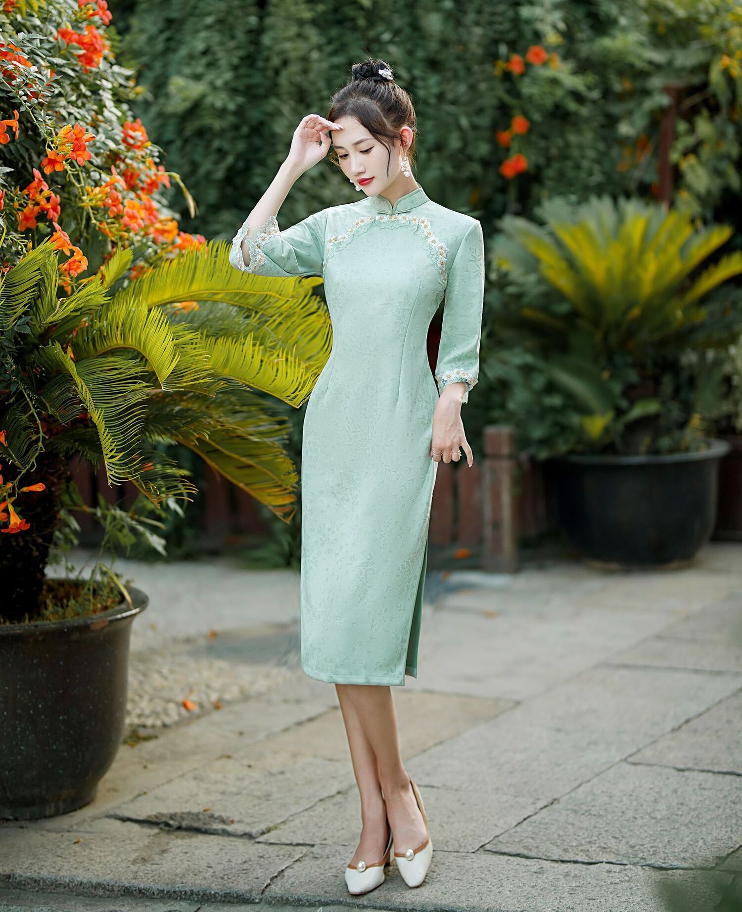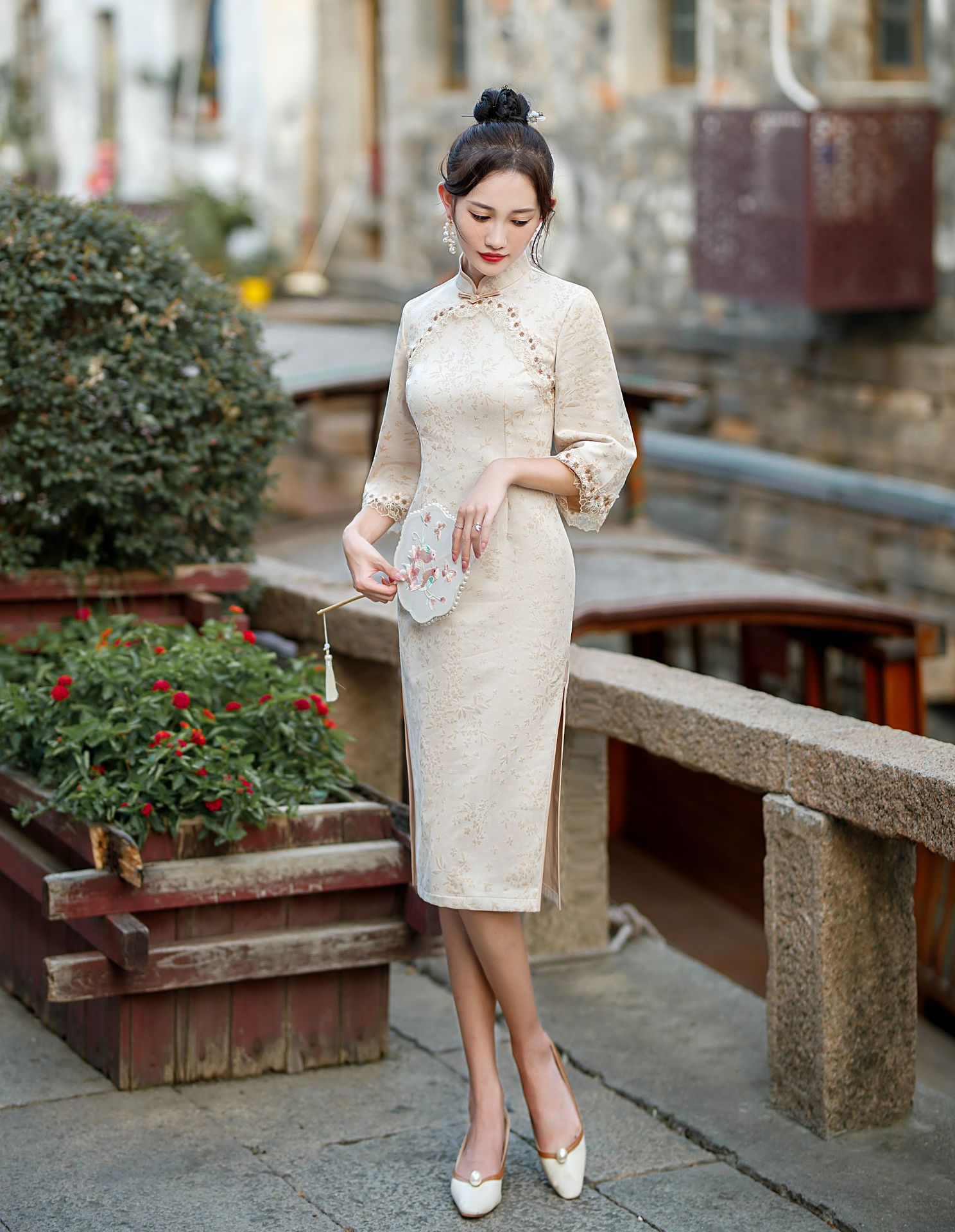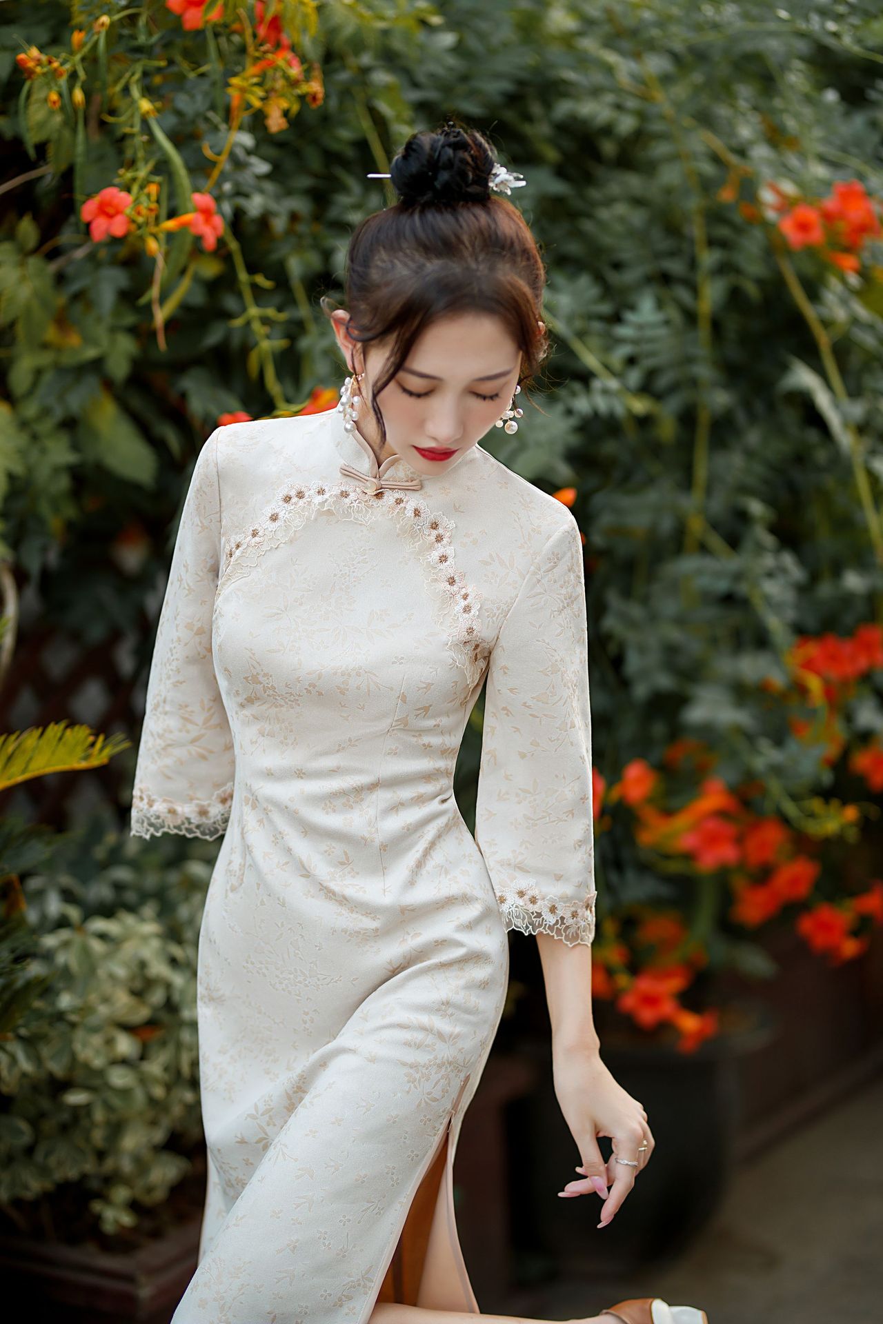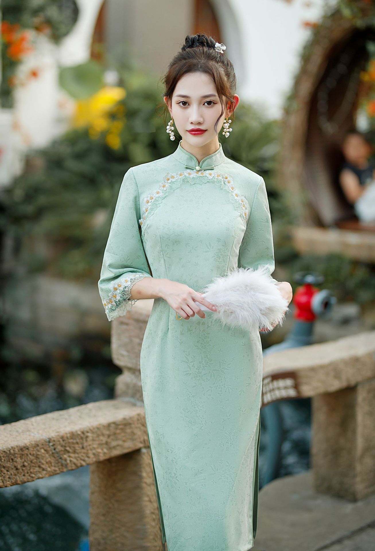 CM-300 年轻款旗袍少女倒大袖2022秋冬新款日常可穿收腰显瘦旗袍连衣裙