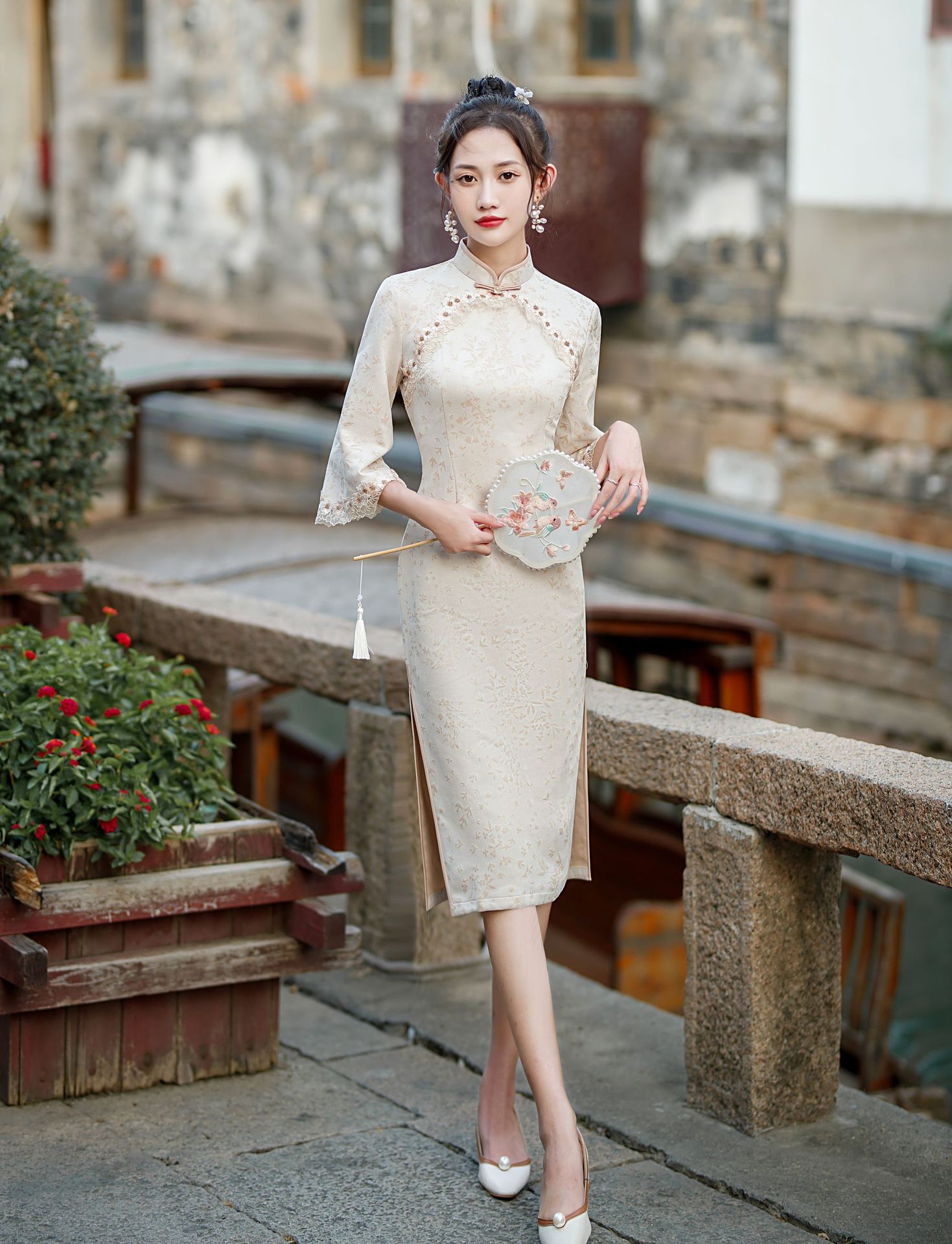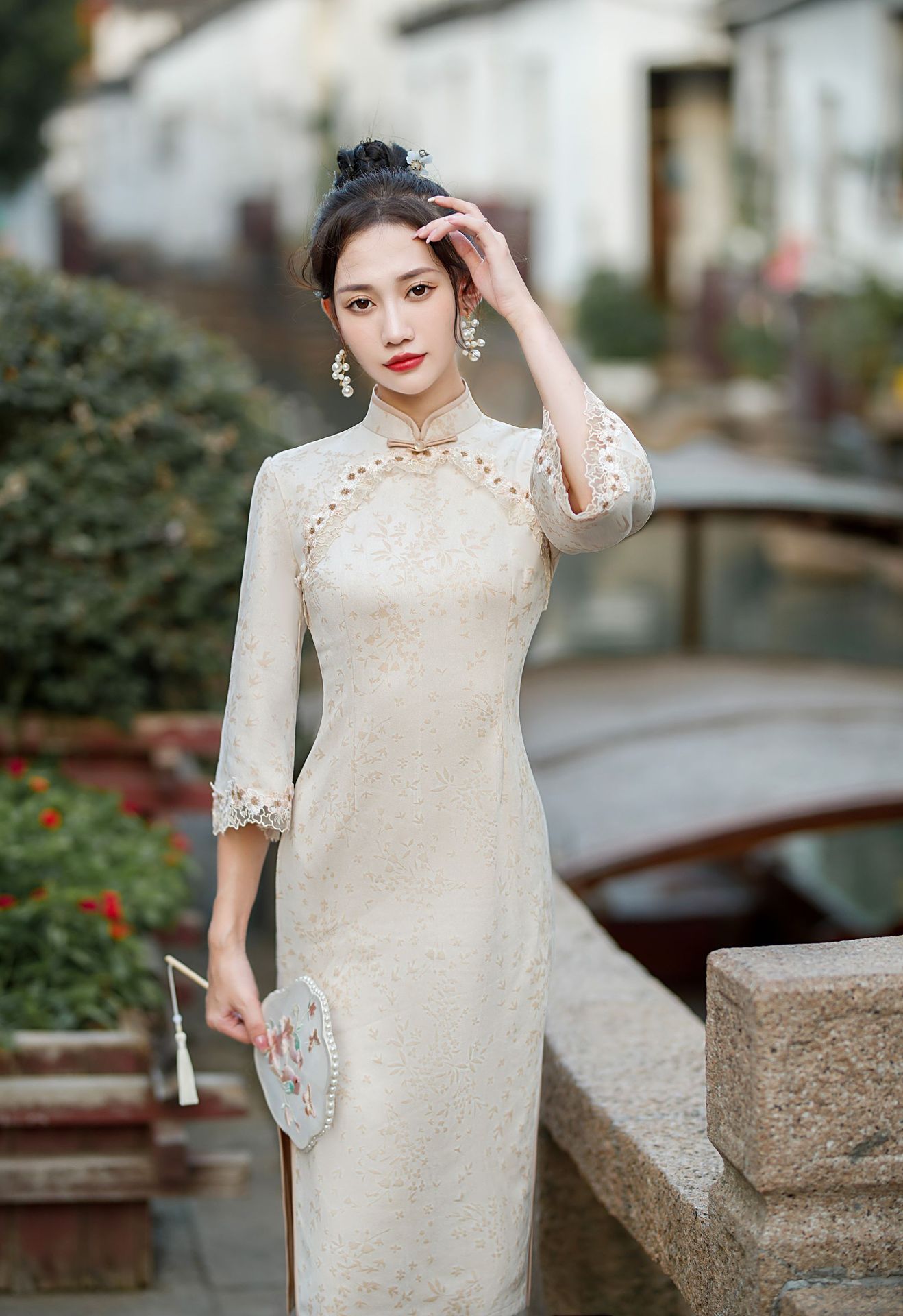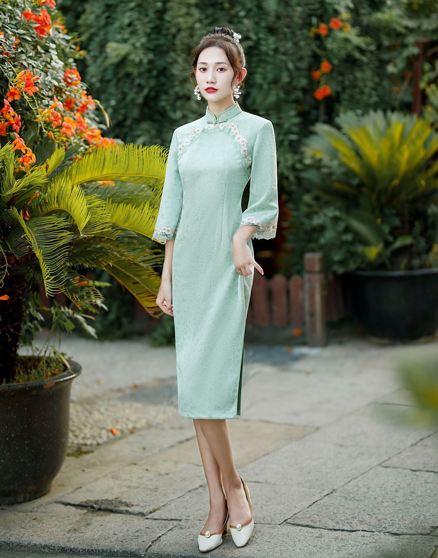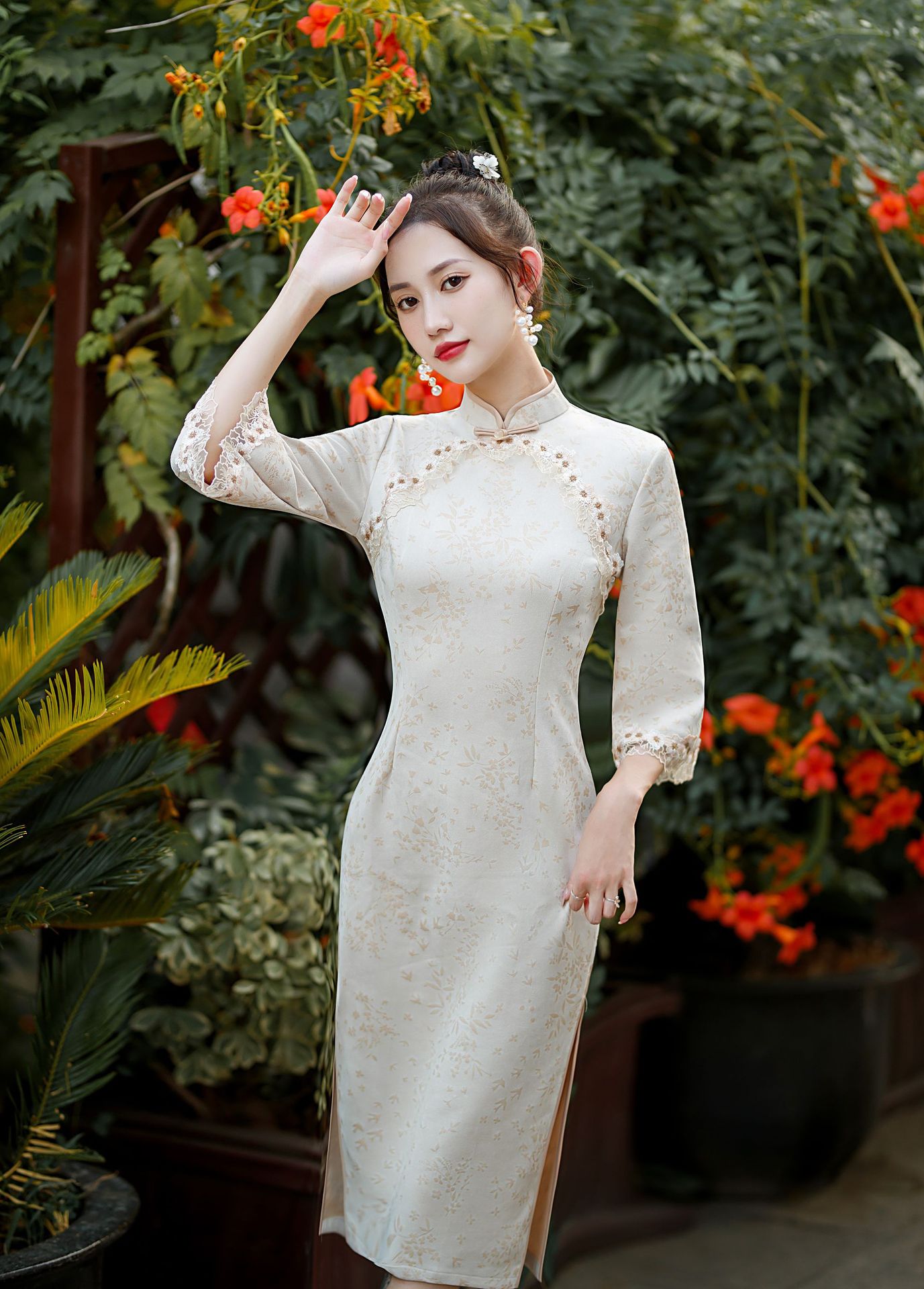 CM-300 年轻款旗袍少女倒大袖2022秋冬新款日常可穿收腰显瘦旗袍连衣裙