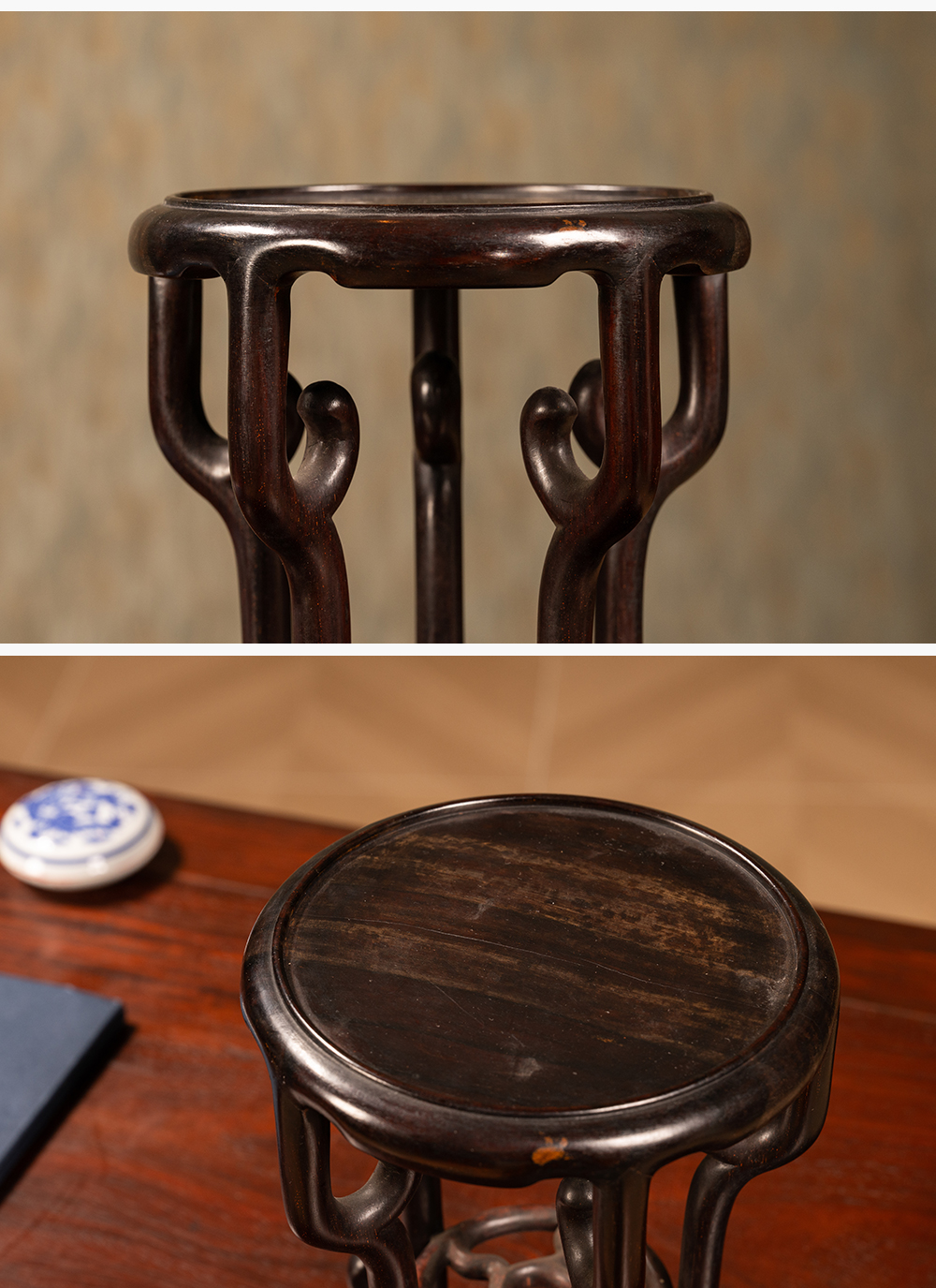 清 黄花梨镶竹丝编四抹门亮格柜摆件