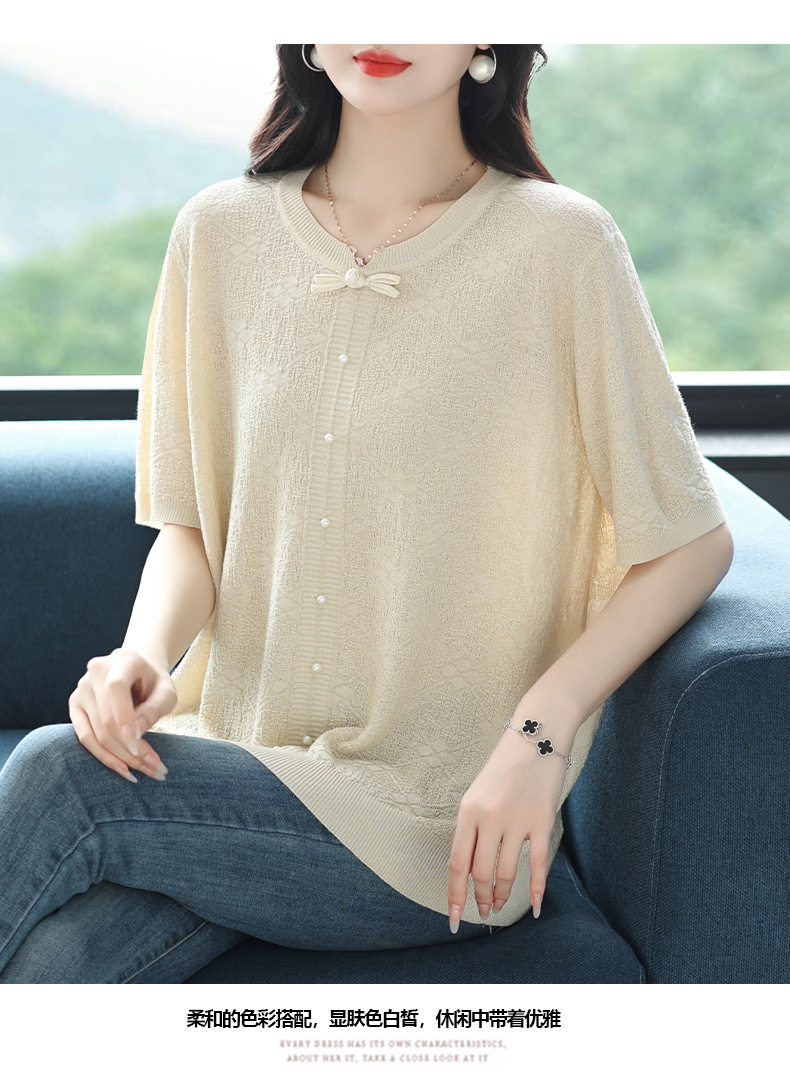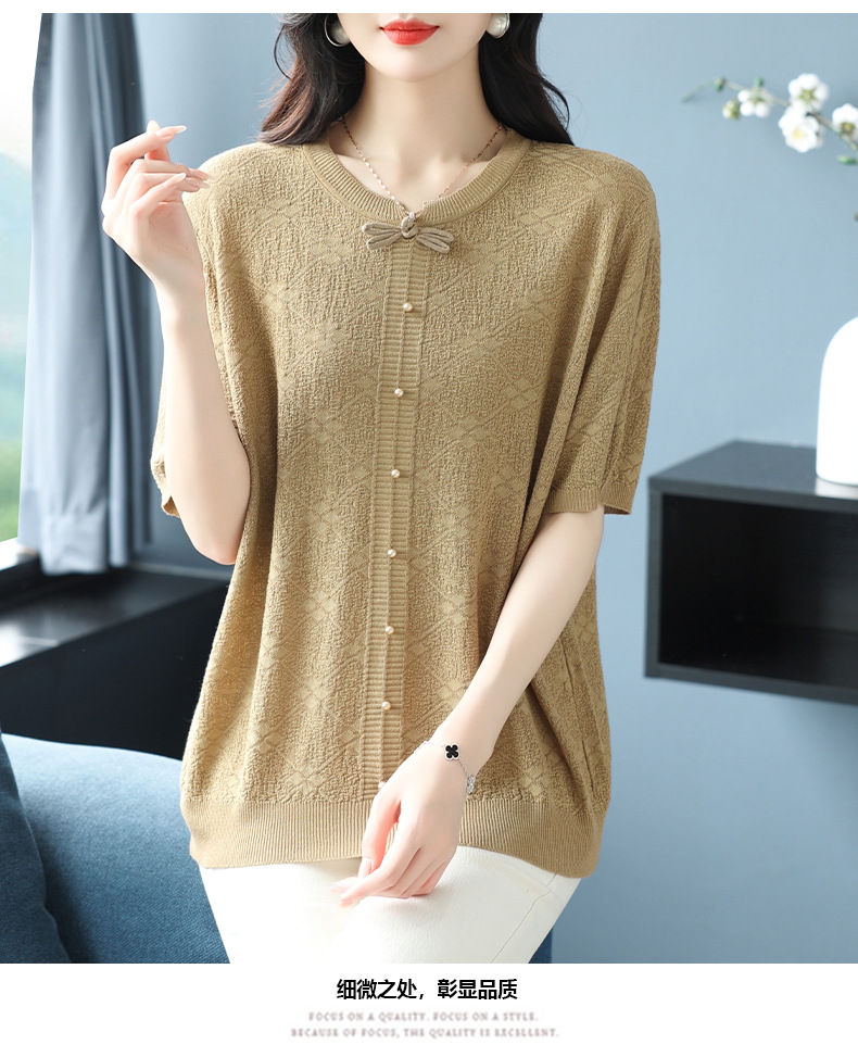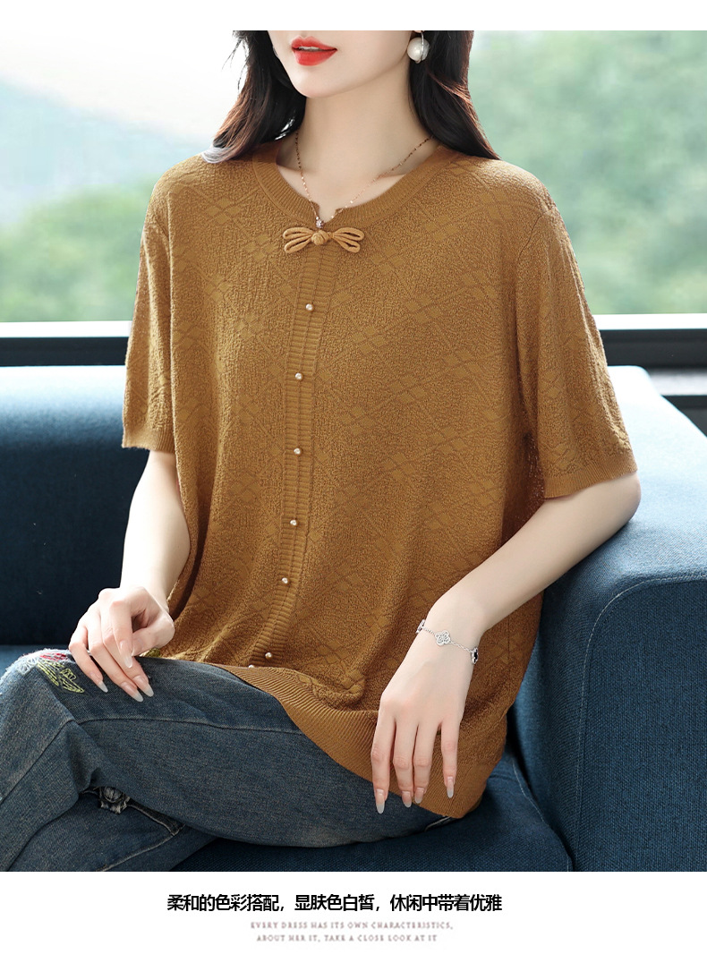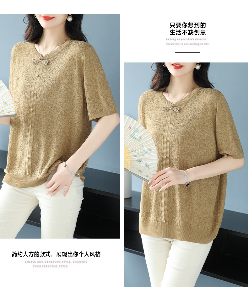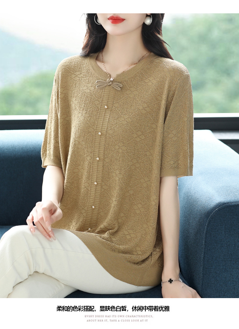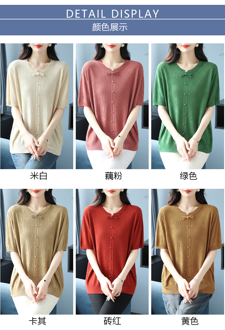 CC43-1250-138短袖t恤夏季V领宽松显瘦冰丝针织衫2025年新款T洋气上衣薄款女装