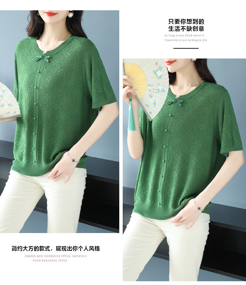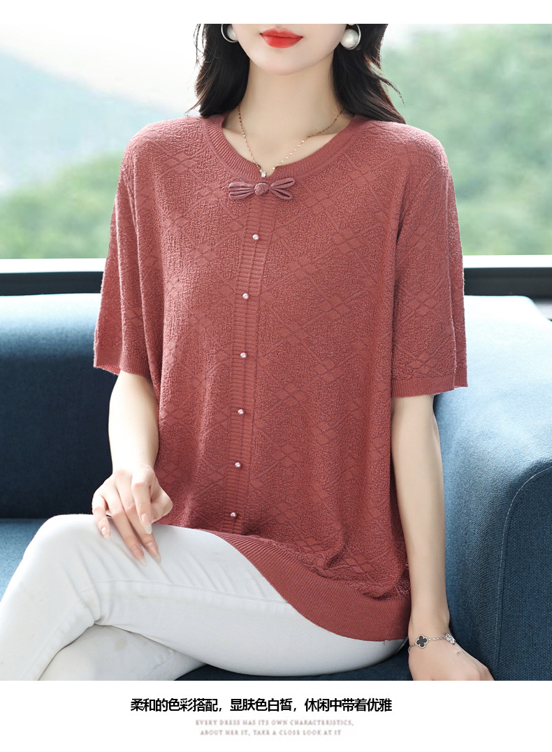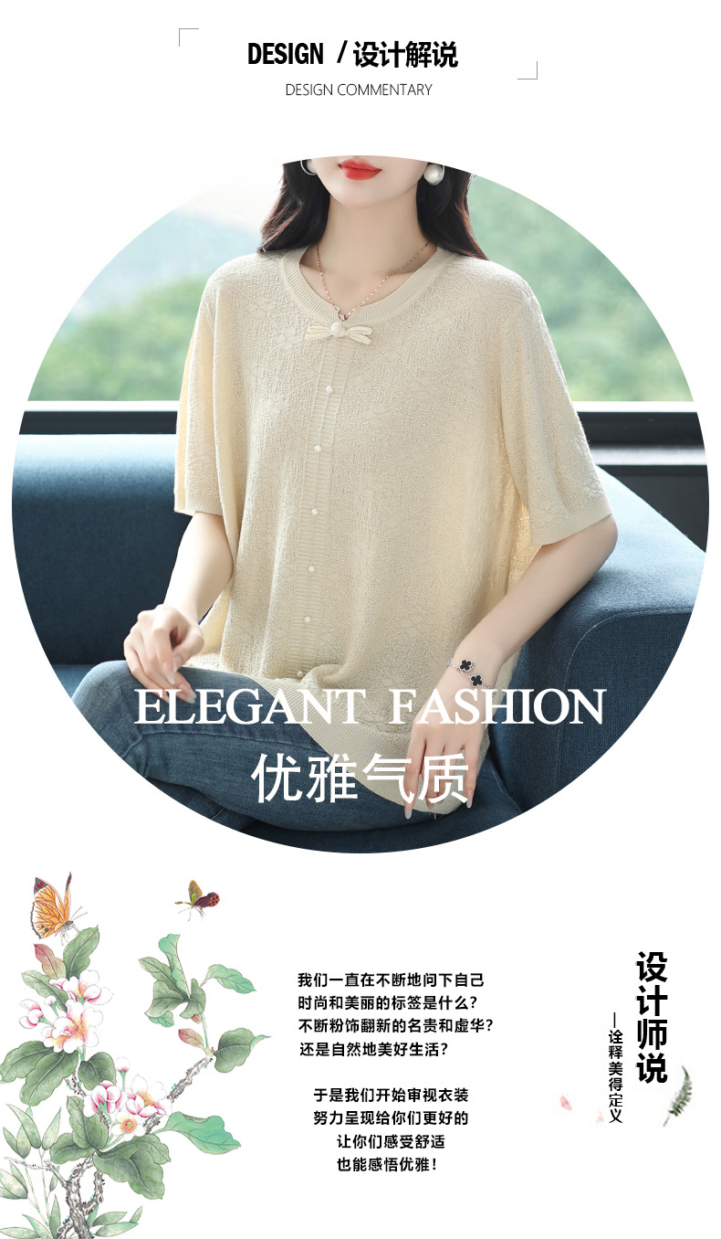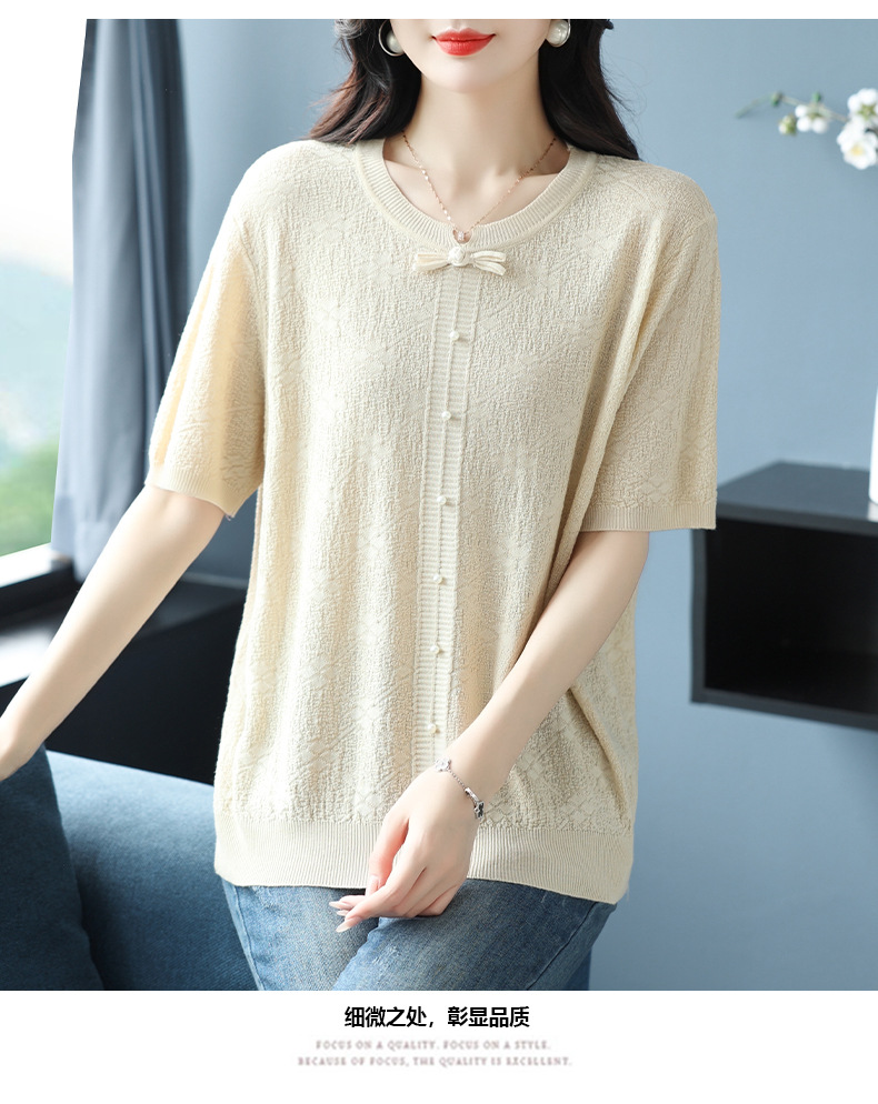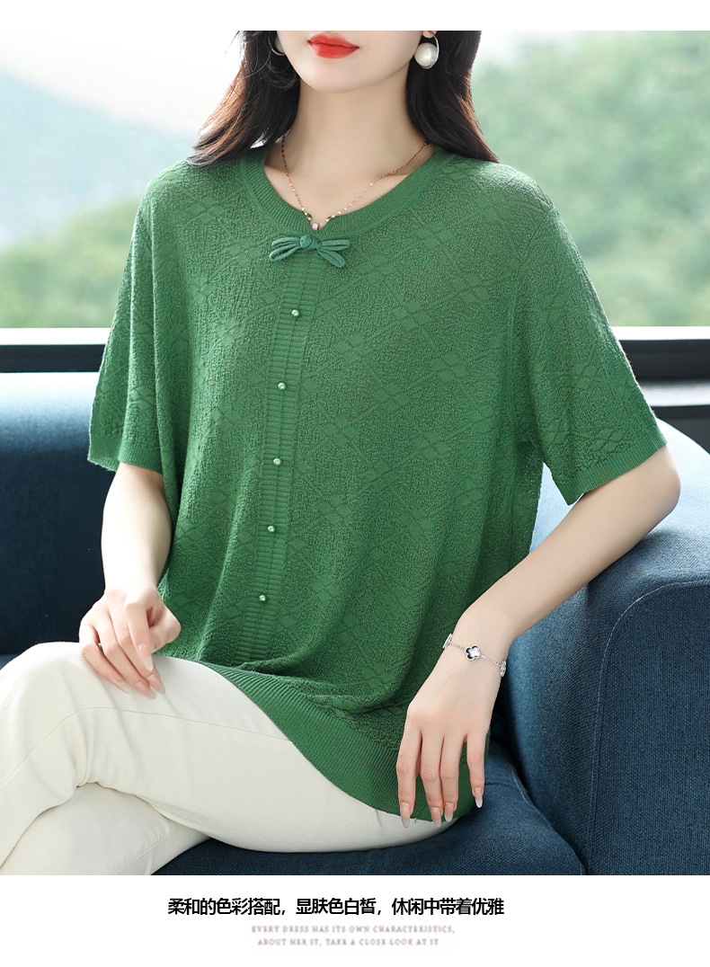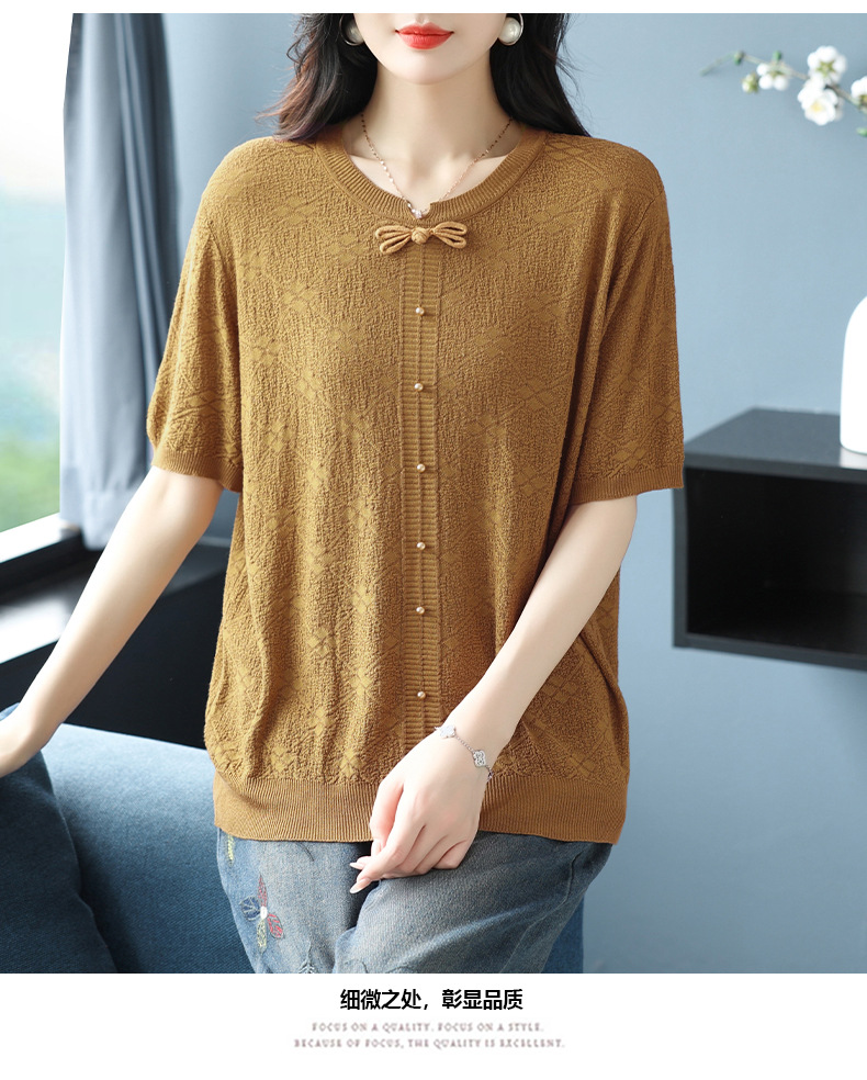 CC43-1250-138短袖t恤夏季V领宽松显瘦冰丝针织衫2025年新款T洋气上衣薄款女装