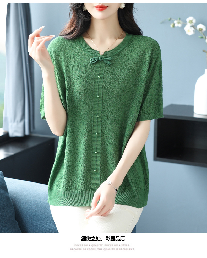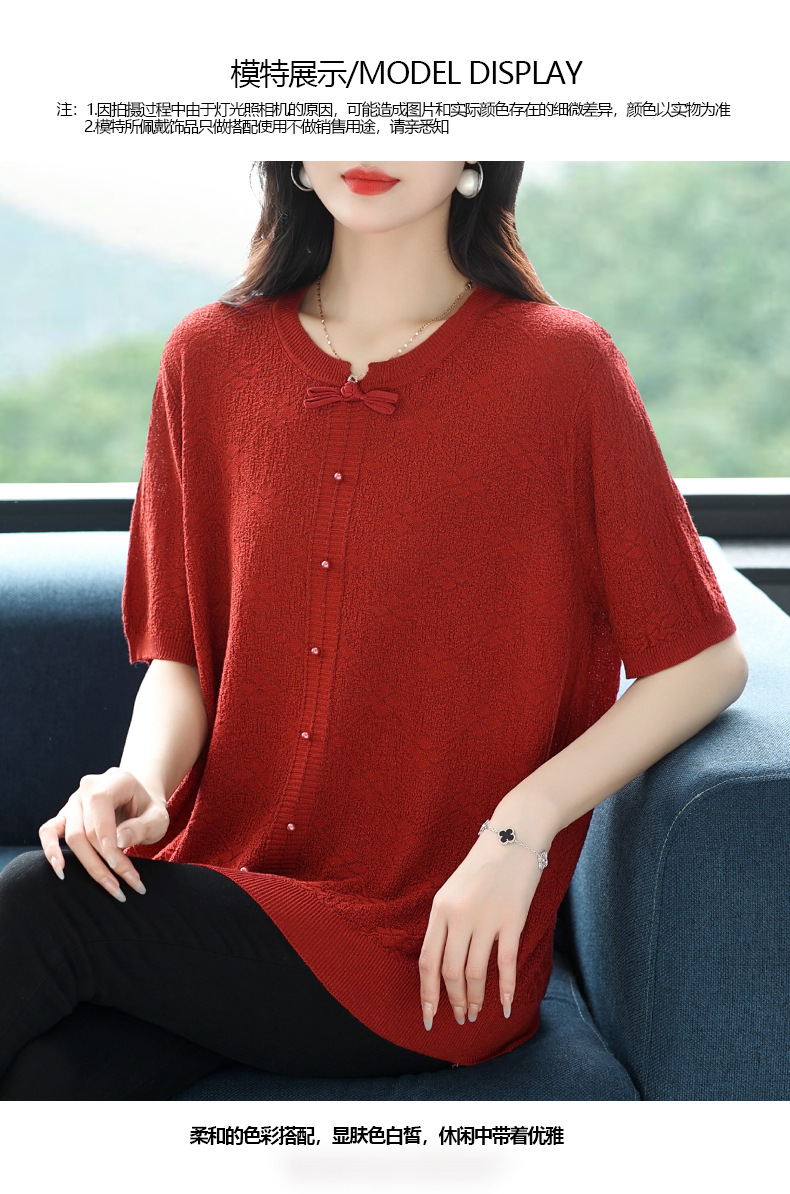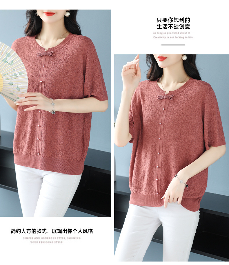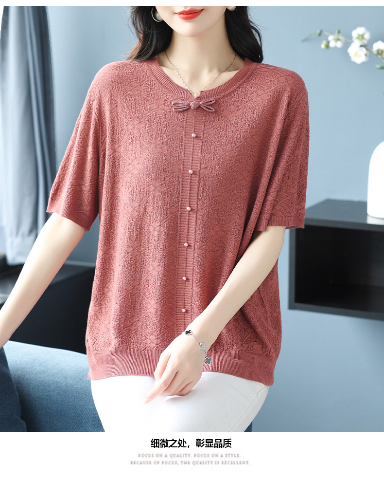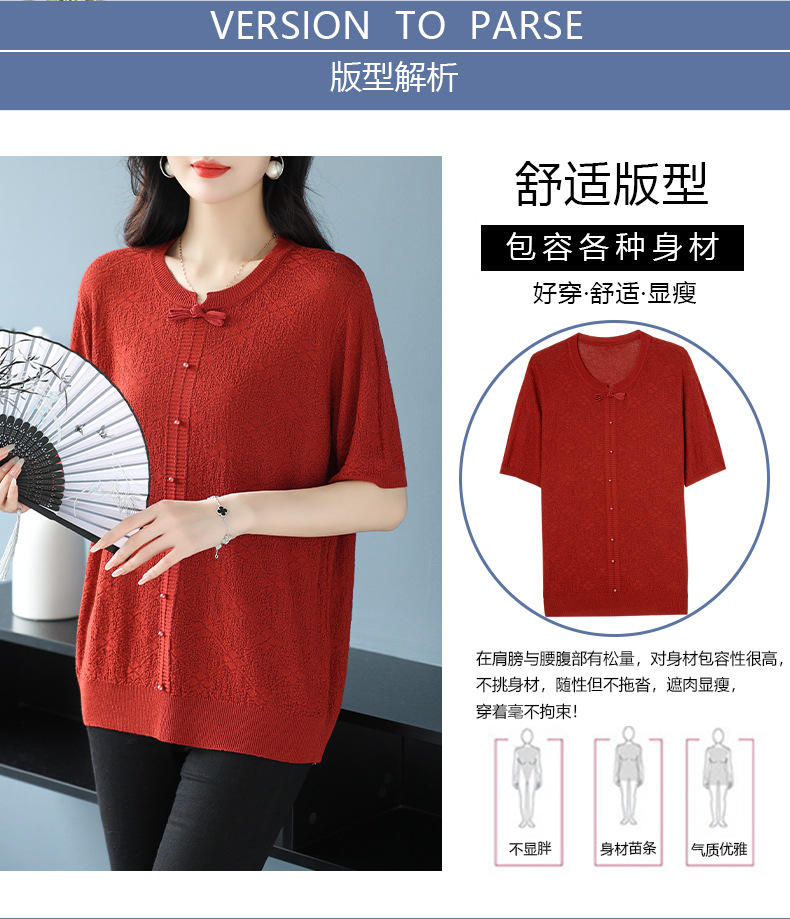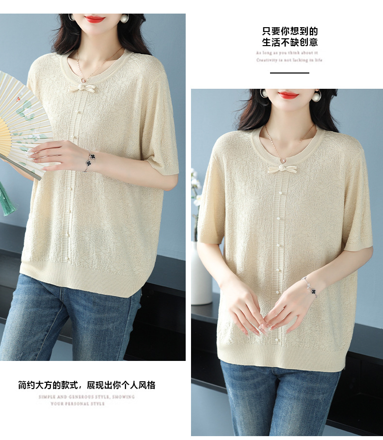 CC43-1250-138短袖t恤夏季V领宽松显瘦冰丝针织衫2025年新款T洋气上衣薄款女装